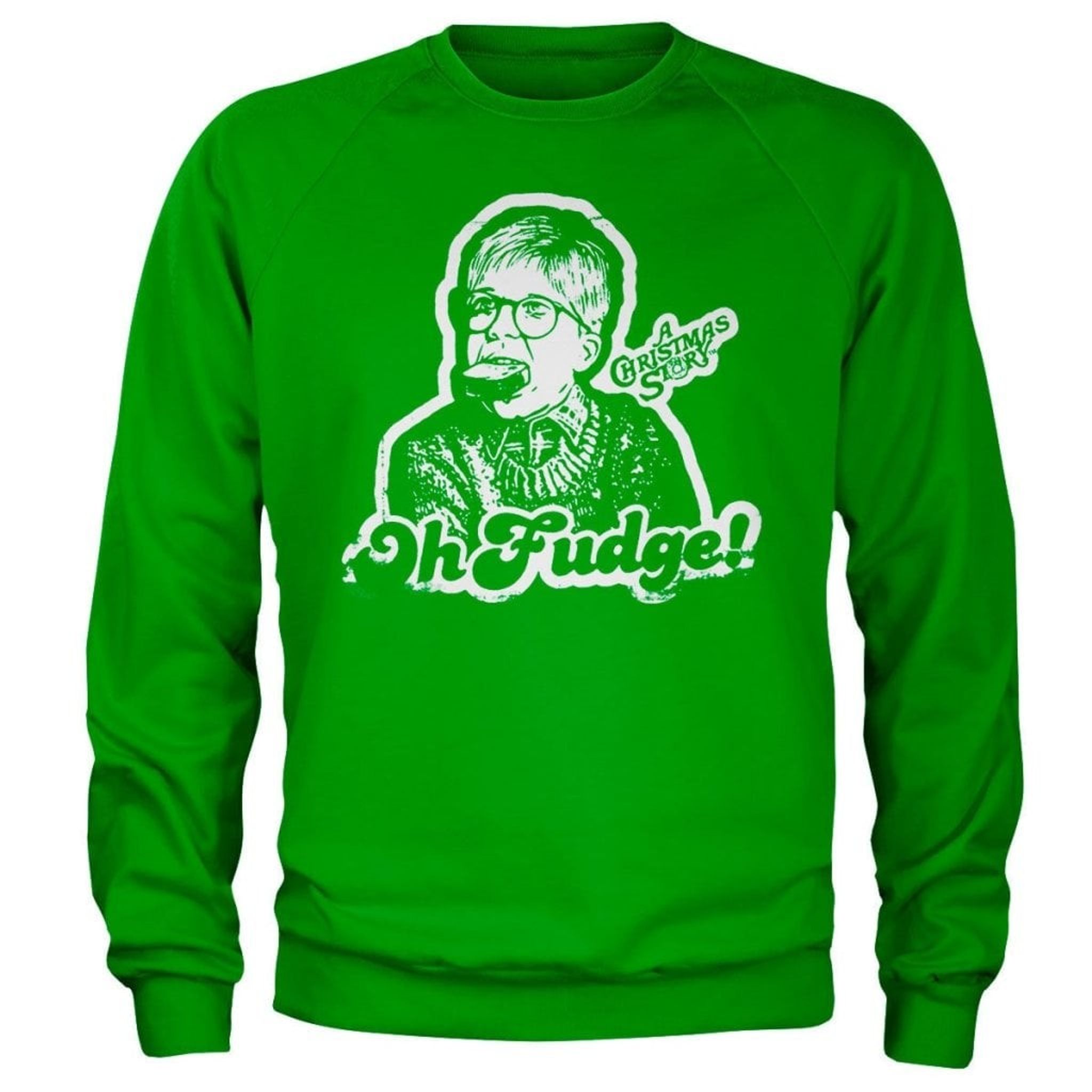 sweateren med motivet "Oh Fudge!" Er en hyldest til den ikoniske julefilm en julehistorie. Designet viser en illustreret dreng med en åben mund og briller, lige i det øjeblik han udtaler den mindeværdige sætning. Den udtryksfulde stil fanger øjnene og hæver nostalgiske følelser i fans af filmen. "Oh Fudge" er et klassisk udtryk fra filmen, og denne sweater lader bæreren bringe lidt af karakteren, uanset hvor de går. En perfekt julegave til alle, der elsker denne tidløse filmklassiker.