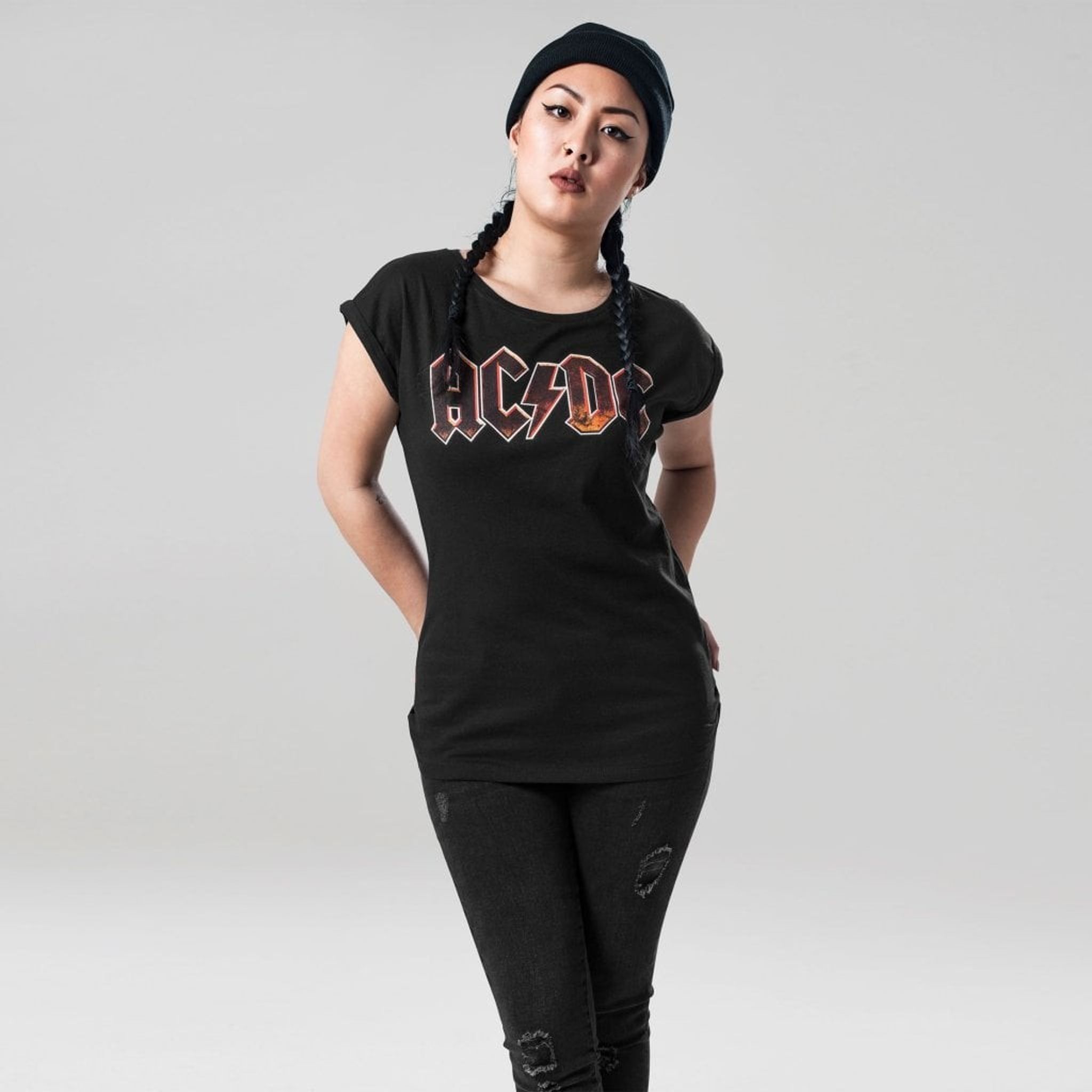 AC/DC Voltage Top er en ikonisk t-shirt, der hylder det legendariske rockband AC/DC. Med bandets populære logo fremtrædende vist på foran kombinerer denne skjorte klassisk stil med rocksattitude. Designet har en rund halsudskæring, faldede skuldre og opsmøgede ærmer for et afslappet look. Det bløde bomuldsmateriale gør den behagelig at have på, perfekt til hverdagsbrug.