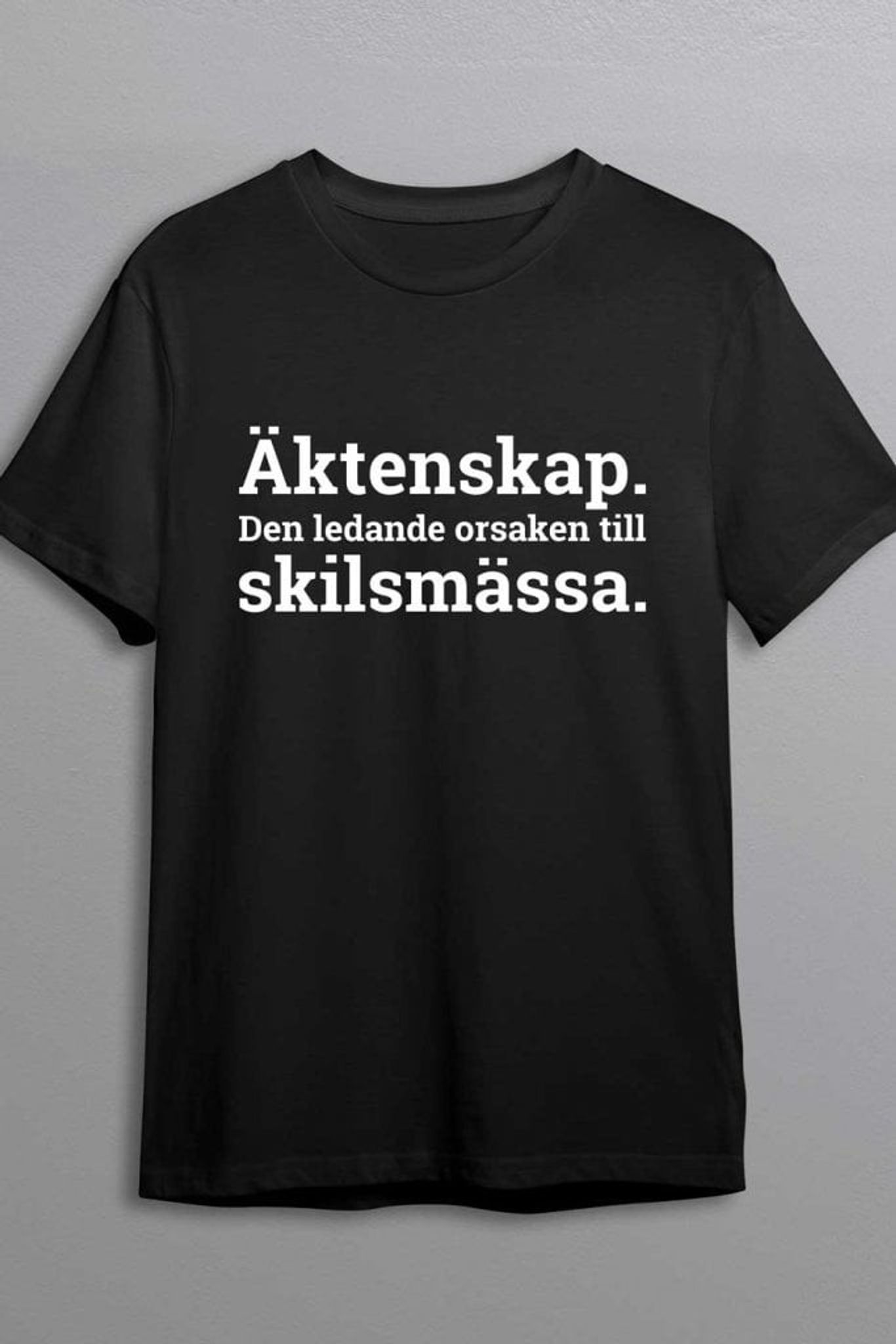 T-shirt med texten: Äktenskap. Den ledande orsaken till skilsmässa.