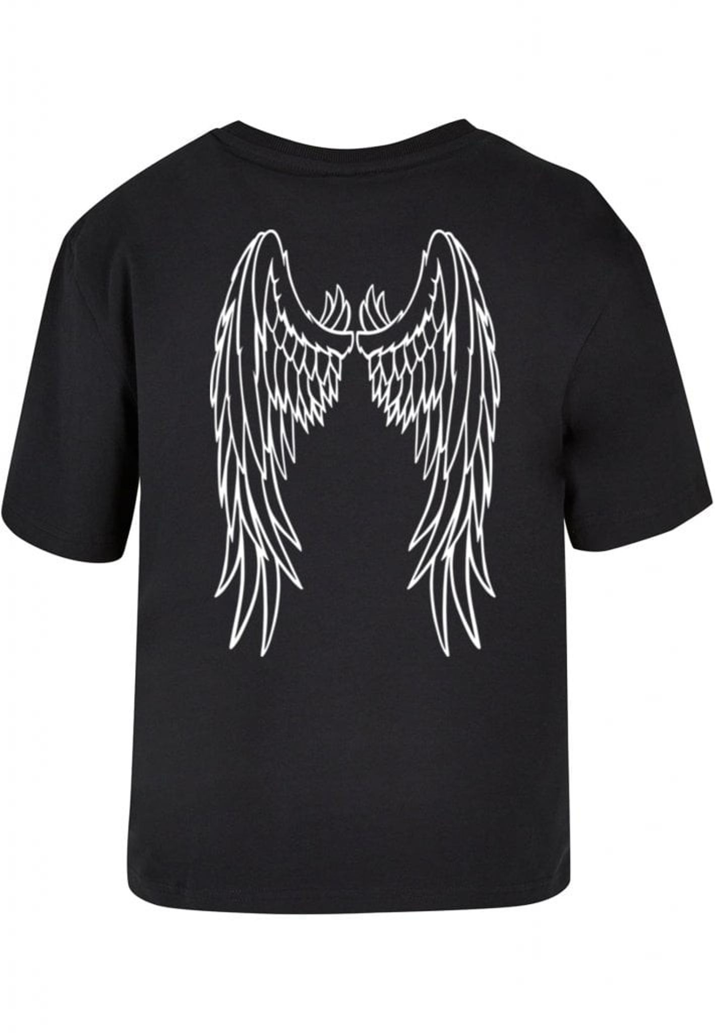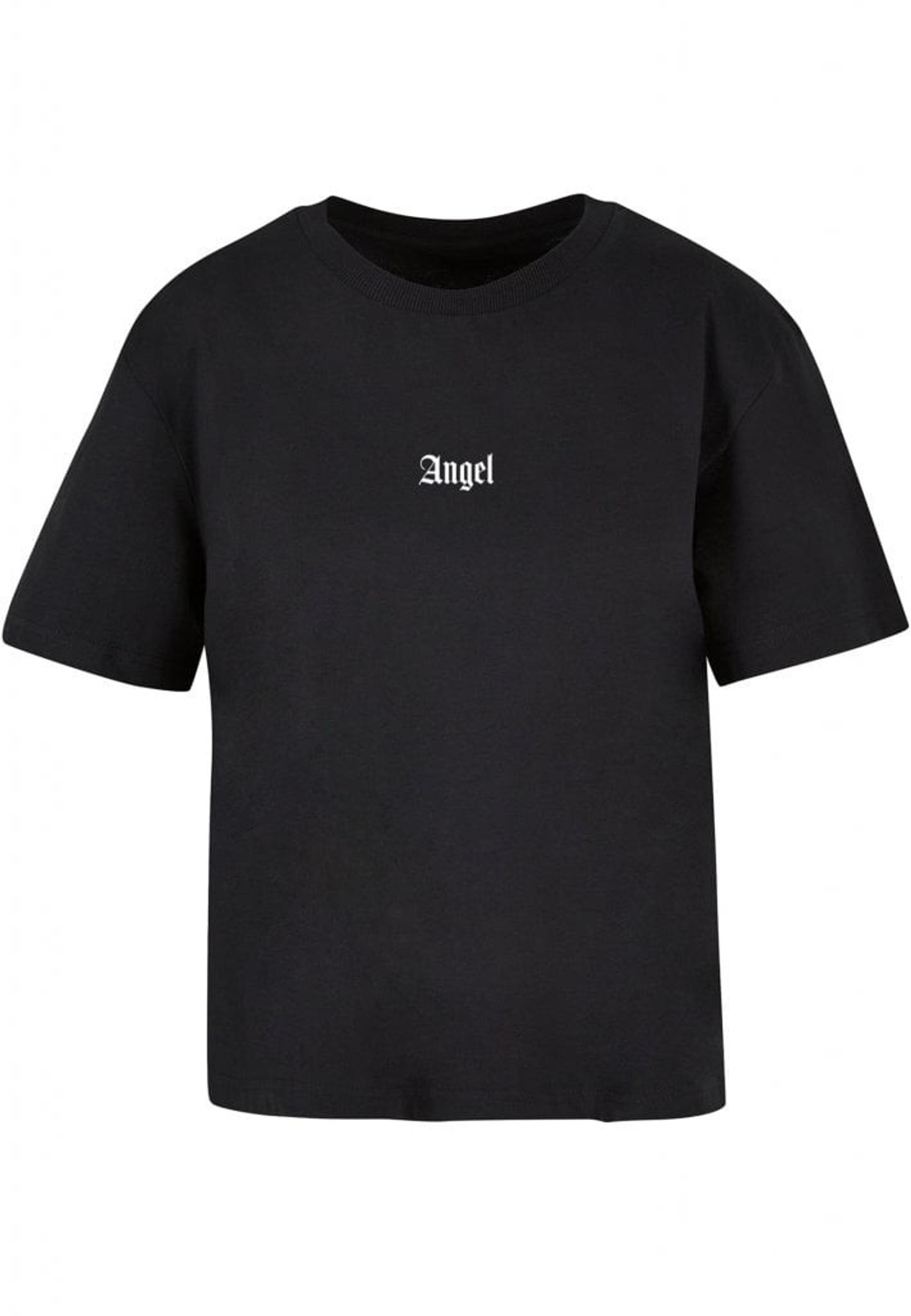 På fronten er tøjet prydet med ordet "Angel" i en gotisk skrifttype, hvilket tilføjer et elegant touch til det ellers enkle design. Med kontrasten mellem det hvide og sorte bliver du en rigtig engel i mørket.