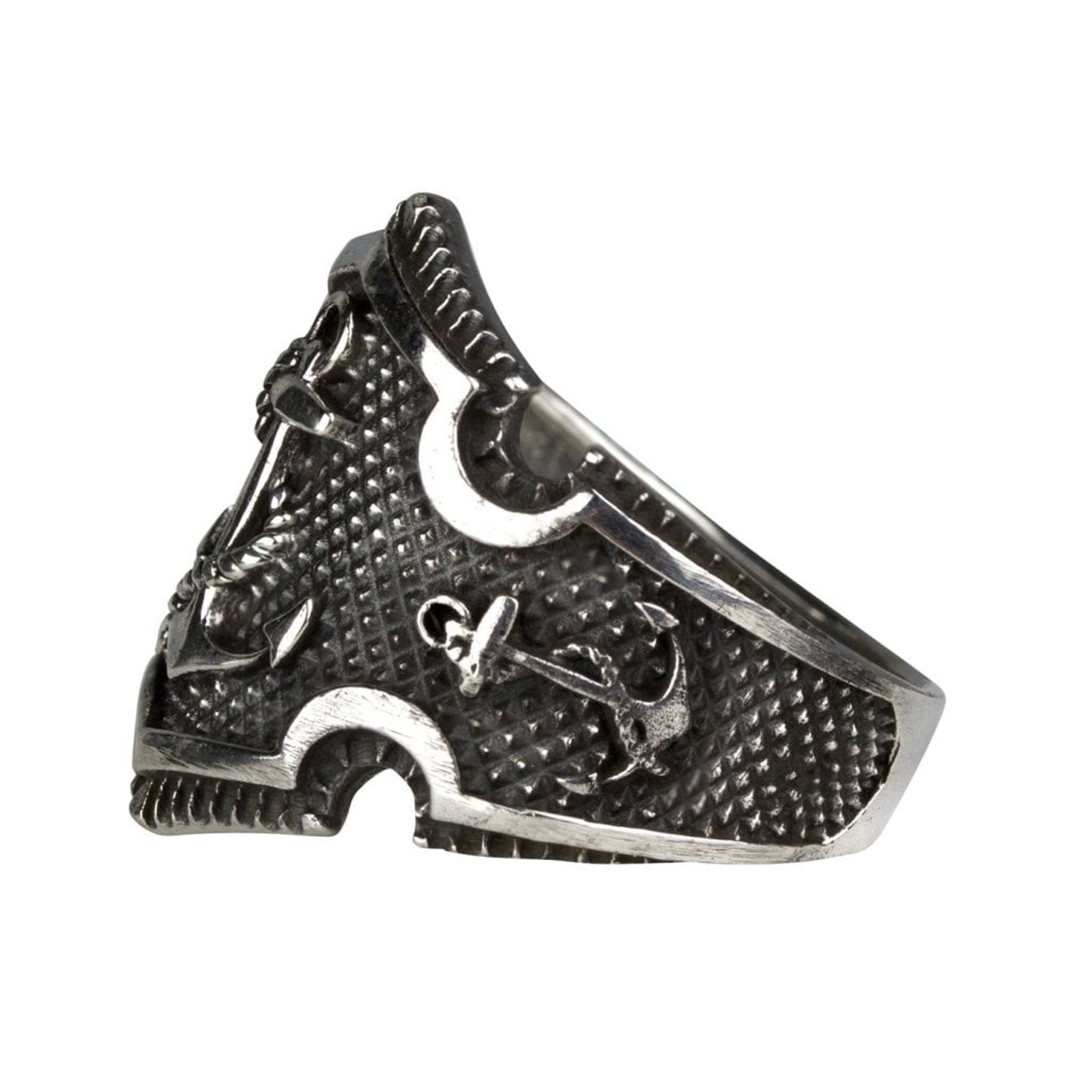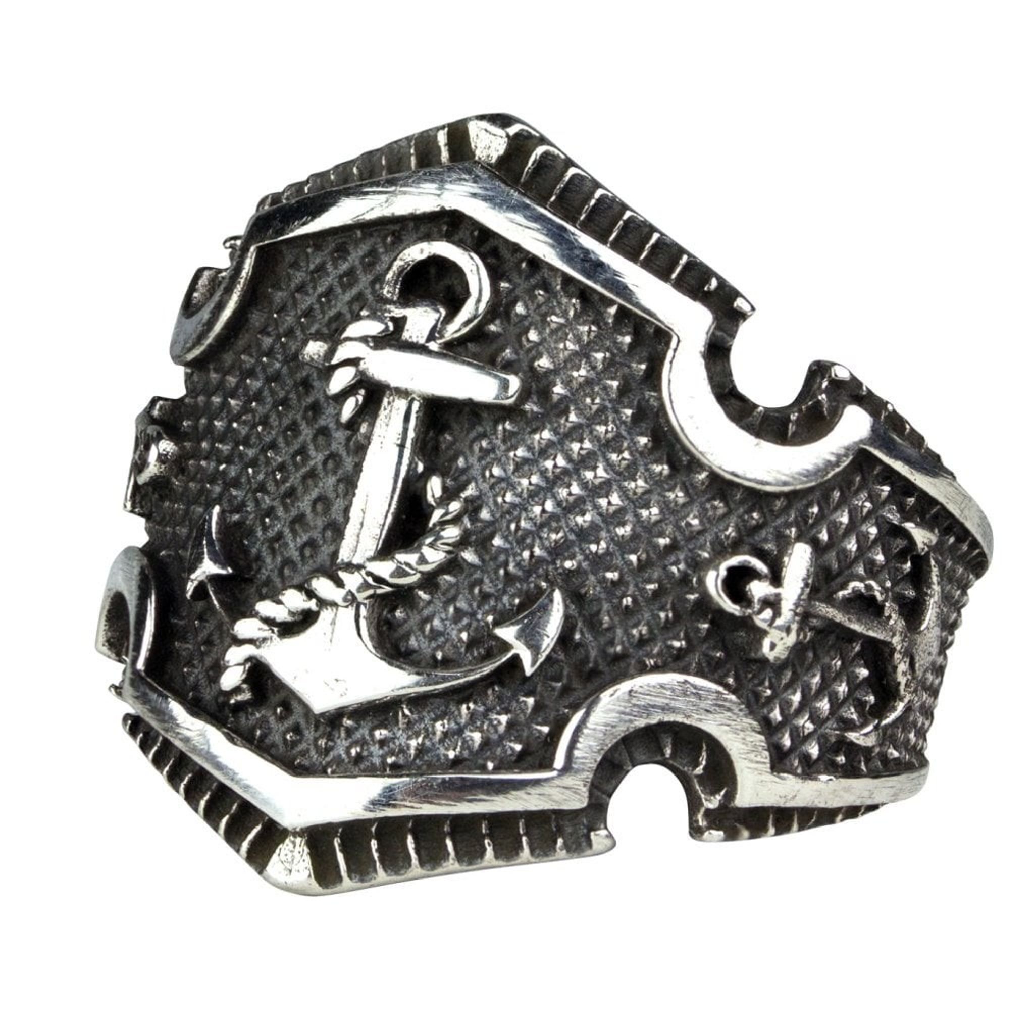 Mønstret ring i sterlingsølv med anker på toppen og begge sider af ringen.