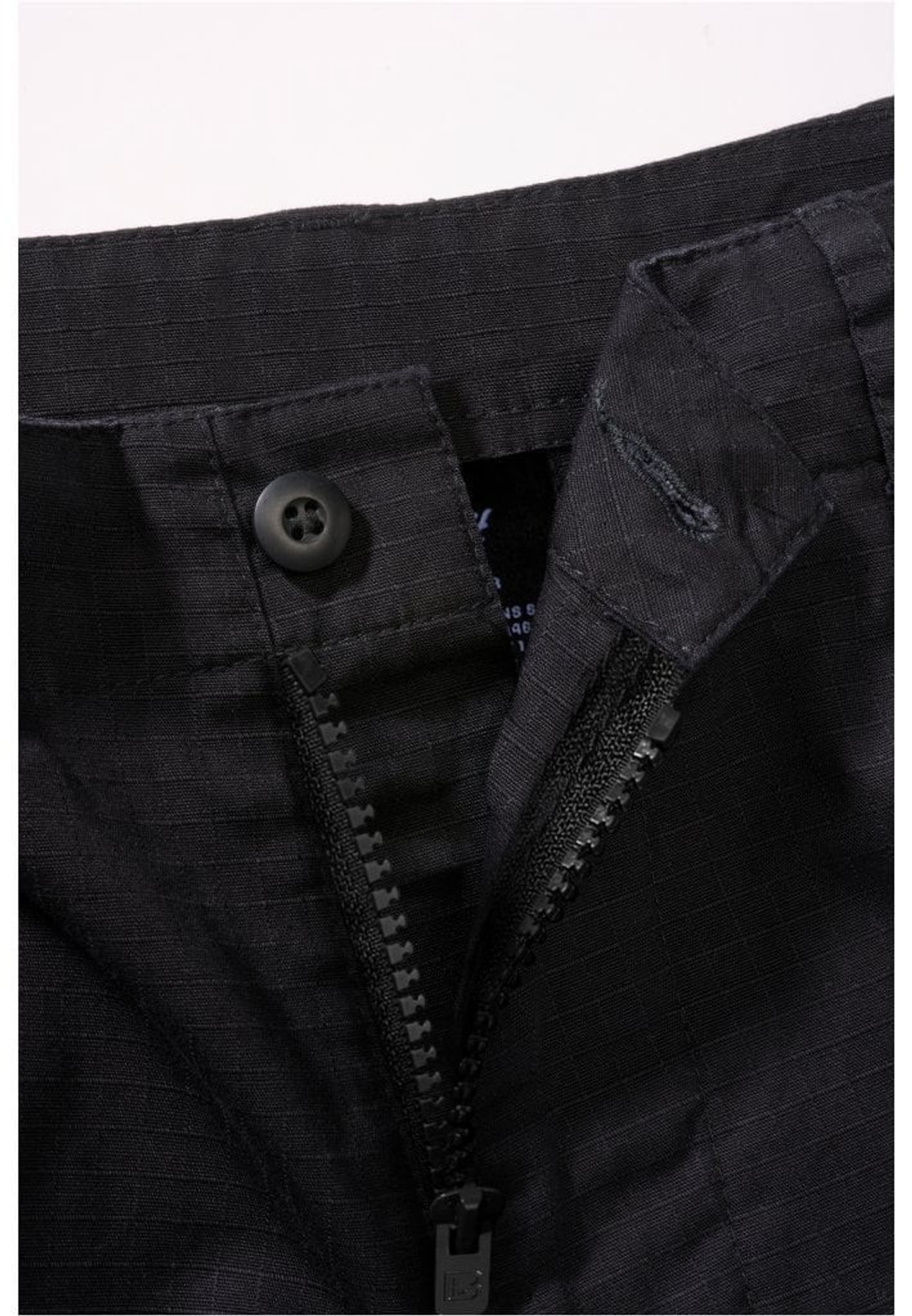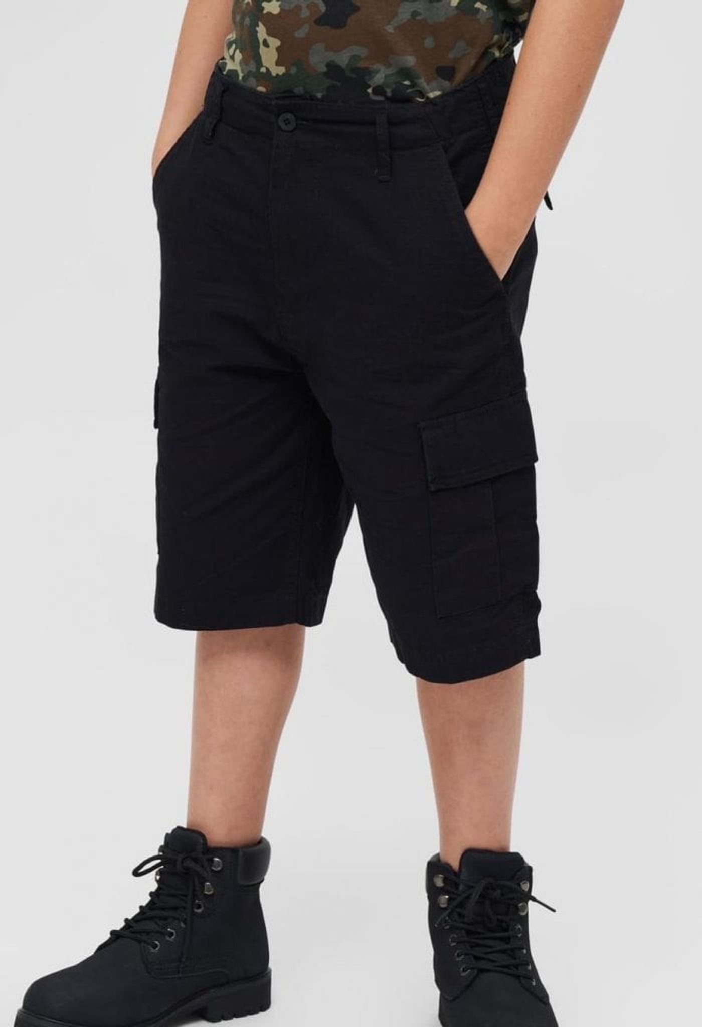 Et par hårde shorts i barnestørrelser og med ripstop stof i sort. Shortsene har BDU-stil (Battle Dress Uniform).
