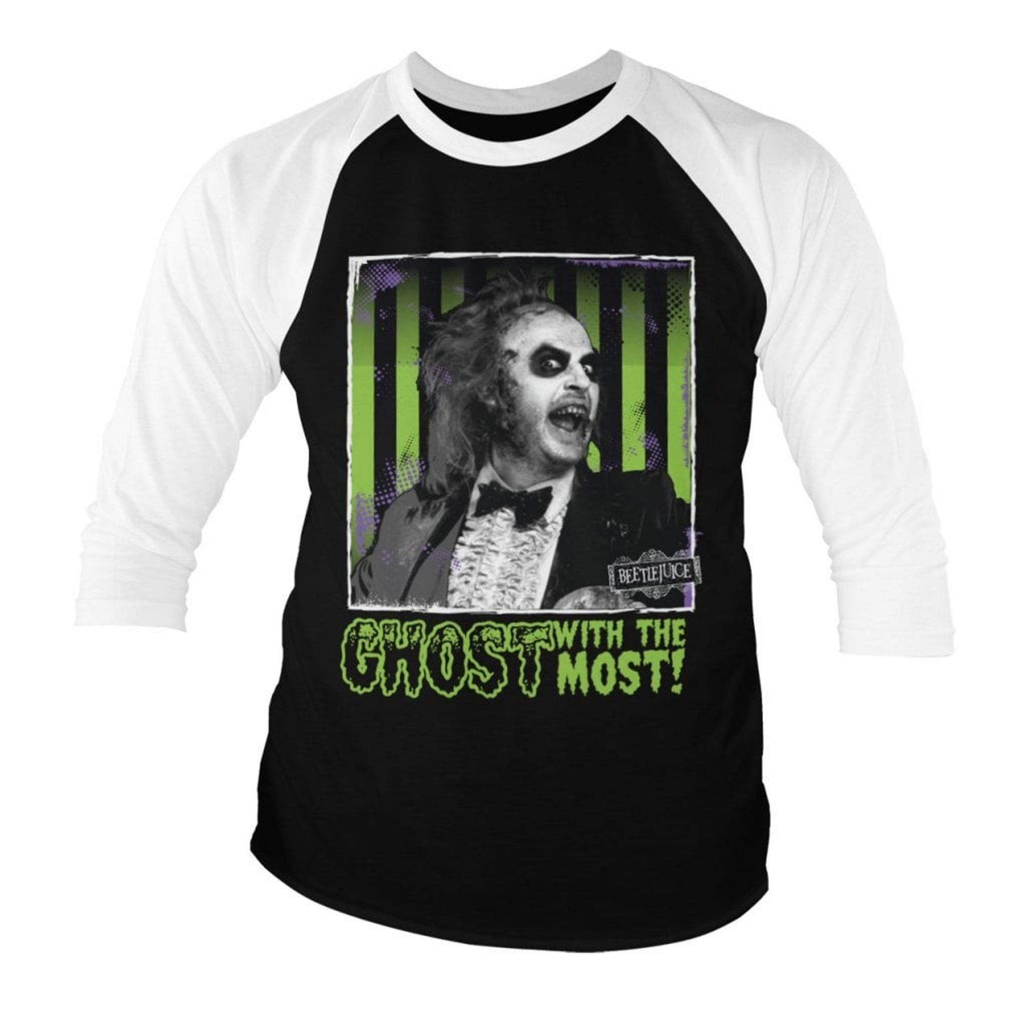Er du fan af Beetlejuice? Derefter vil du elske denne 3/4 ærme længde baseball -trøje, der roser den klassiske film. Med et unikt design, der viser Beetlejuice -ansigtet og teksten "Ghost med mest", er dette en perfekt tilføjelse til din garderobe, hvis du leder efter noget, der skiller sig ud.