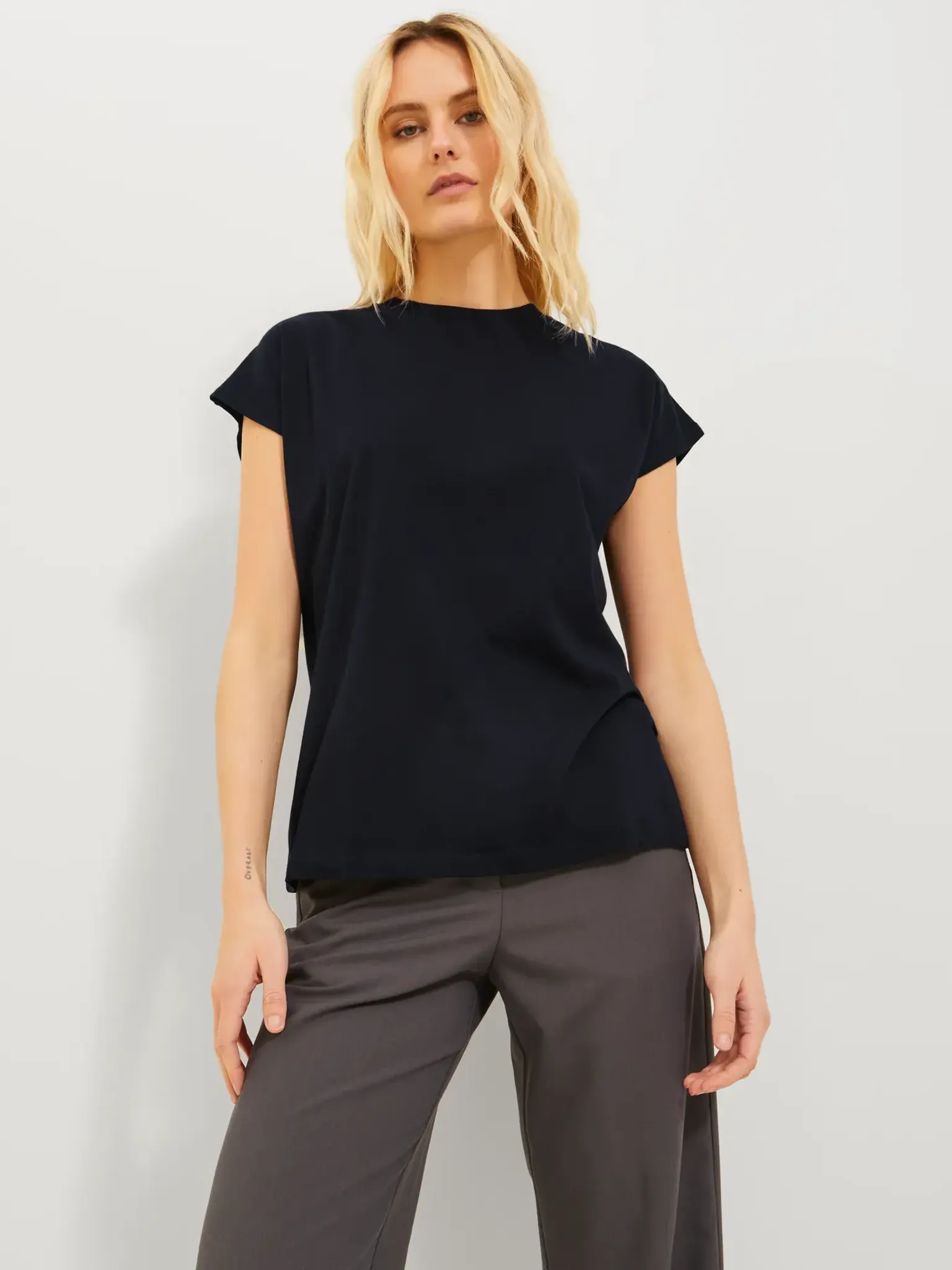 Den är utan ärmar och har boxiga ärmar som ger en avslappnad och luftig känsla, perfekt för varma dagar.
