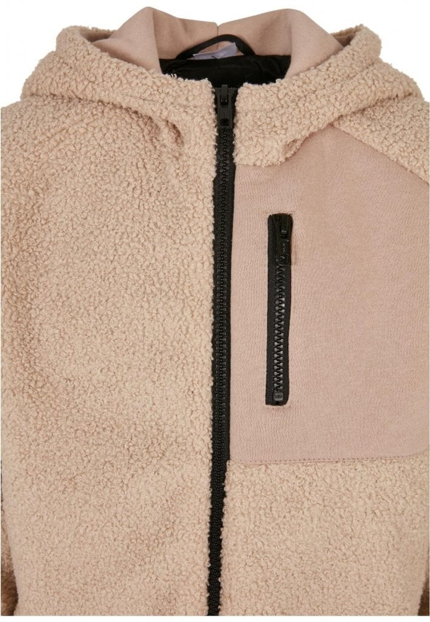 En rigtig hyggelig jakke i teddy materiale. På forsiden af jakken har du en lomme over brystet med lynlås. Jakken har desuden to sidelommer med lynlås.