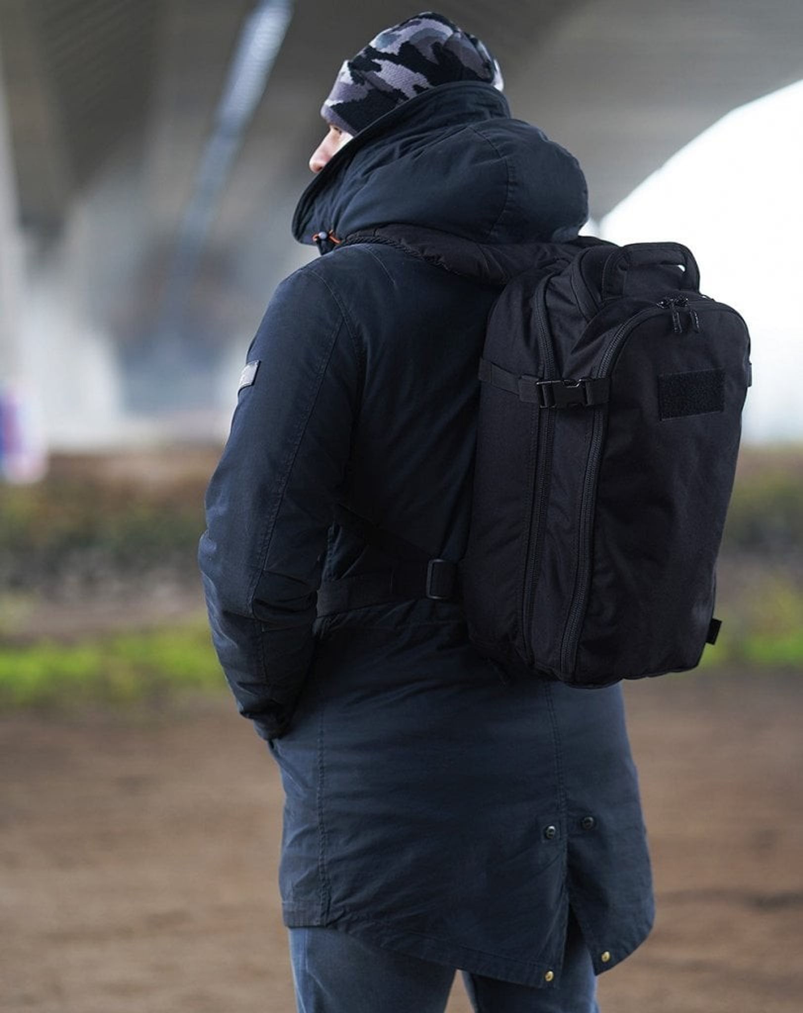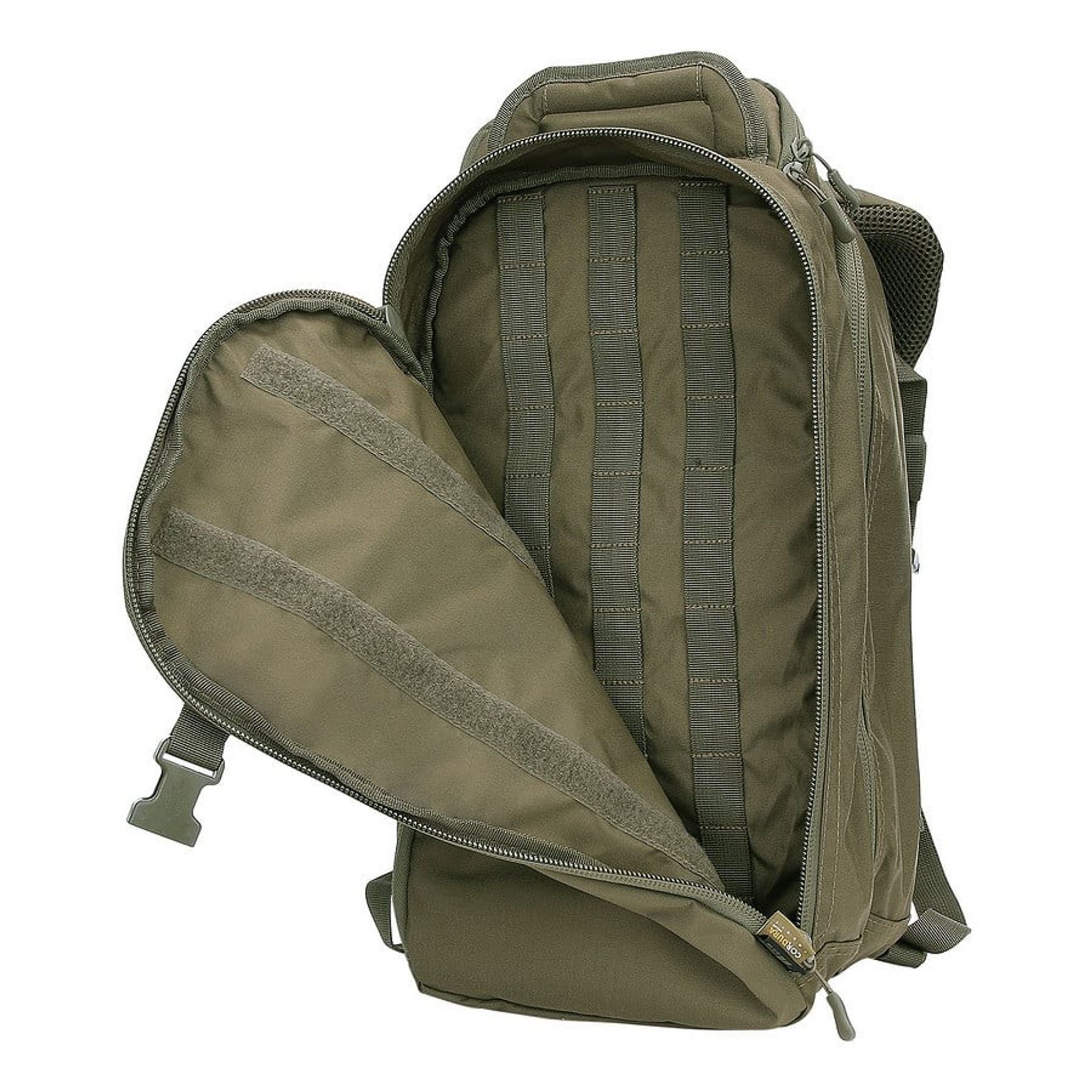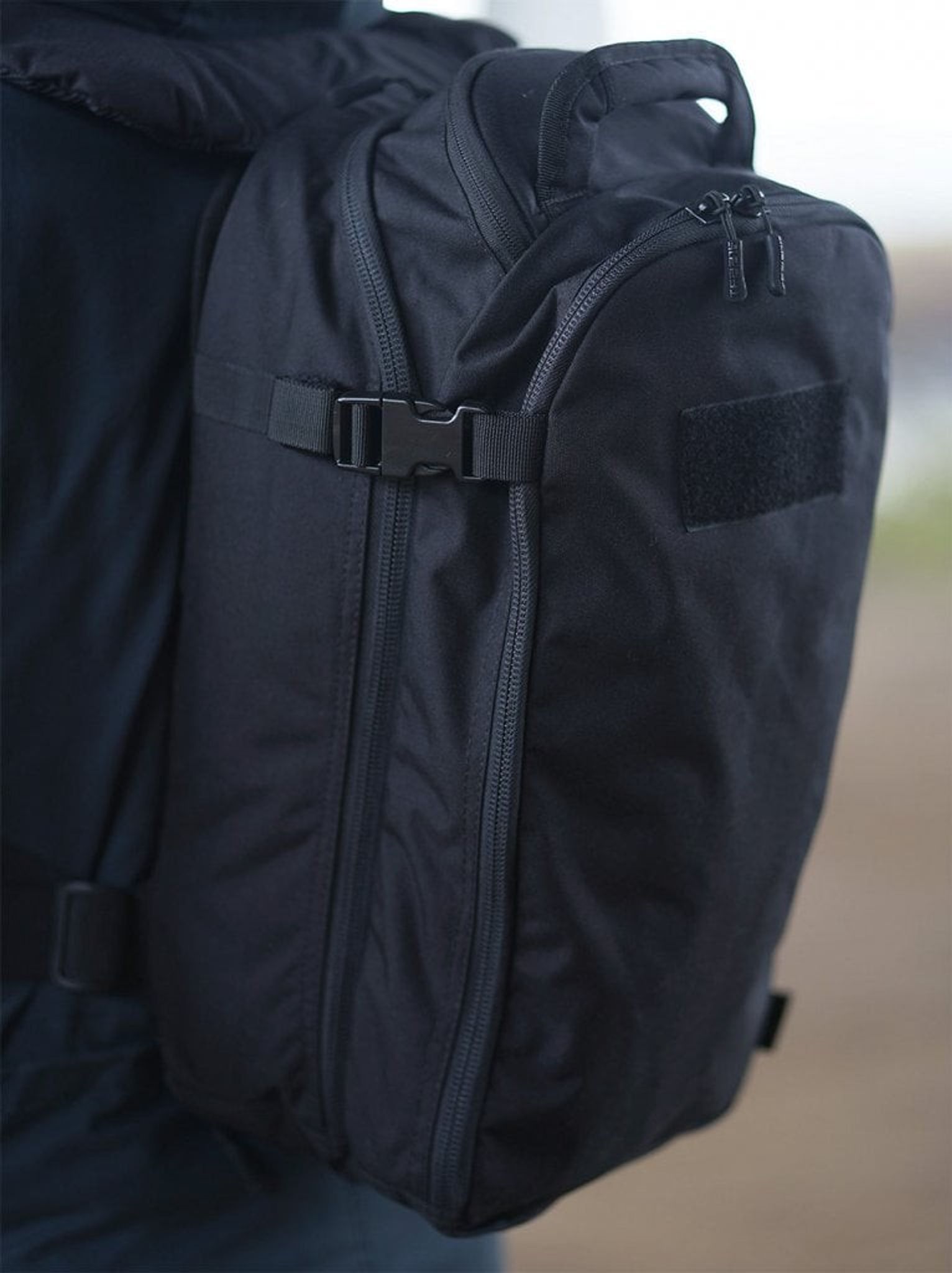 Rygsækken er designet til at være komfortabel takket være det robuste, formede rygpanel og de ergonomisk polstrede skulderstropper, der er fuldt justerbare. Materialet er af høj kvalitet, hvor stoffet er Cordura® 500DEN og rygsækken er udstyret med pålidelige YKK® lynlåse og Duraflex® spænder.