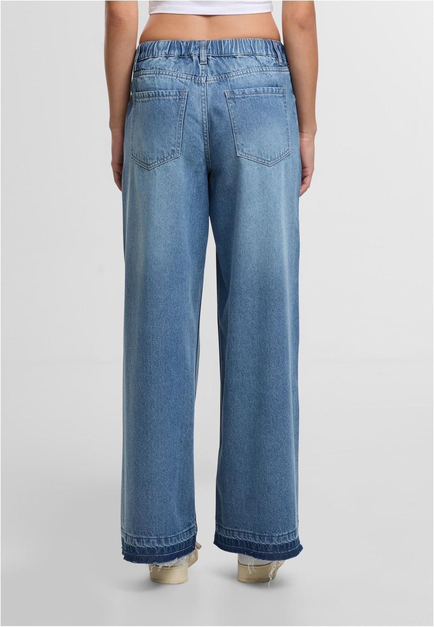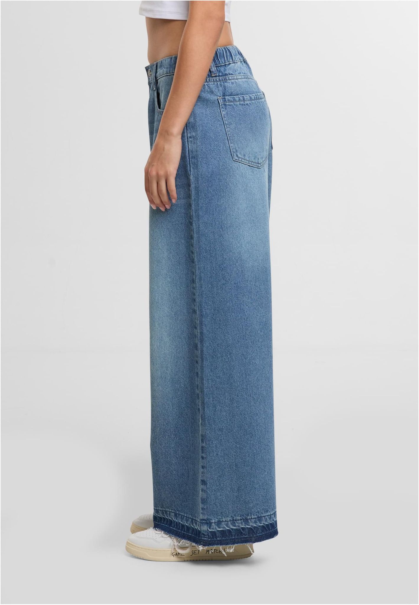 Byxor i ett mid deep blue washed denim, designade för damer som uppskattar en avslappnad, stilren look. Det ljusa blå nyansen ger en modern touch samtidigt som de breda benen erbjuder en perfekt mix av komfort och trend. Dessa byxor är gjorda av 100% bomull, vilket ger en mjuk och behaglig känsla mot huden.