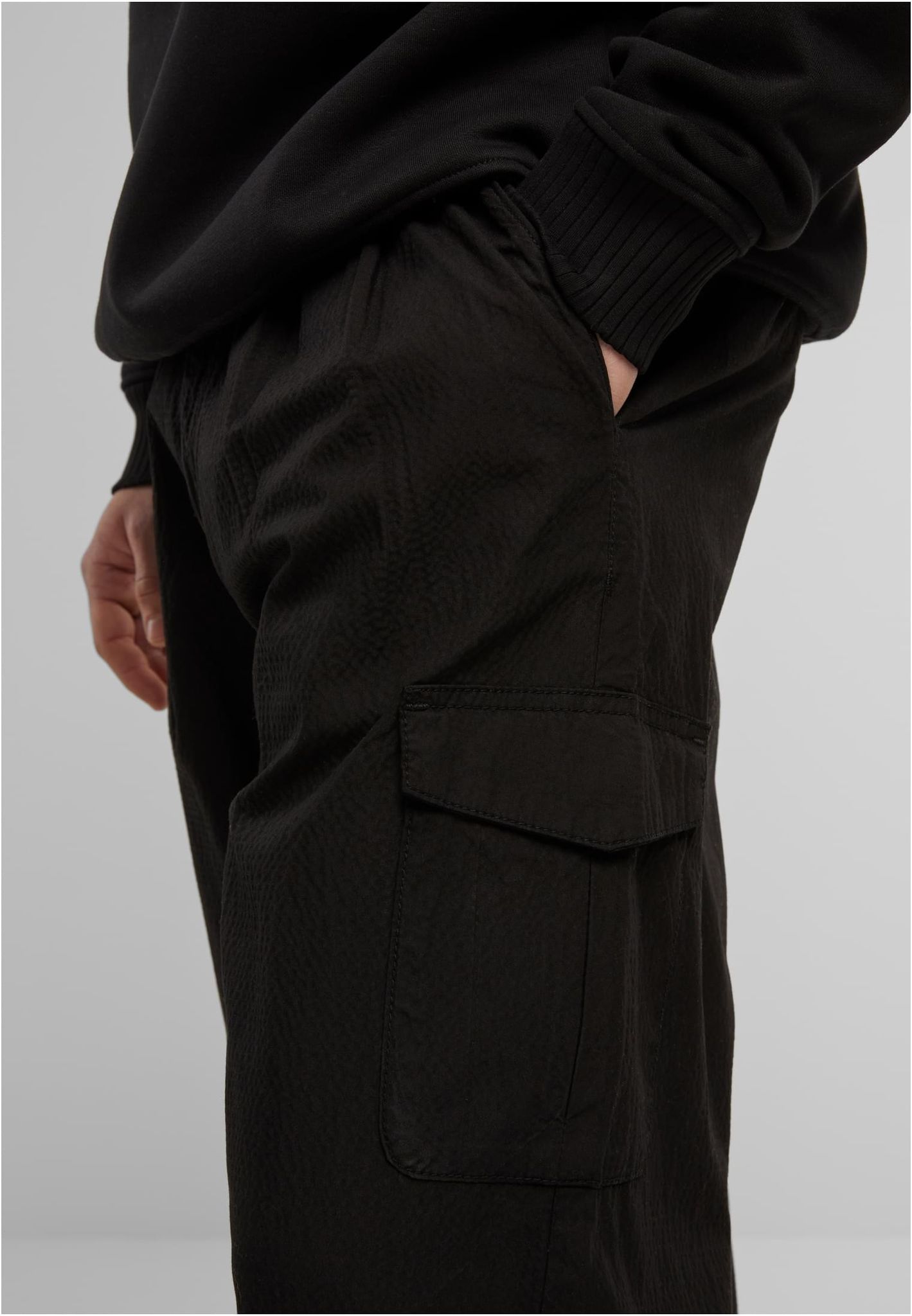 Byxor för herr i svart, designade med en stilren och modern look. Dessa cargo byxor har en vidsläppt passform som ger både rörelsefrihet och komfort, vilket gör dem till ett utmärkt val för vardagsbruk.
