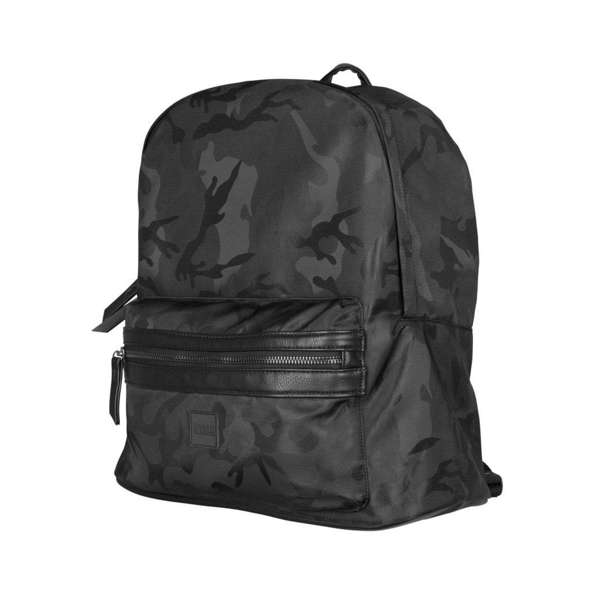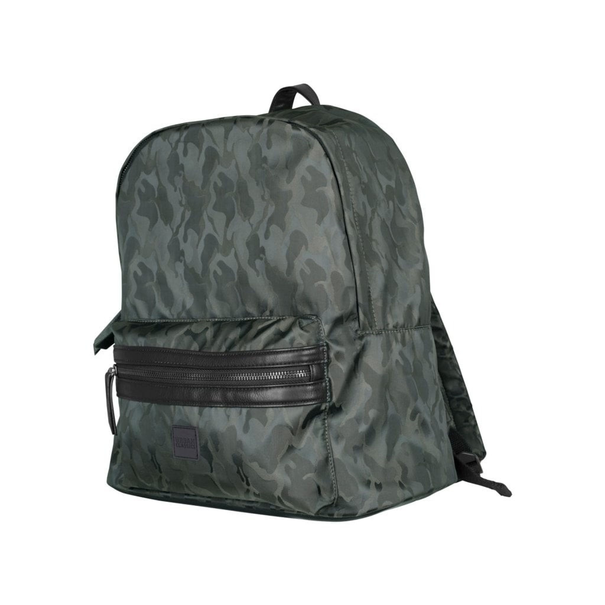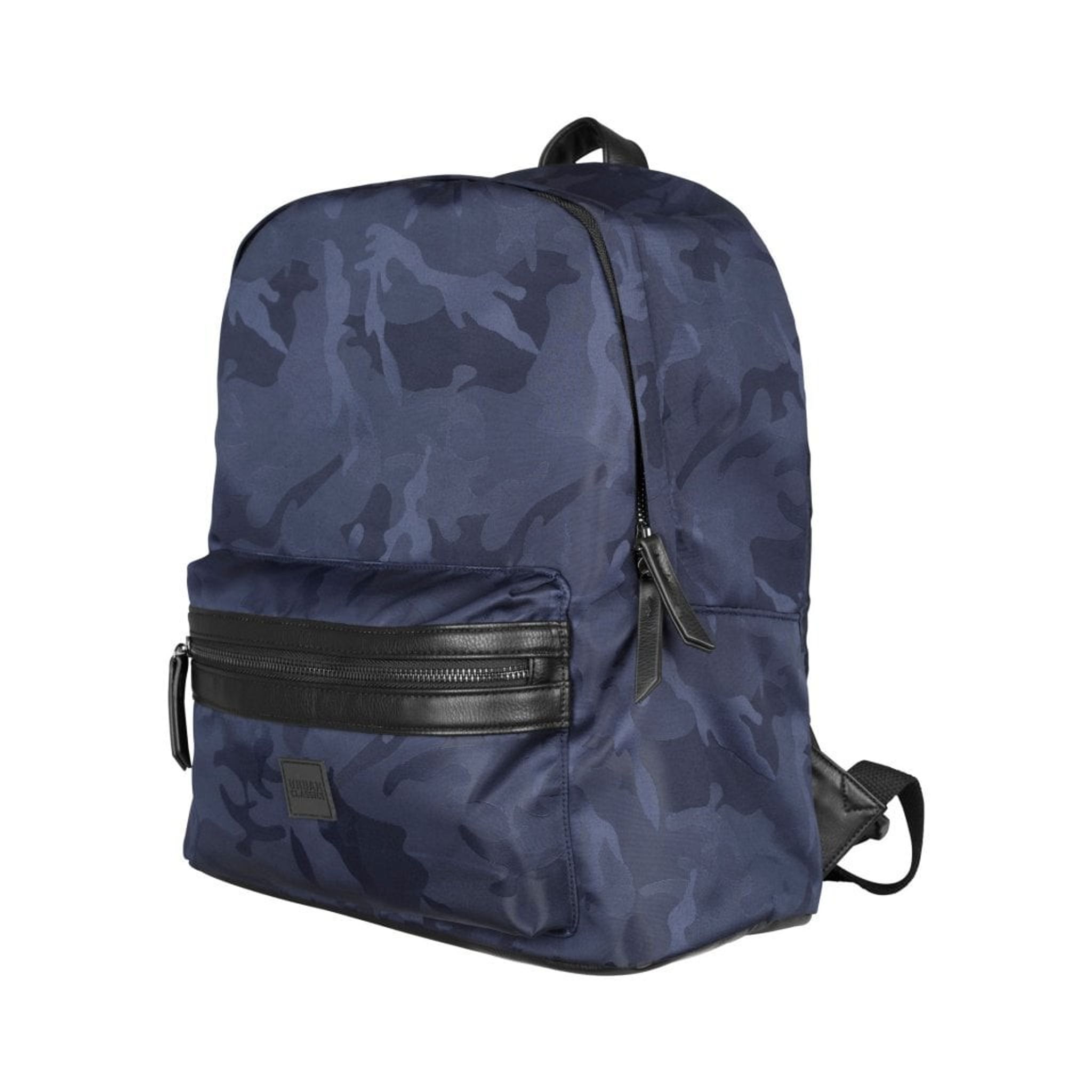 En stilfuld rygsæk i camouflagre som navy, sort og oliven med flotte læderdetaljer på glidelåsen. Rygsæk er i mærket Urban Classics.