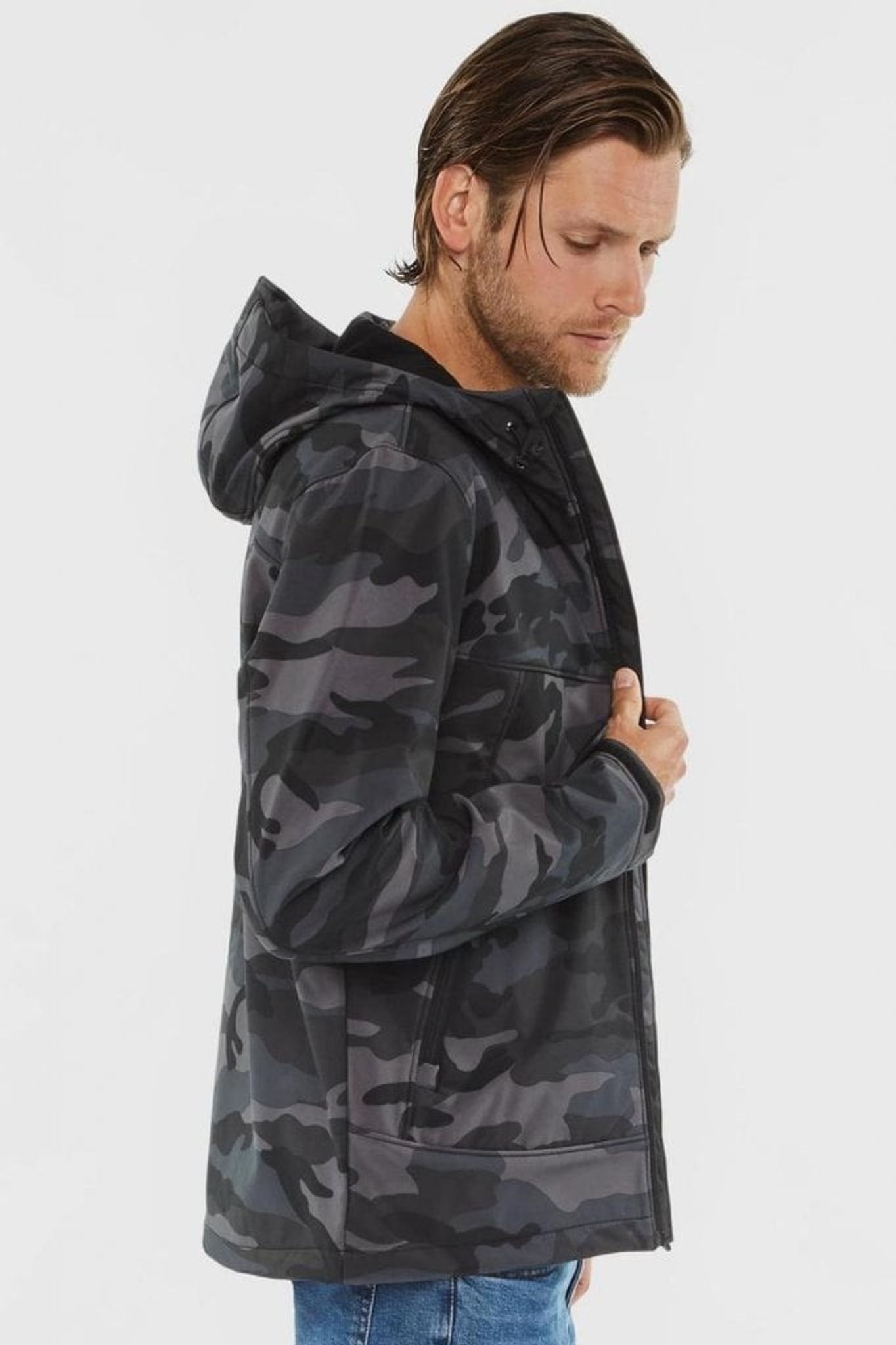 En stilfuld og funktionel jakke med en skal i lækker camouflage. Stoffet er let elastisk softshell med evnen til at modstå både vind og vand. Så jakkens skal forhindrer både vind og vand i at afkøle din krop, mens fleeceforingen holder dig varm.
