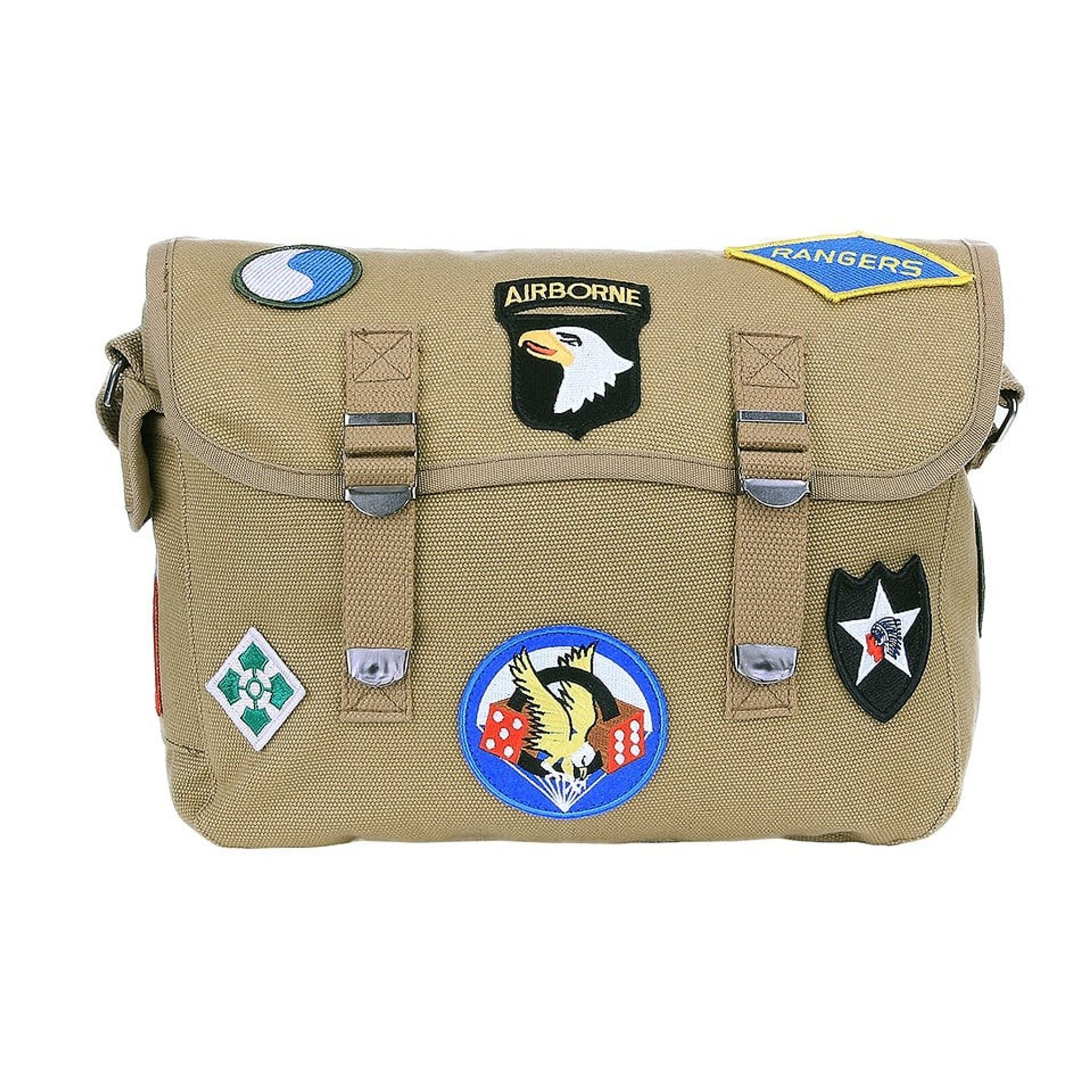 En praktisk lomme med knap på siden af tasken giver ekstra opbevaringsplads til mindre genstande. Det autentiske WWII print giver tasken et unikt og historisk touch, hvilket gør den til et interessant tilbehør til både mode og funktion.