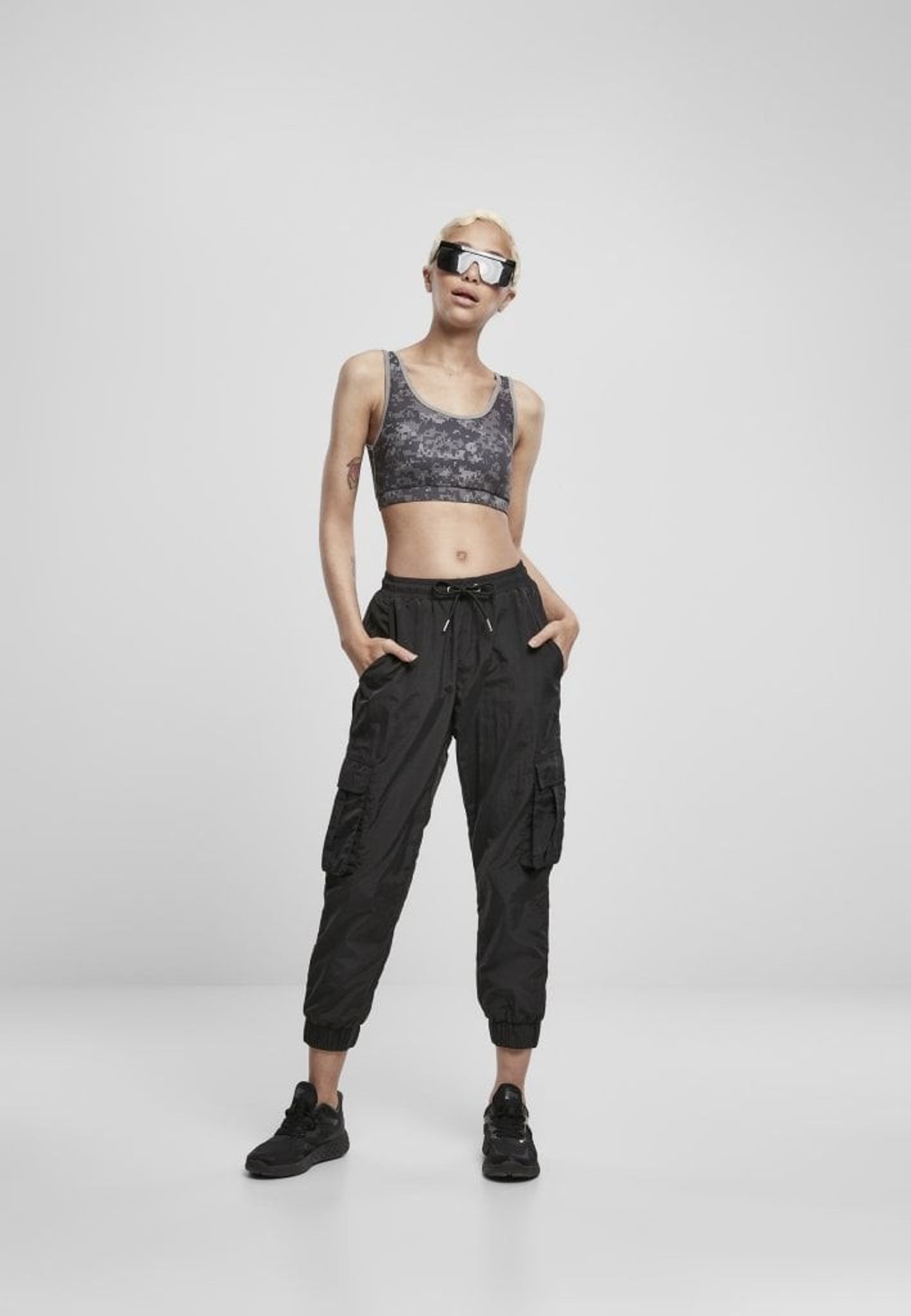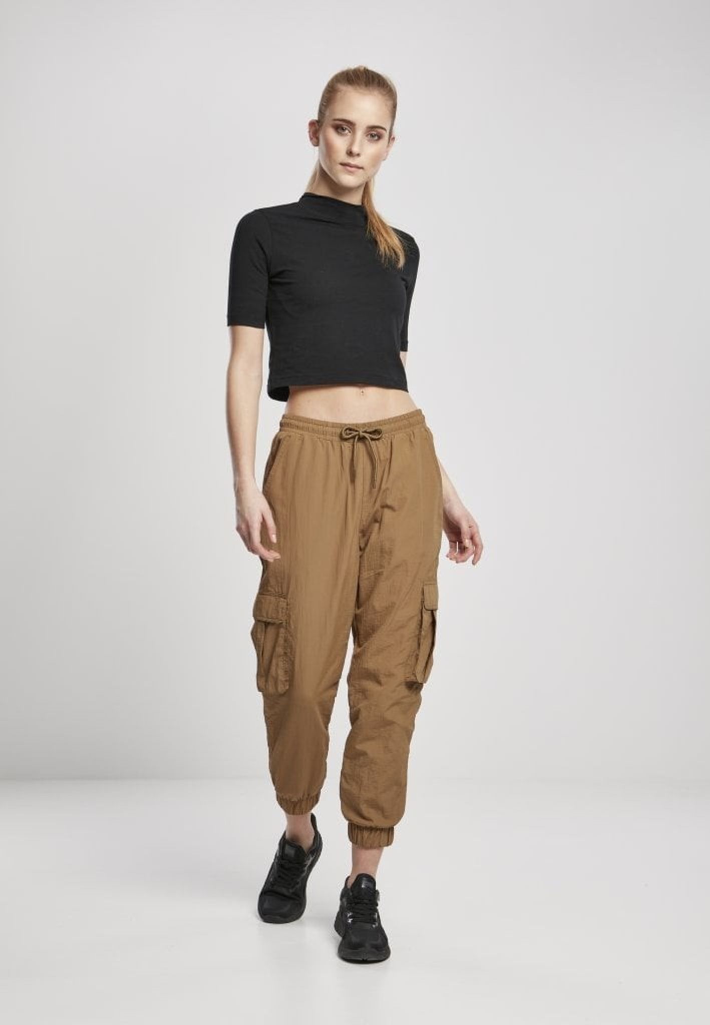 Stoffet er krympet nylon, hvilket giver bukserne et sportivt look.