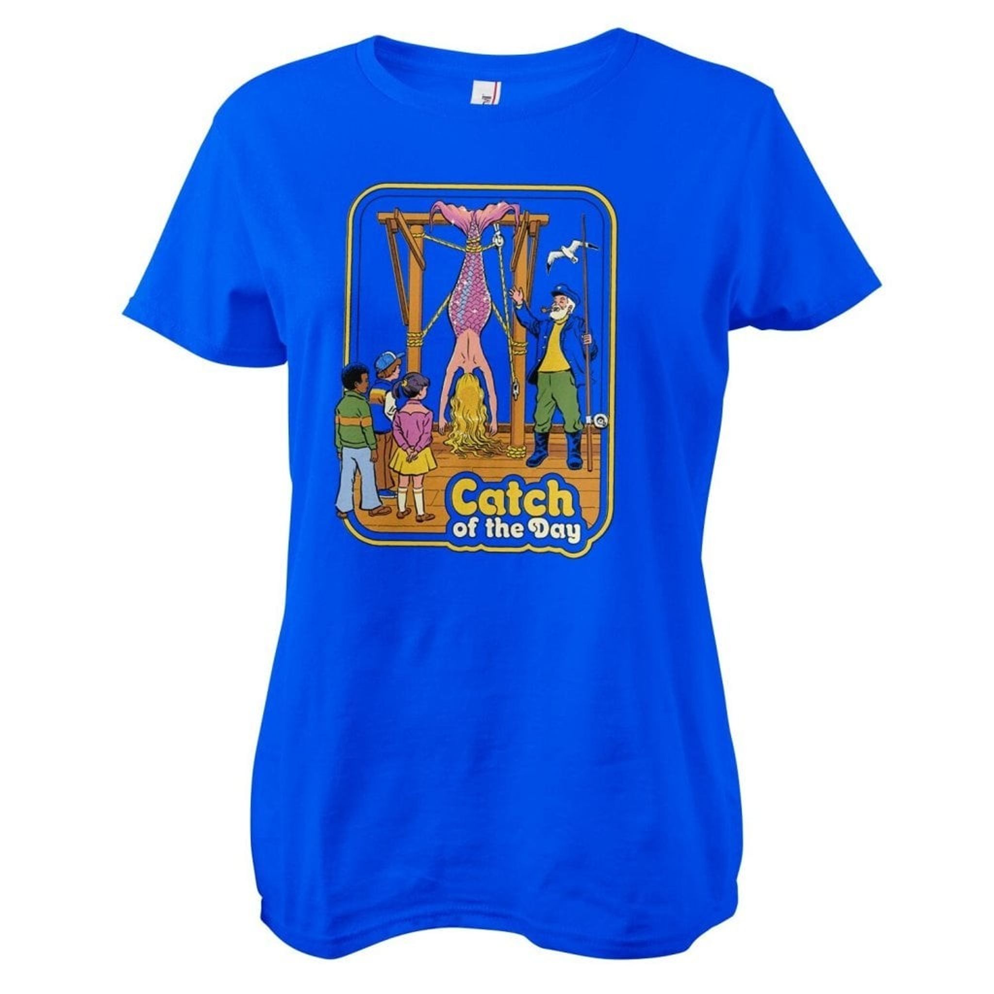 Det legende motiv på denne t-shirt, signeret af ingen ringere end Steven Rhodes, skildrer en helt utrolig scene. Et fantastisk twist på klassiske fiskefortællinger og myter, hvor en kæmpe havfrue hænger på hovedet som en fanget fisk! Kan du overhovedet forestille dig sådan en mærkelig fangst?