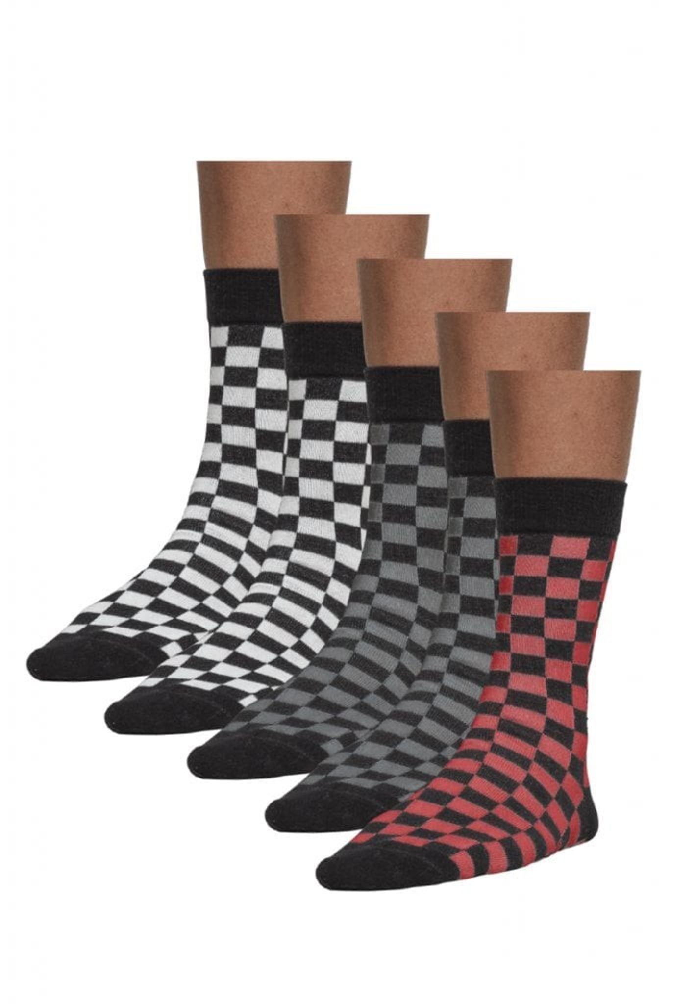 Kontroller sokker 5-pakning Tåområdet såvel som de elastiske manchetter er i kontrastfarve. Materialet i Unisex -sokkerne er bomuld, der inkluderer en lille procentdel af elastan og polyester, der lover fremragende bærekomfort og garanterer en nøjagtig pasform. Sokkerne er skåret kalv højt.