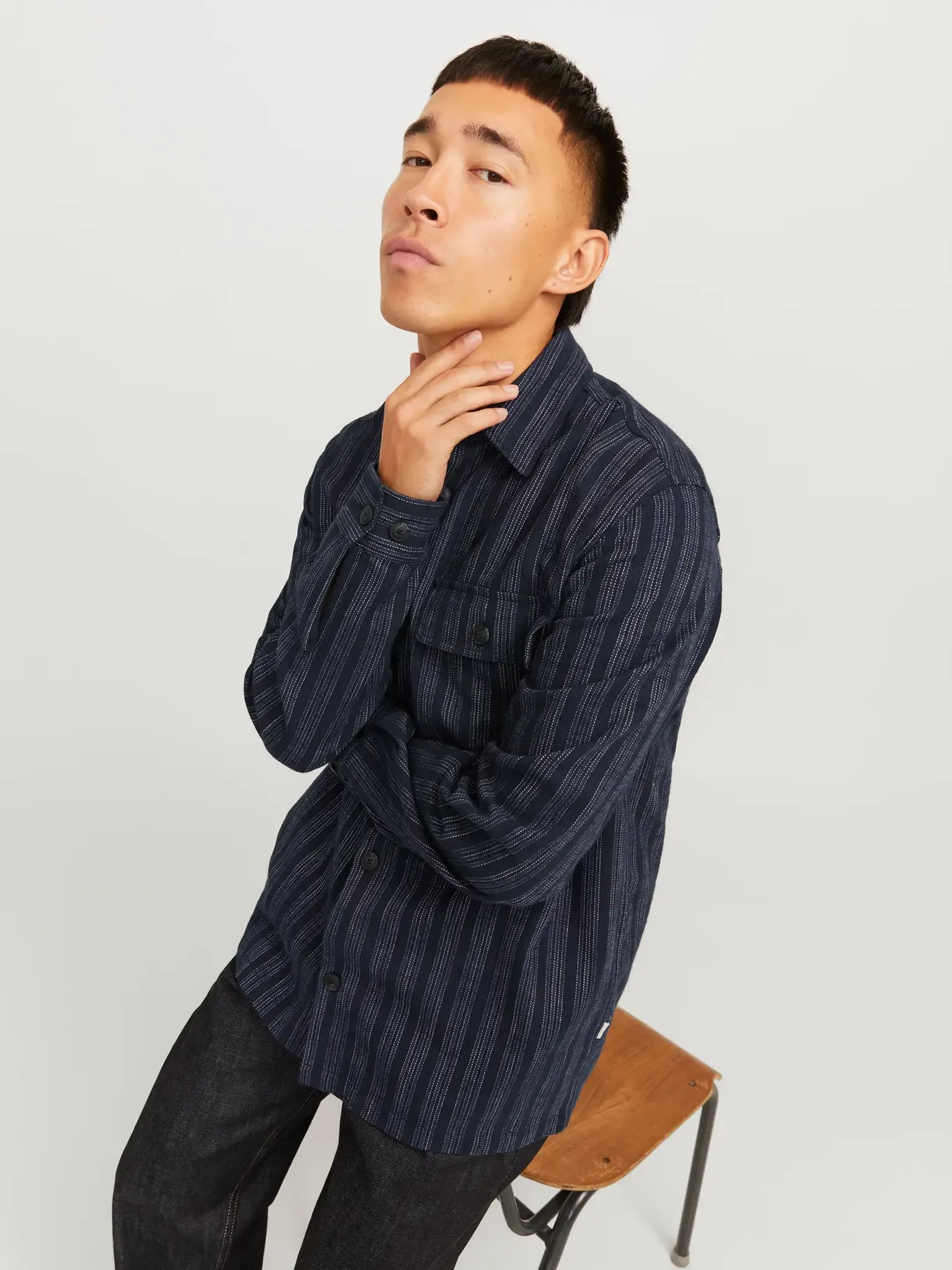 Denna overshirt är en mångsidig lagerpiece som passar utmärkt under en kappa eller shacket, men kan även bäras ensam för en avslappnad stil.