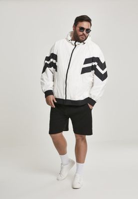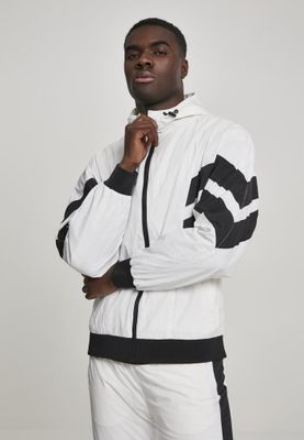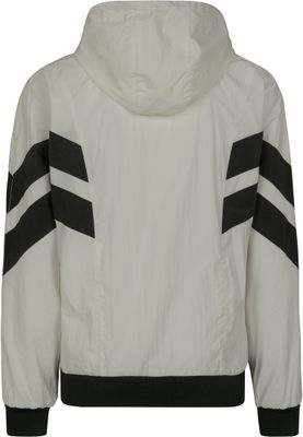 A sporty jacket in thin wrinkled fabric. The jacket has a high neck with zipper and zipper in the hood.