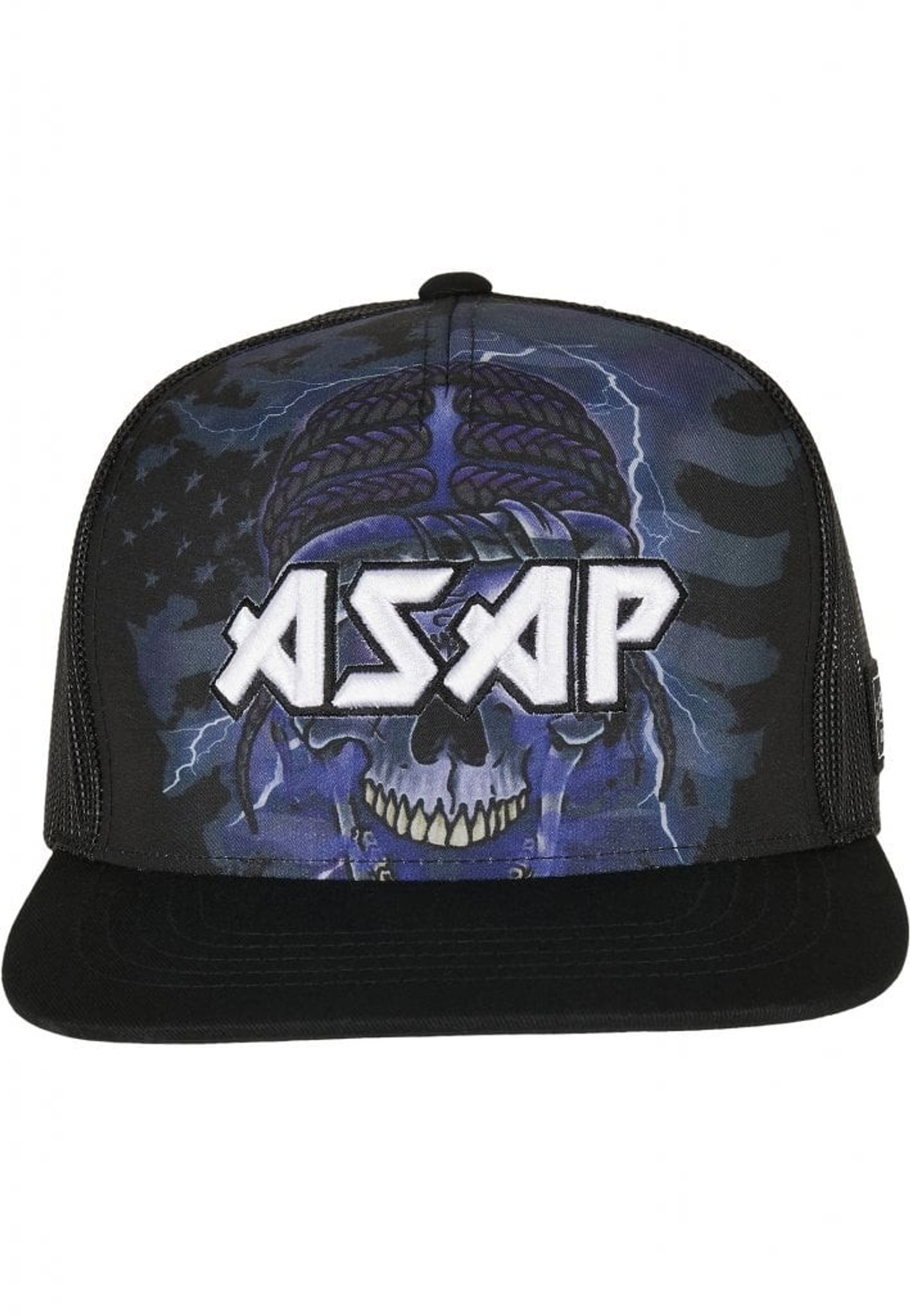 Opdag C&S WL Flashin Dark Trucker Cap, en stilfuld kasket med et udfordrende ASAP-kraniemotiv foran.