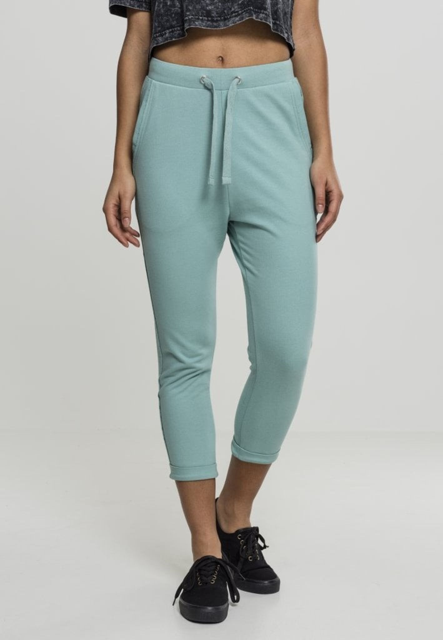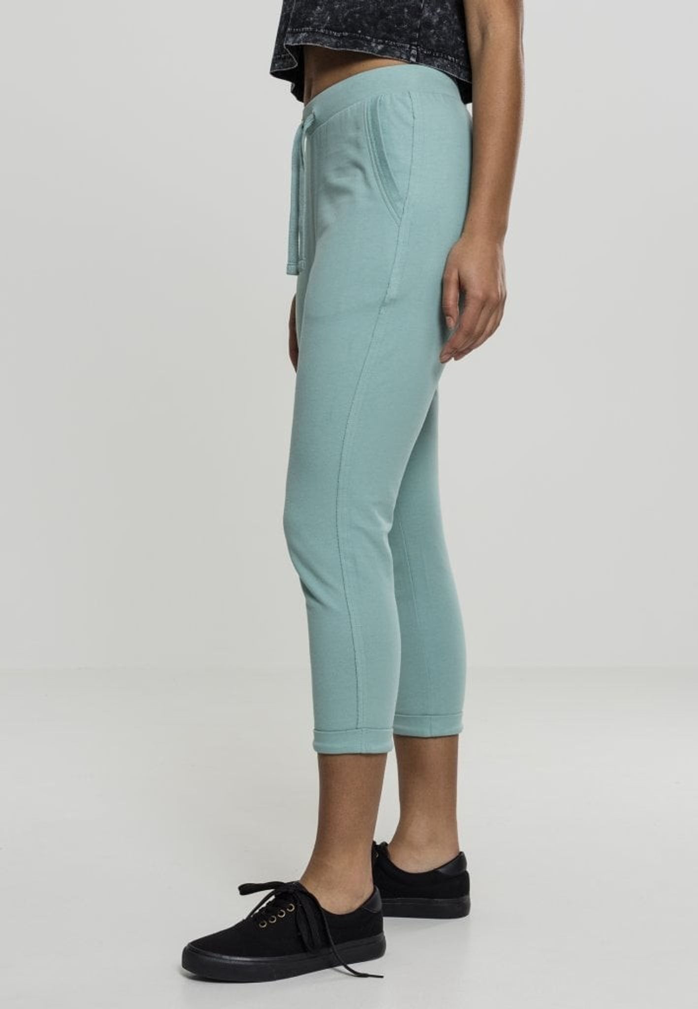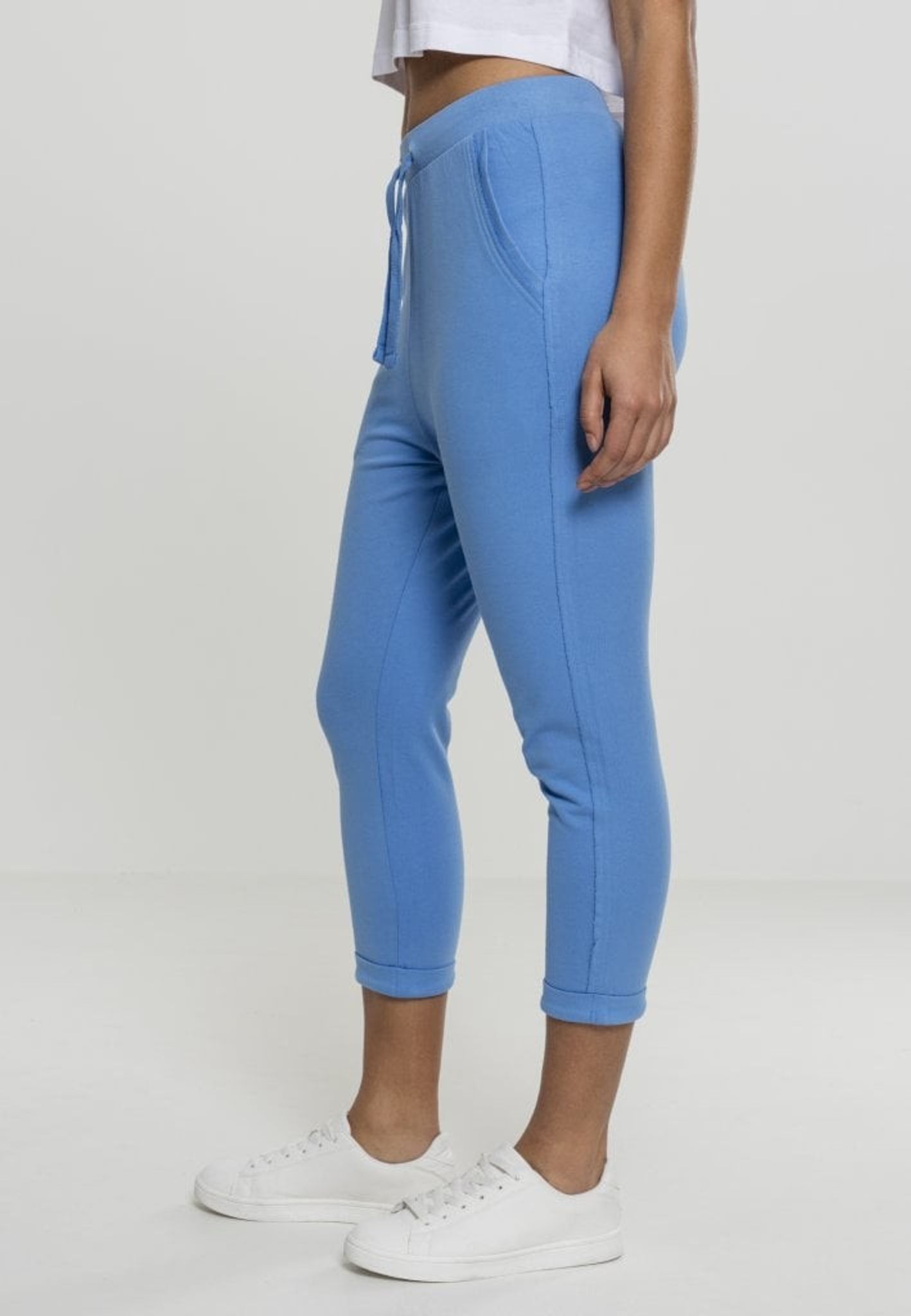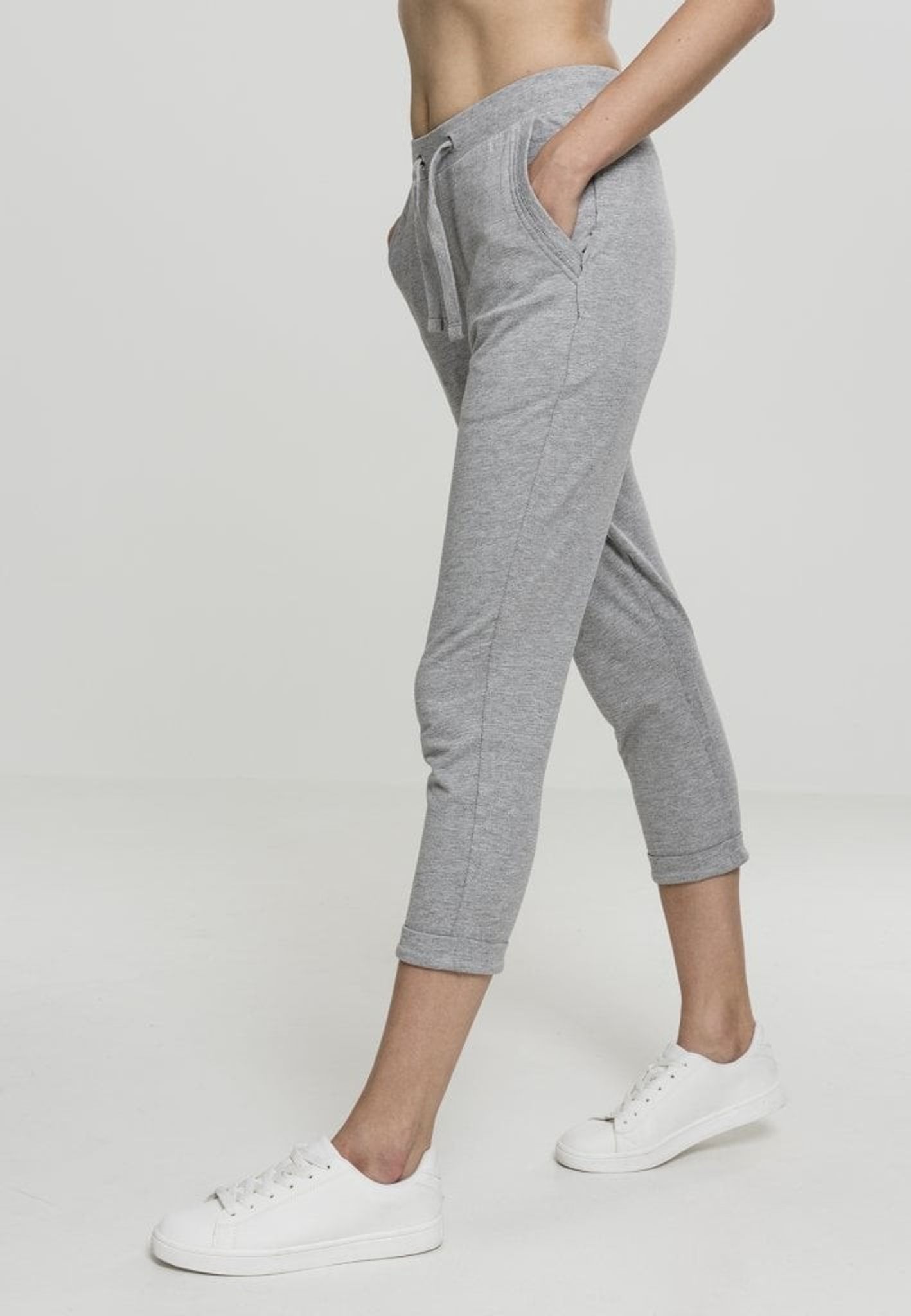 Denne bukser er lavet af 100% bomuld og i blødt sweatshirt materiale. Sidenesømmen har en grov kant og buksesiden lommer har en ribbe. Bukserne er 7/8 lange og har en hævet kant i hæmmen. Taljen er bred med en snor, hvor sweatpants kan justeres.