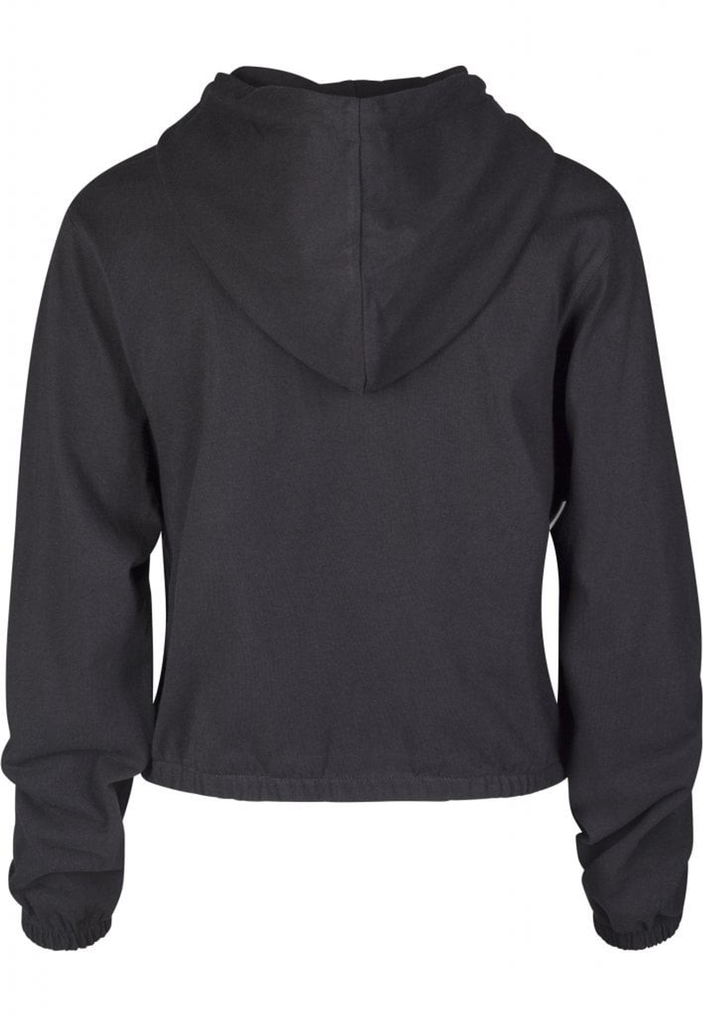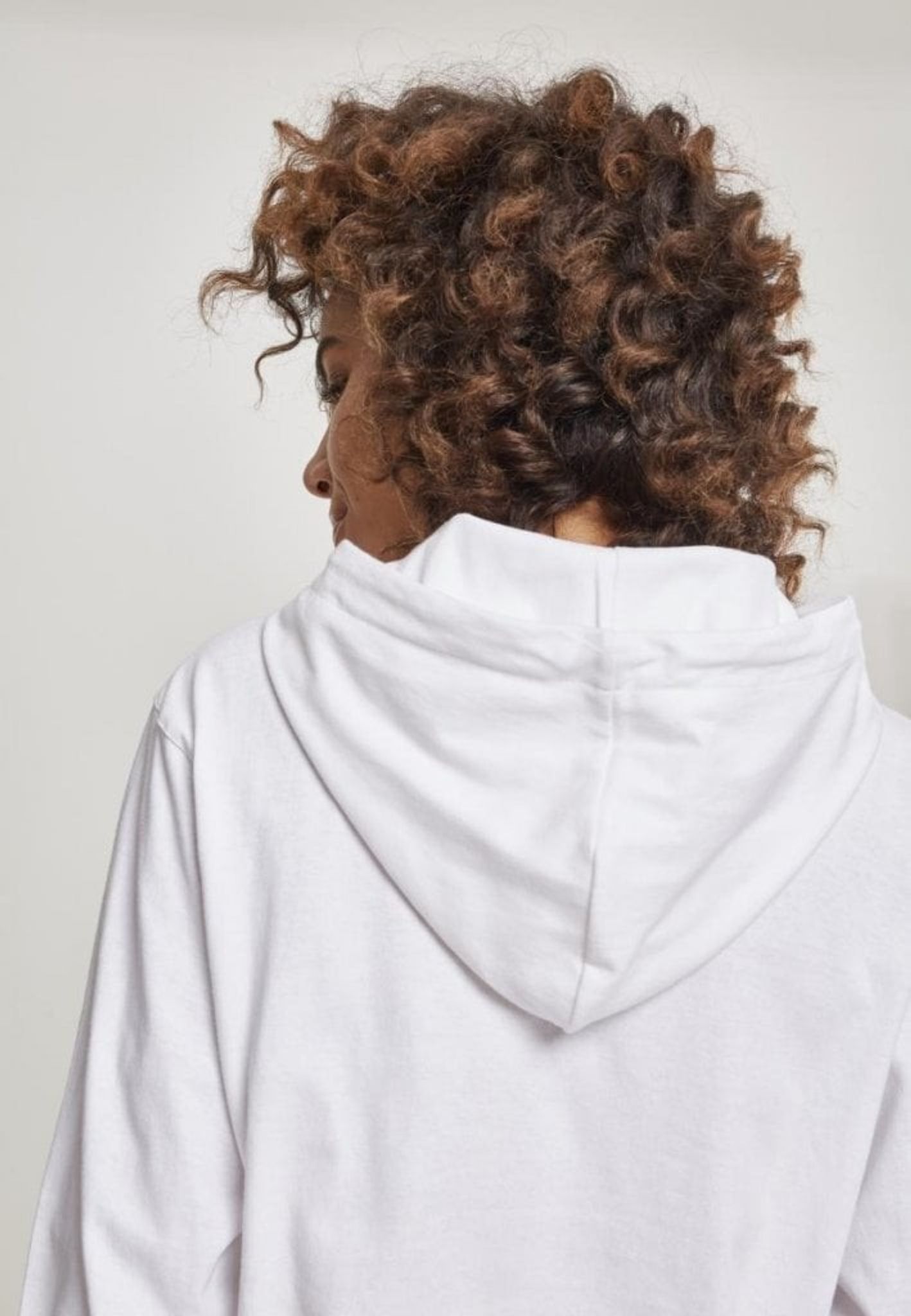 En sporty hættetrøje i kort oversize model. Ærmerne er alle i form og har syet ryg i bunden. Selv nederdelen har et syet reb og i halsen er der en snorring med metalgardiner.