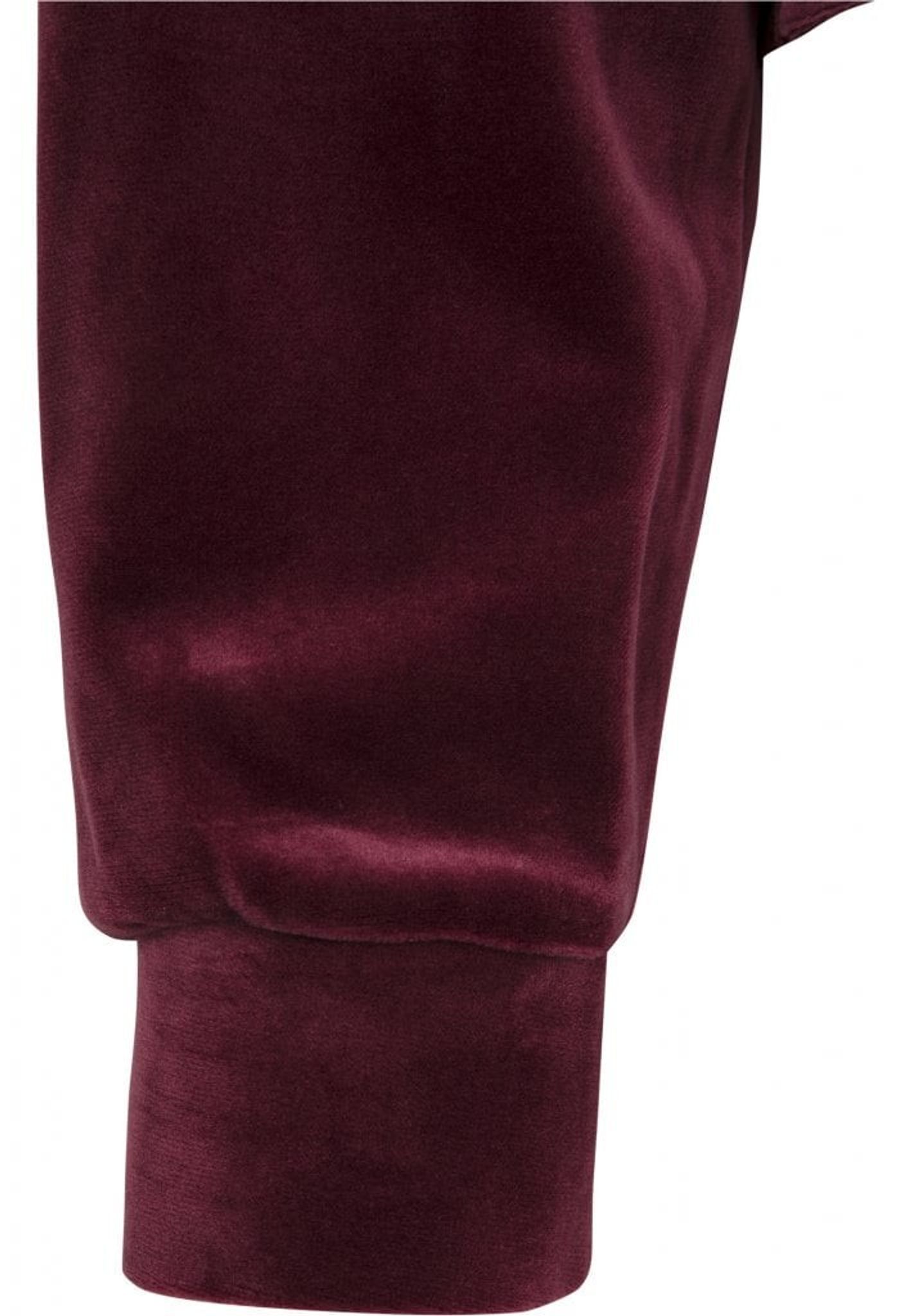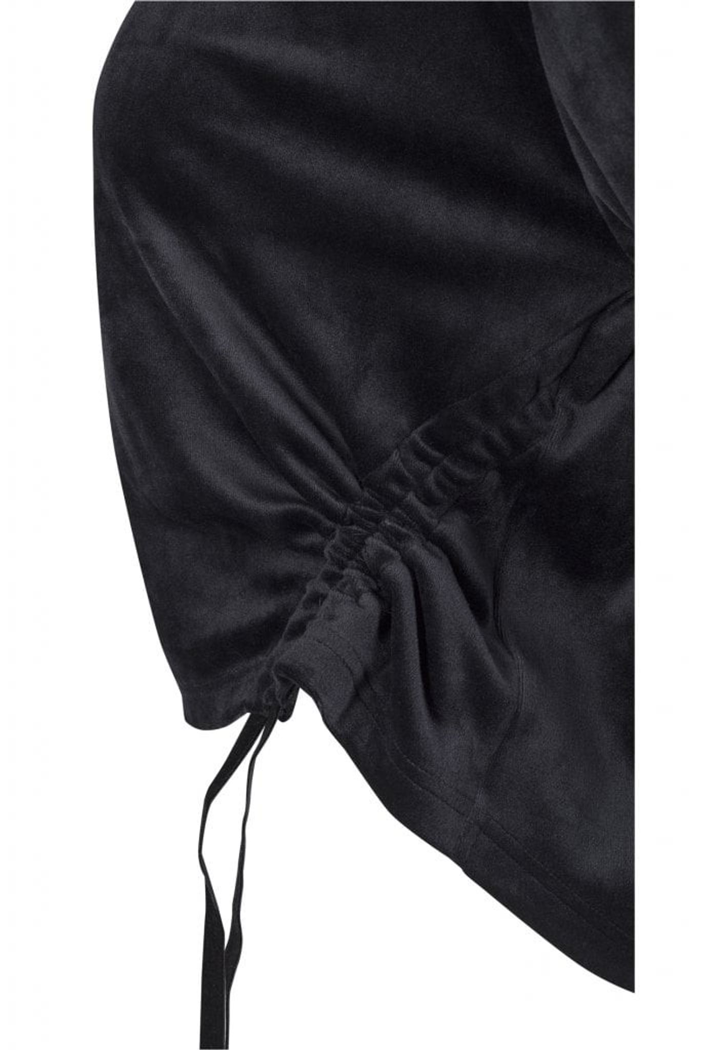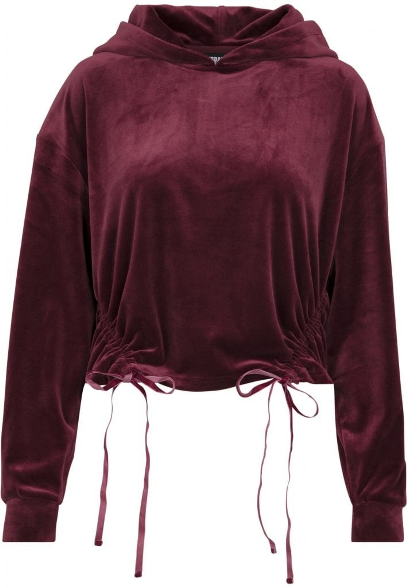 Denne hættetrøje er i en kort oversize model. Skjorten har snørebånd med blørremme på forsiden af trøjen. Strengene kan reguleres forskelligt. Hætten uden snorbånd gør det feminin.