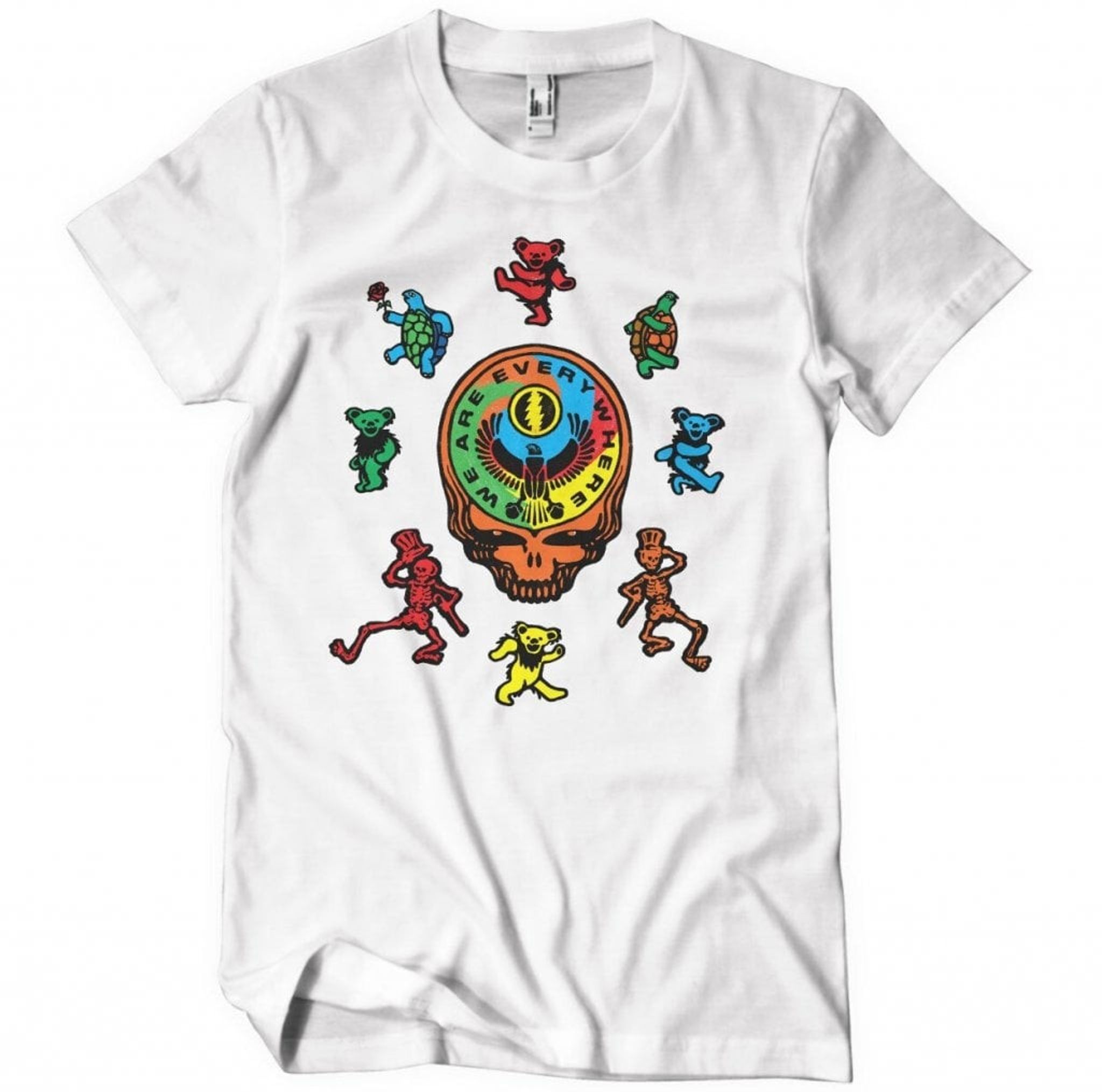 Fejr Grateful Dead med denne farverige T-shirt med dansende bjørne og et egyptisk-inspireret dødningehoveddesign. Perfekt til fans, der elsker bandets unikke og ikoniske stil.