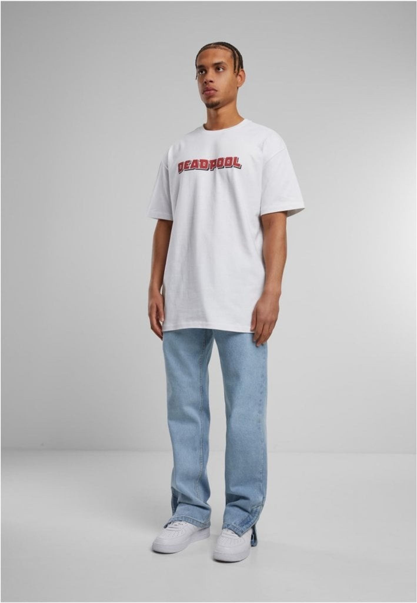 Vis din humoristiske side og kærlighed til Marvels mest ikoniske antihelt med denne overdimensionerede Deadpool T-shirt. Forsiden er prydet med et stilrent Deadpool-logo, mens bagsiden har et legende print af Deadpool med popcorn og teksten "Here for the comments". Perfekt til fans, der elsker både action og sarkasme!
