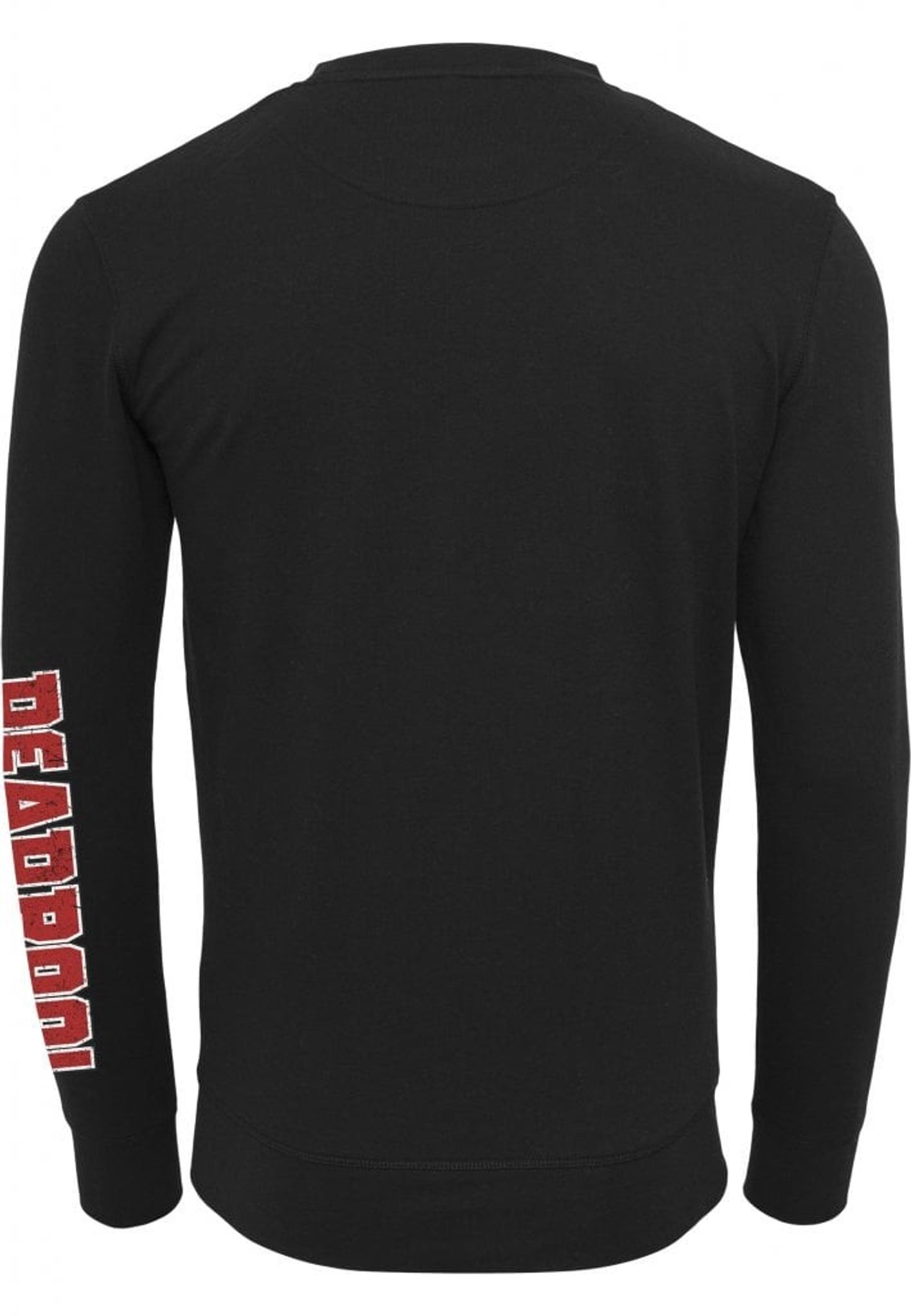 Her er den humoristiske superhelt i en splatter på brystet af en sort sweatshirt. På armen finder du Deadpools log.