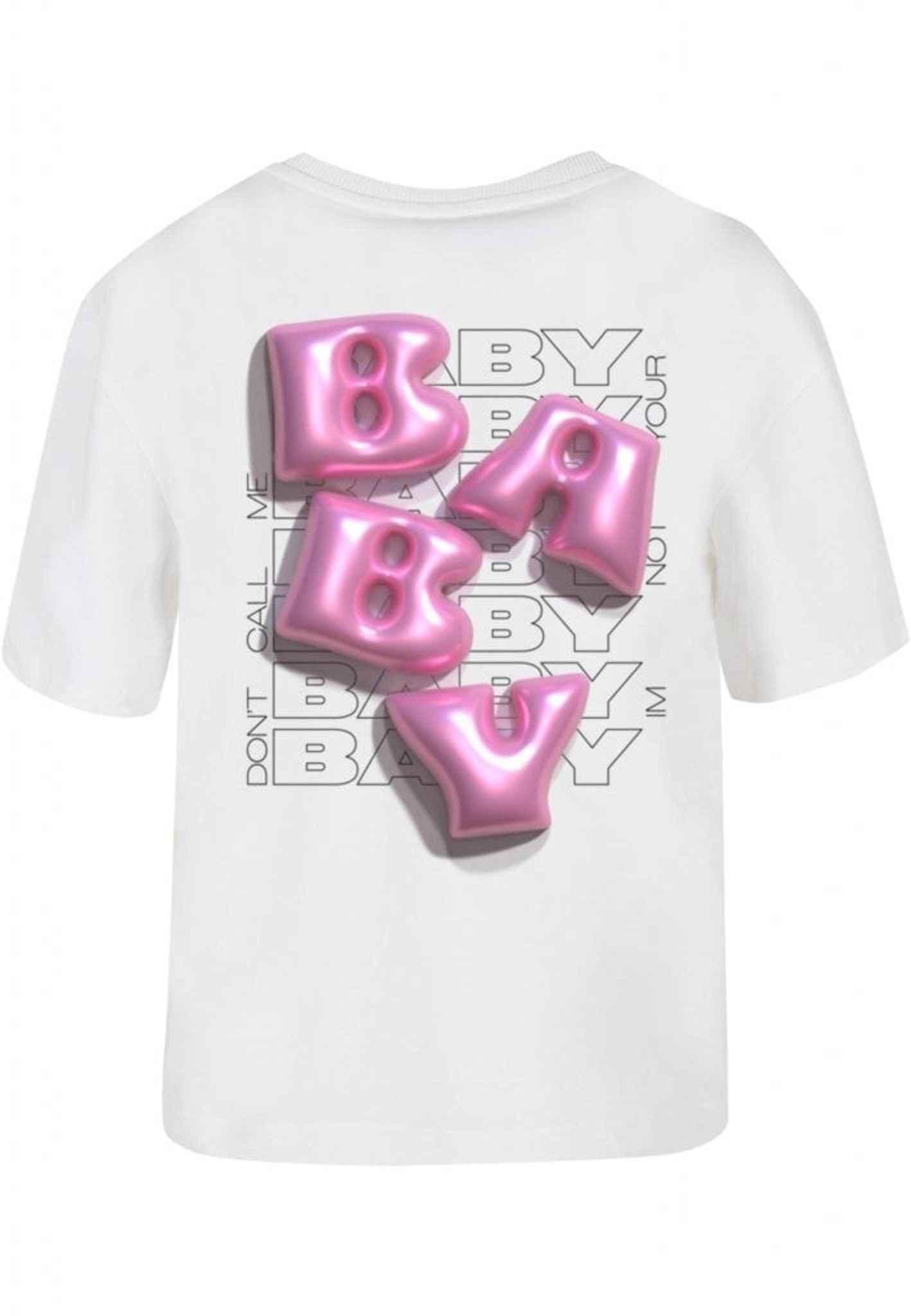 Tøjet med motivet "DON'T CALL ME BABY" er en stilfuld og humoristisk skjorte til kvinder, der gerne vil sætte klare grænser. Med store, blanke lyserøde bogstaver, der danner ordet "BABY" i en 3D-effekt, bliver det klart, at det ikke er i orden at kalde bæreren netop det. Den gentagne tekst i sort skaber en interessant kontrast til de lyserøde bogstaver og giver skjorten et unikt præg.