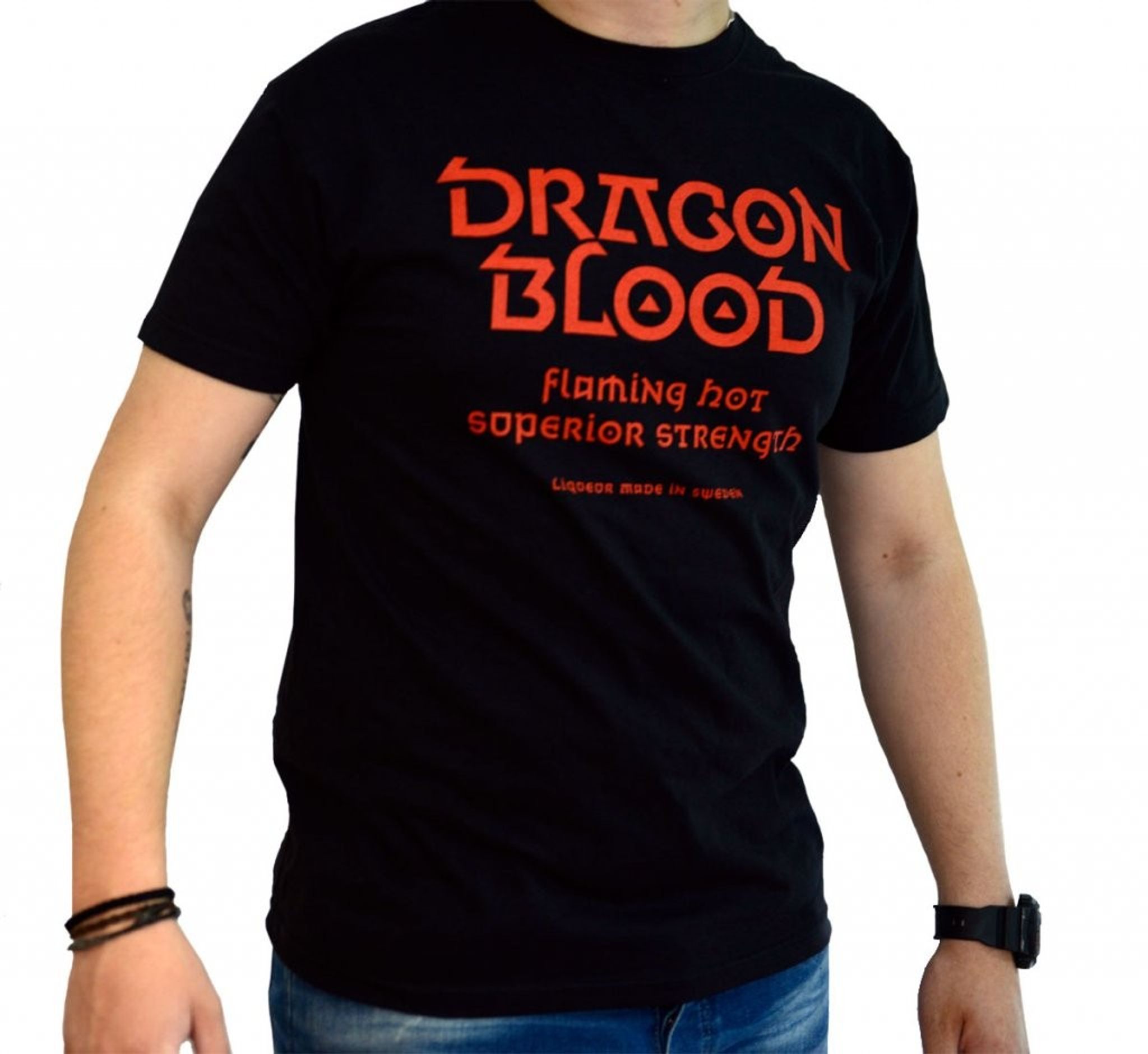 En elegant t-shirt med Dragon Blood-tryk på brystet.