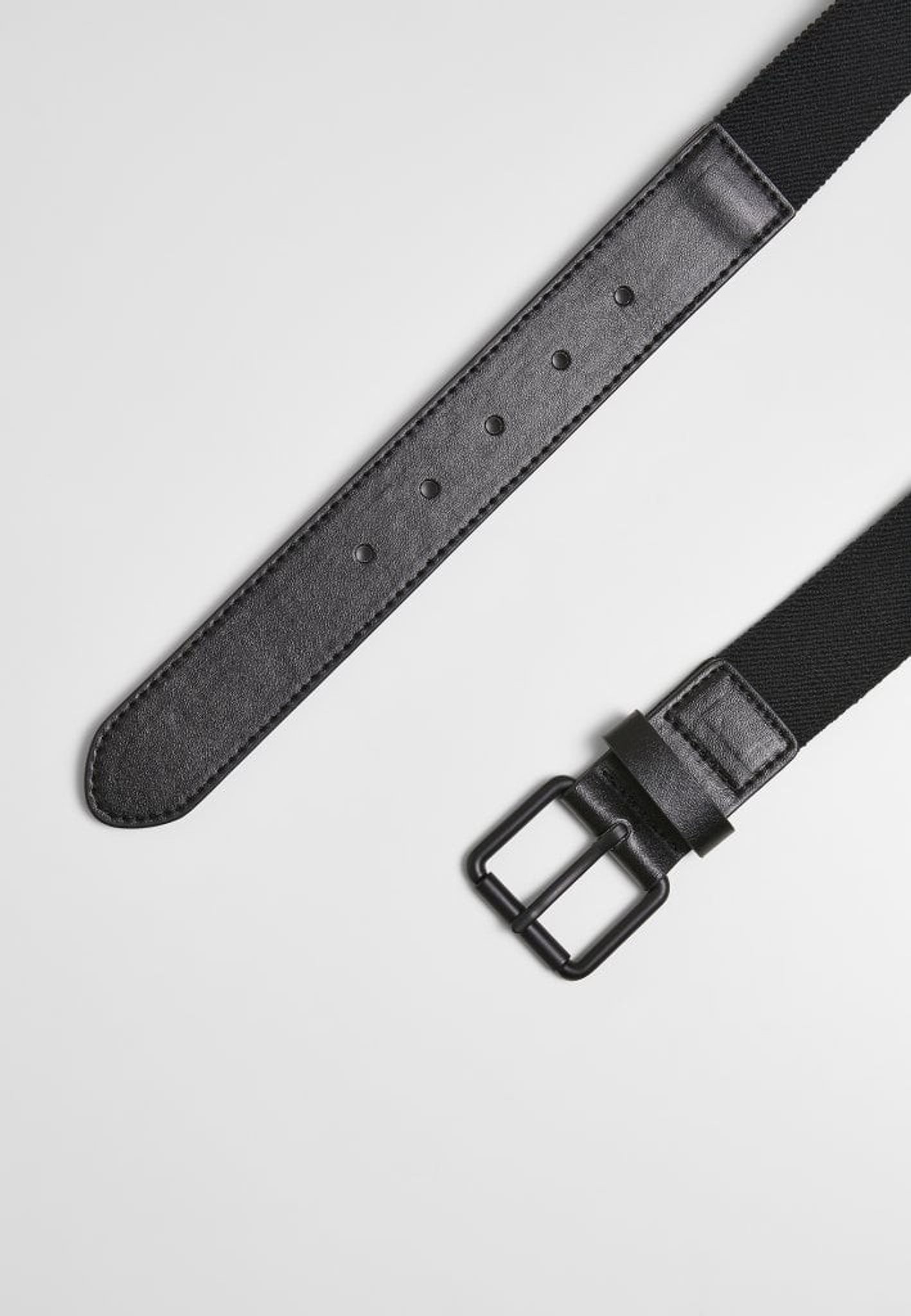 Bältet är gjort i två materiale. Ett blankt och ett med stretch.