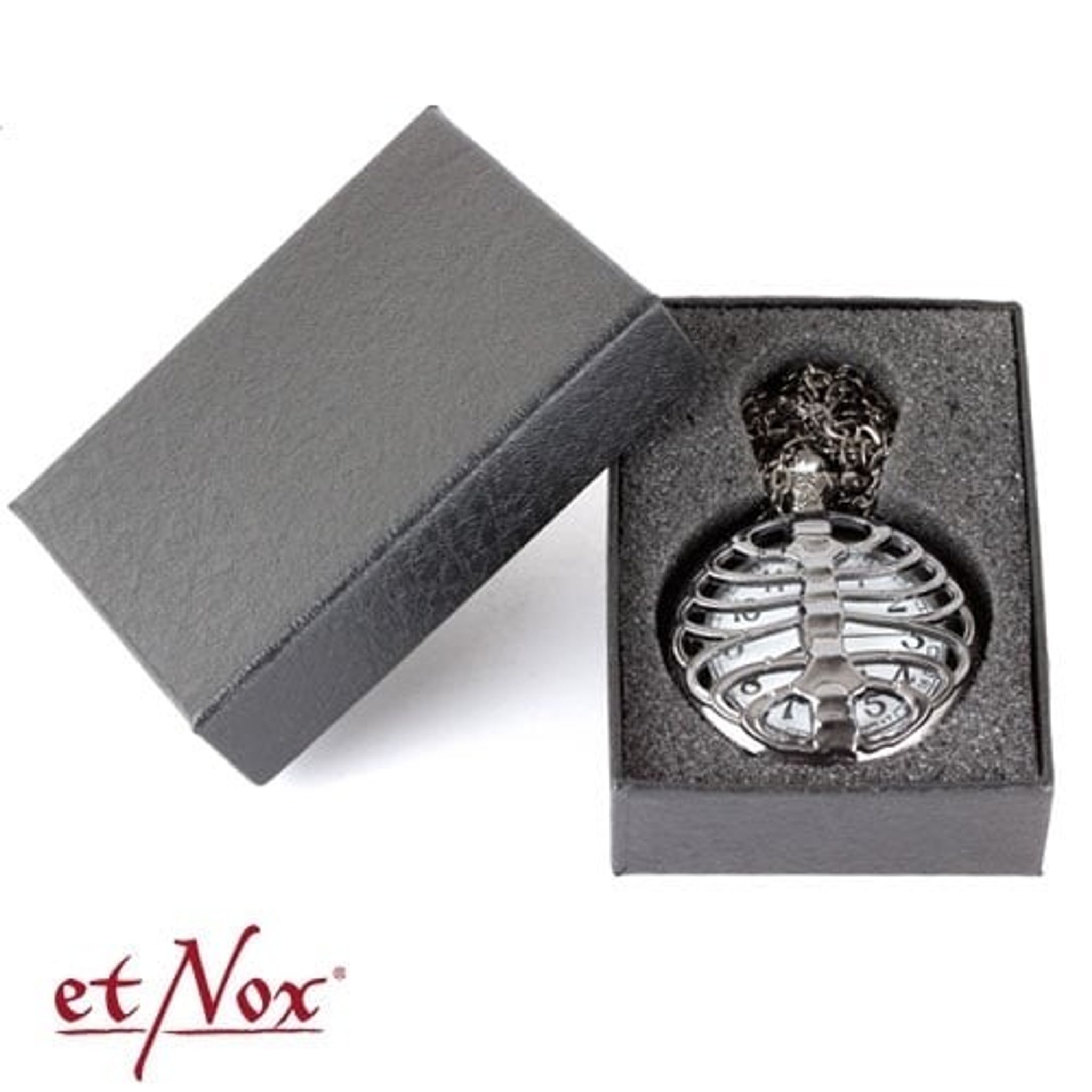Et lækkert lommeur med et låg, der har formen af ribben, der krammer rundt om uret.