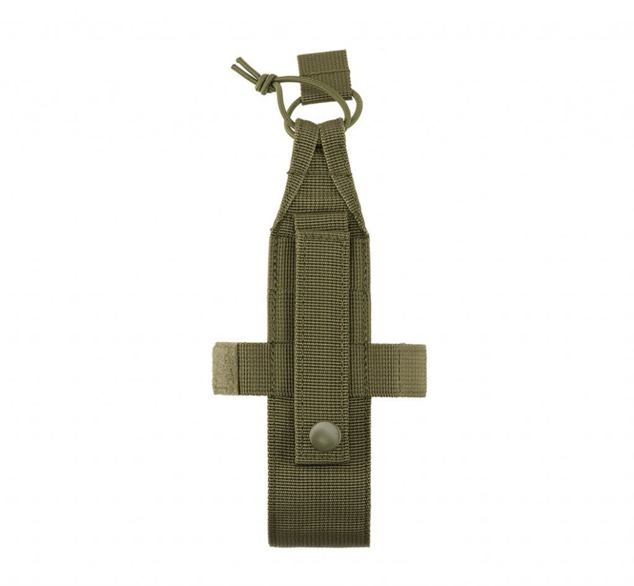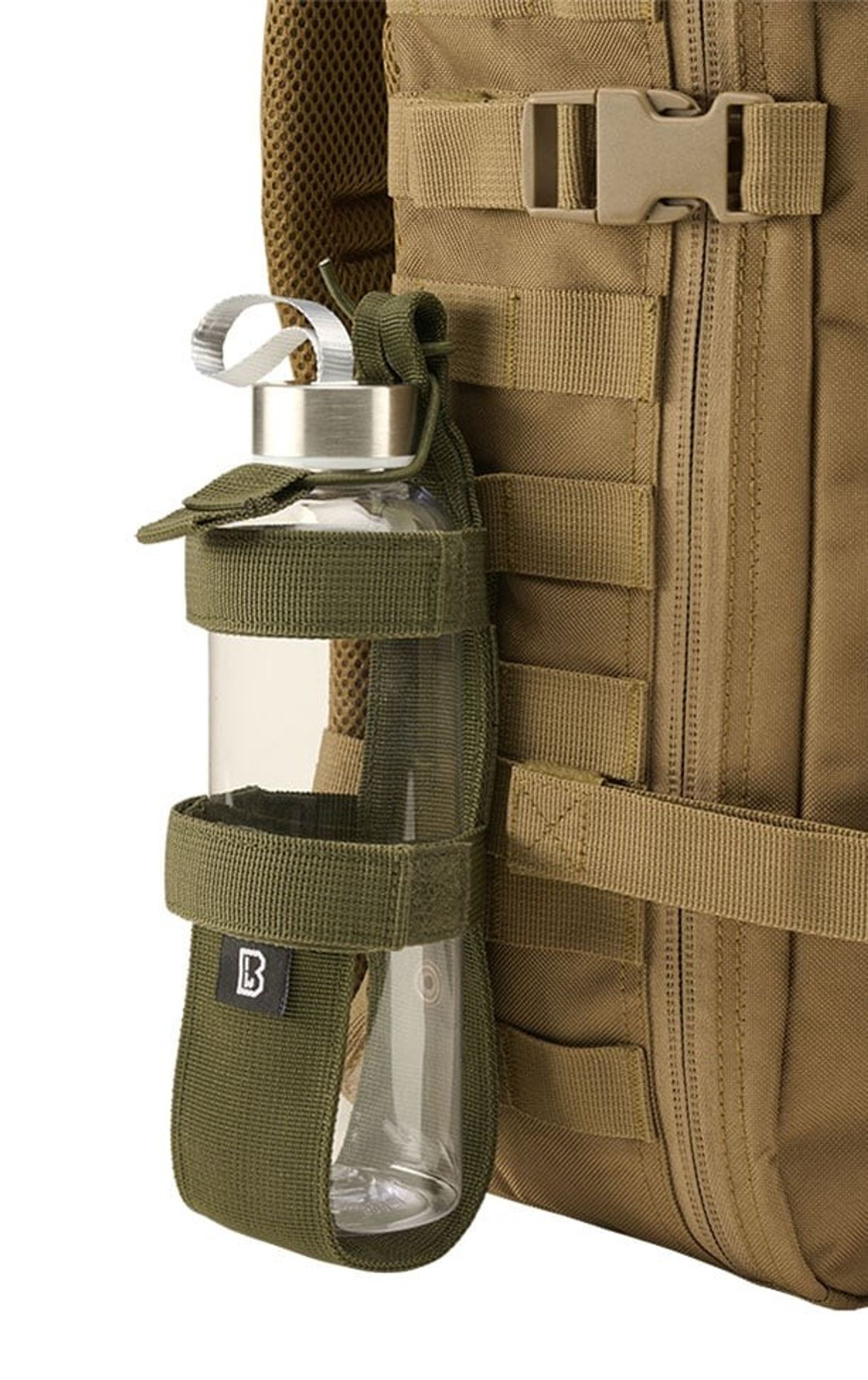Flaskeholder Molle Flex medium er en fleksibel flaskeholder lavet af slidstærkt 600D polyestermateriale. Den er designet med PALS-lukninger, der gør den let at fastgøre til Molle-systemet på din rygsæk, vest, jakke og meget mere. Fastgørelsesløkken gør det også muligt at bære flaskeholderen direkte på dit bælte. Flaskeholderen har en vandret fikseringsrem med velcrolukning, der holder flasken stabil og sikker.