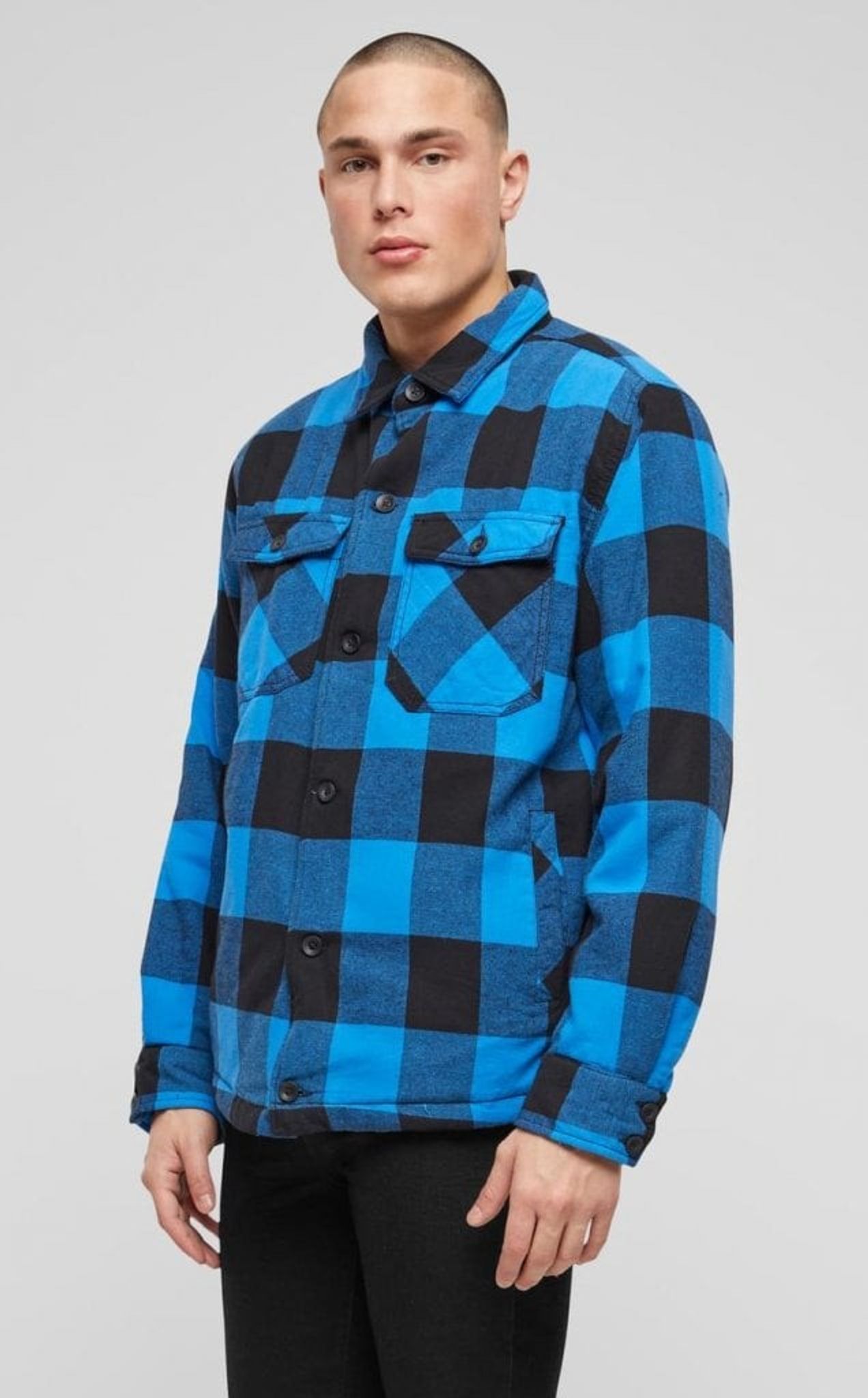 Jakke i et klassisk flannel ternet mønster i grønt og sort. Jakken har en foldet krave som en flannelskjorte og indersiden er dækket af et polyesterstof med let polstring.