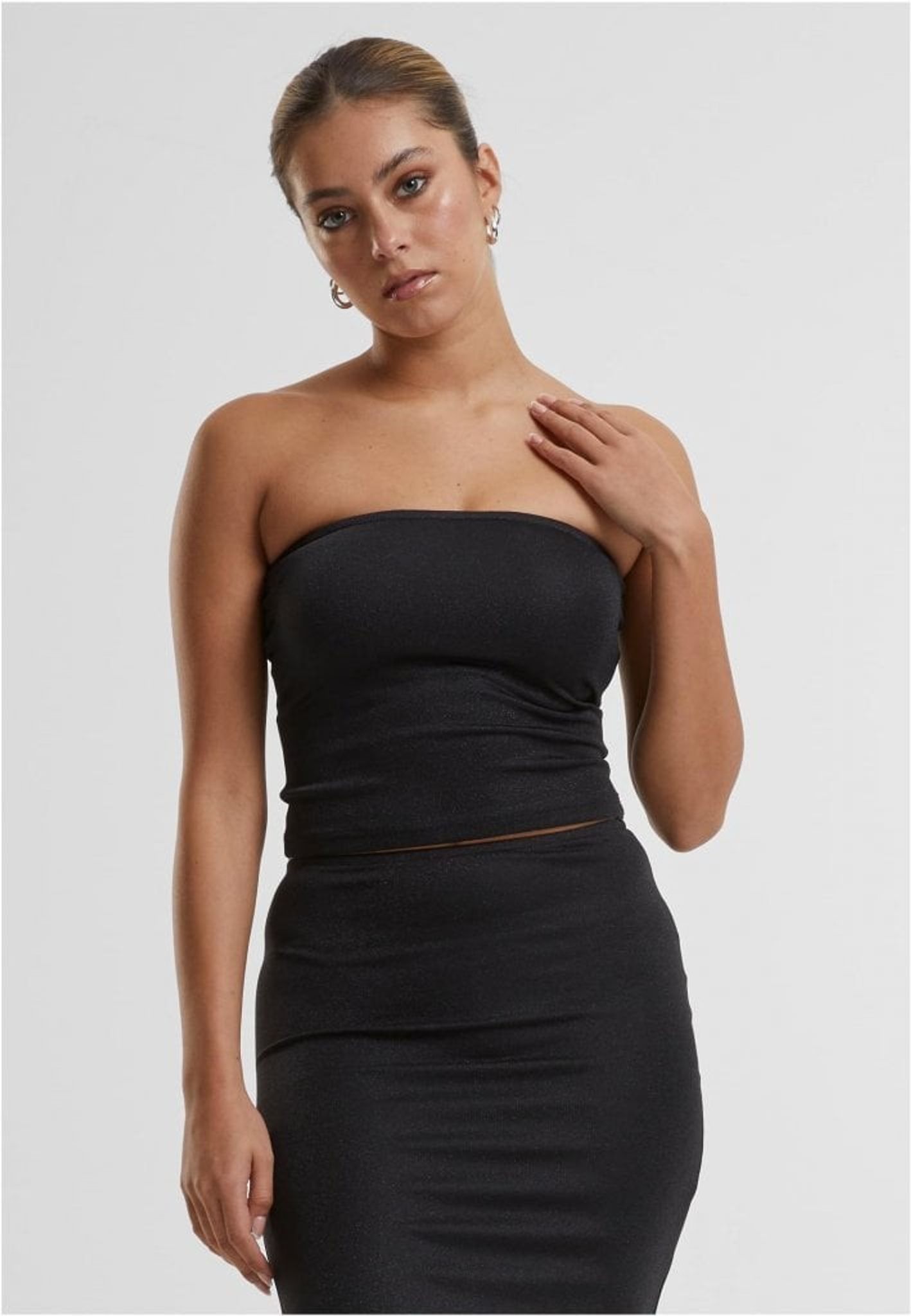 Opgrader din garderobe med vores Ladies Glitter Bandeau, en stilfuld og funklende top, der er perfekt til festlige lejligheder.