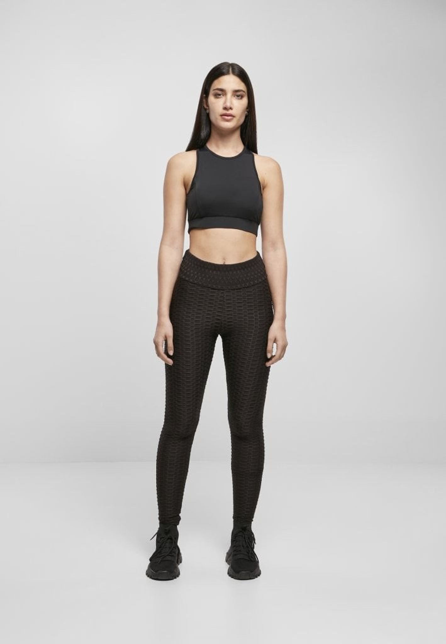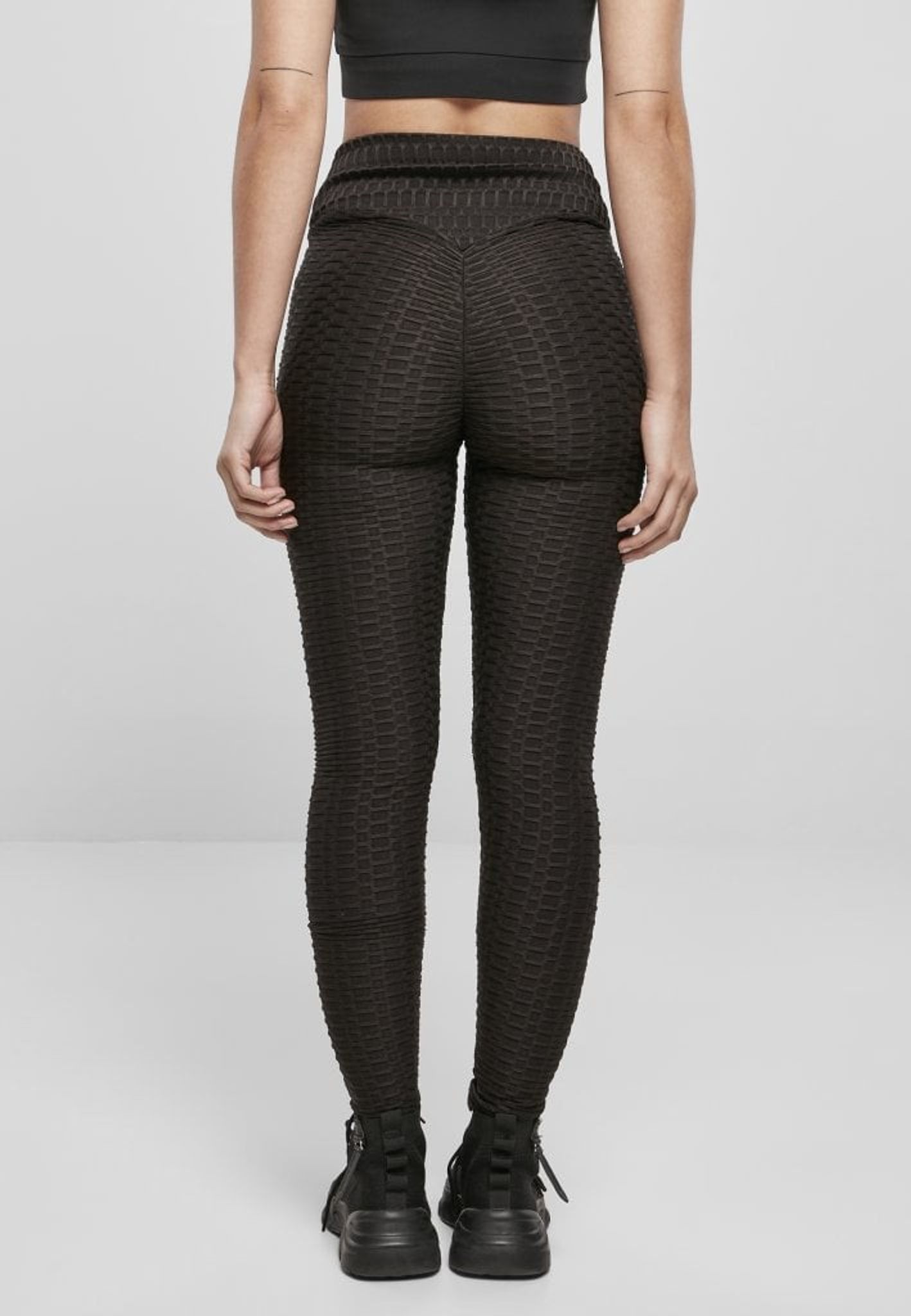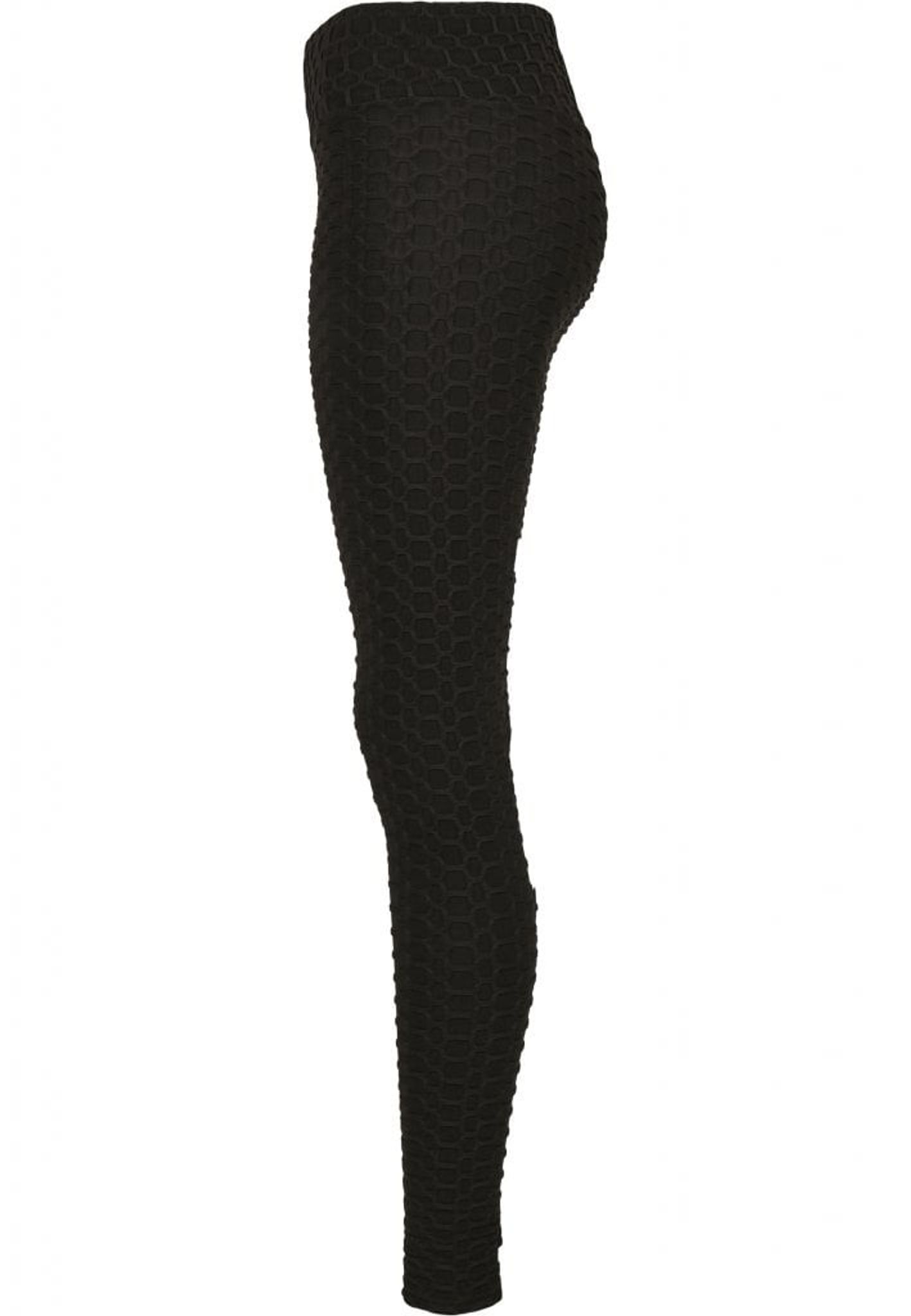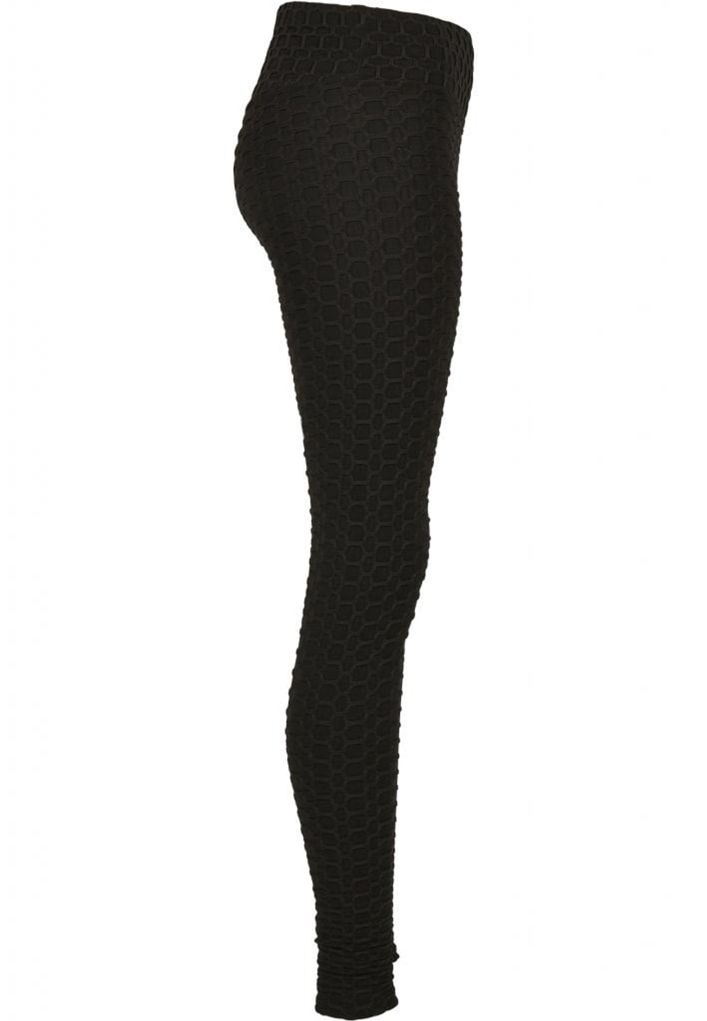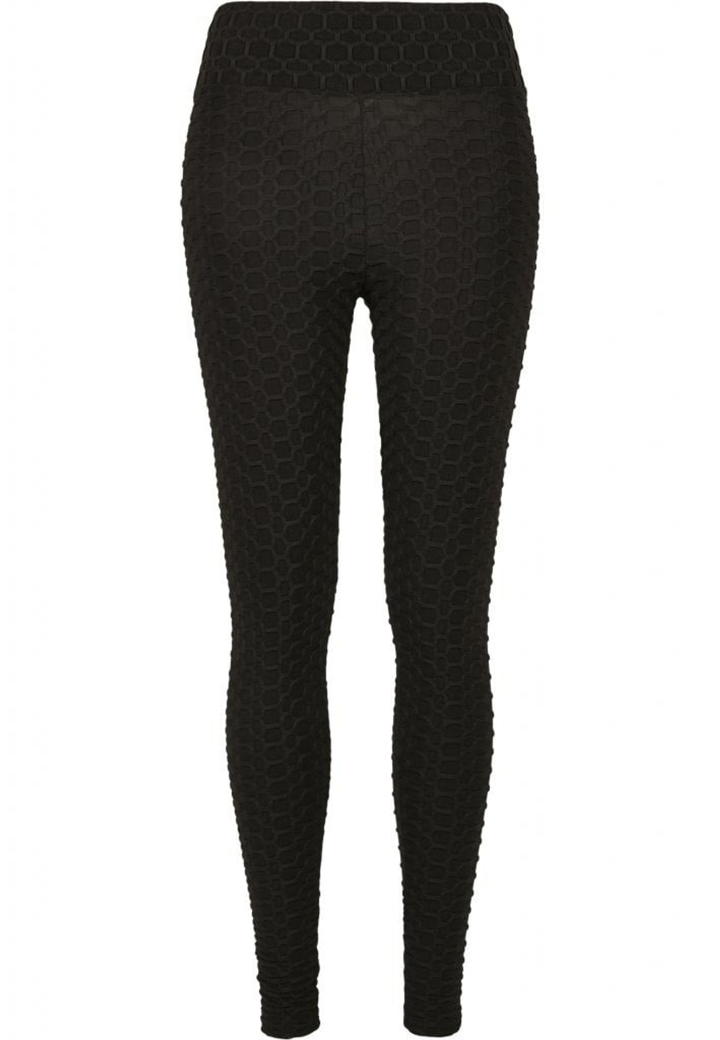 Et par seje leggings med et rundt mønster, der minder om en honeycomb fra en bikube. Mønsteret er lavet så det fremstår som en 3D effekt på tøjet.