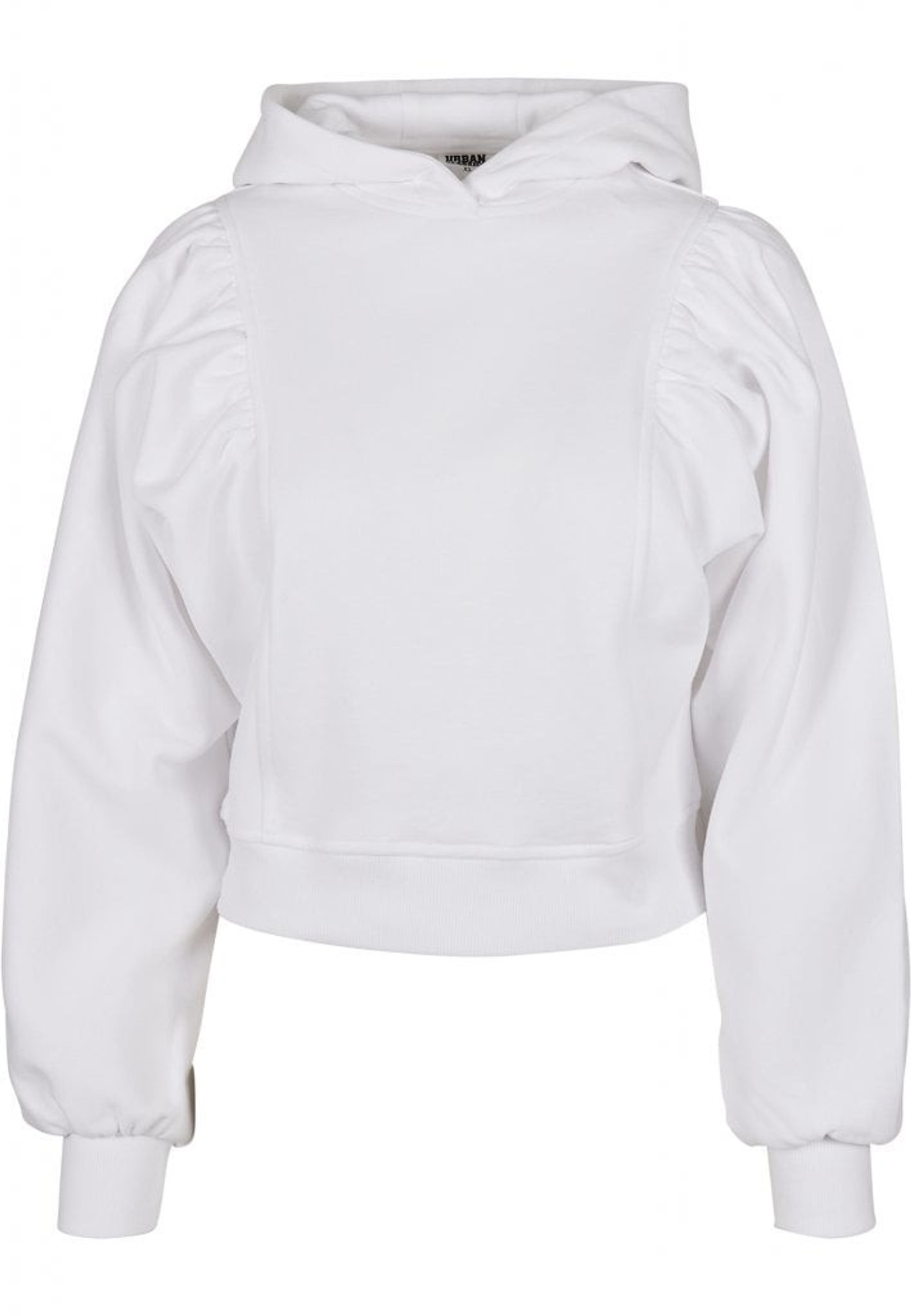 Midt på forsiden er hætten jævn, og armene er brede med en lille puff ærme.
