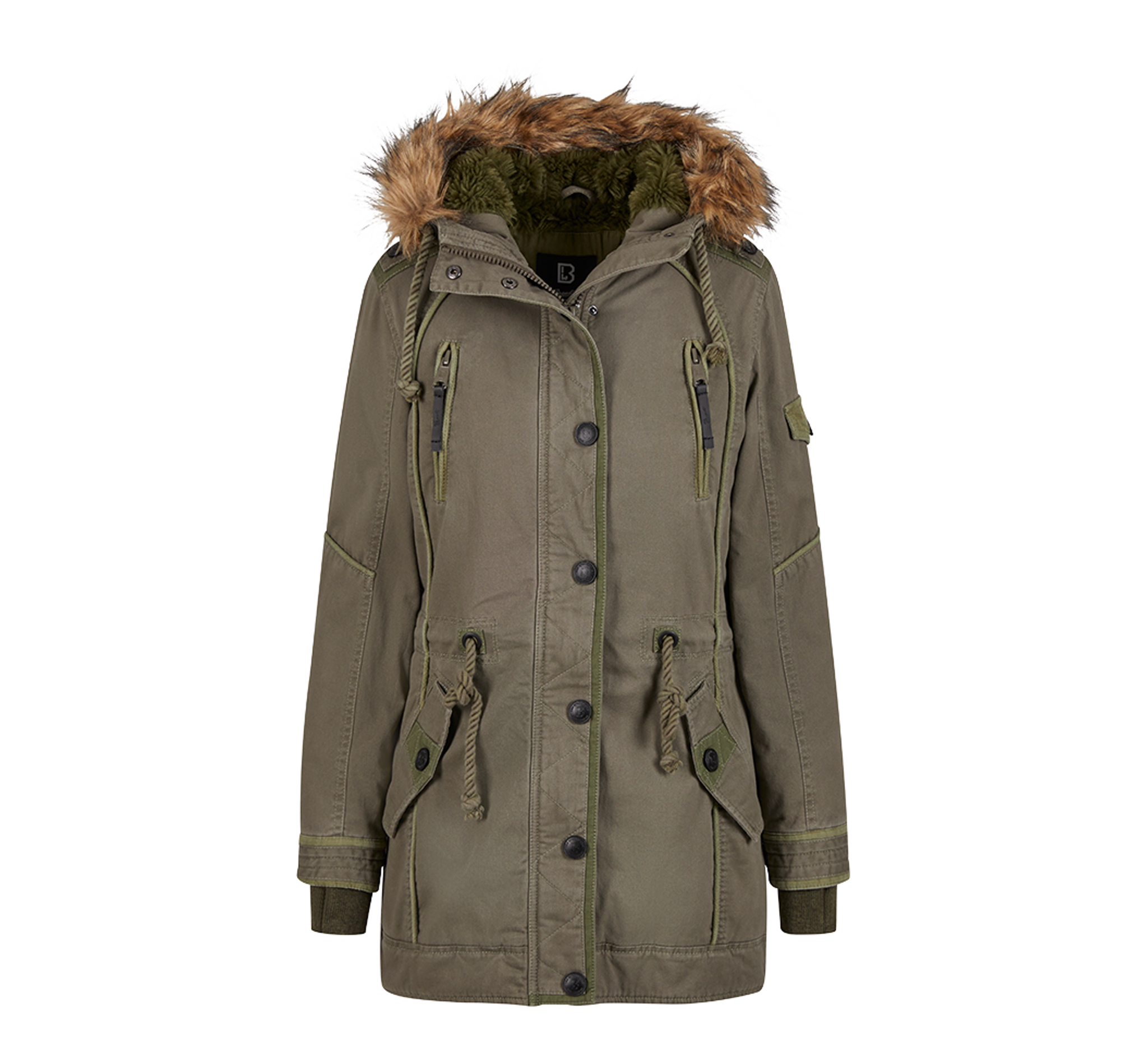 Huva med päls Women Emma Winterparka med huva och päls – olivgrön