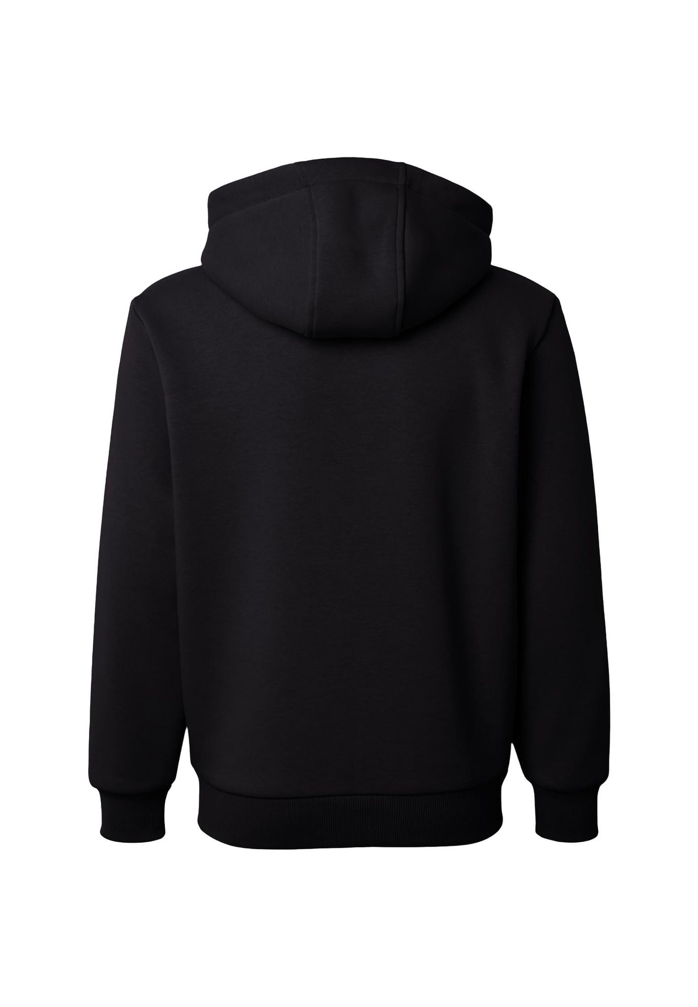Huvtröjan är försedd med dragkedja och huva, vilket gör den lätt att ta på och av och ger extra skydd mot väder och vind. Den stiliga svarta färgen gör att den lätt kan matchas med olika outfits, oavsett om det är till skolan eller under lek och aktiviteter utomhus.