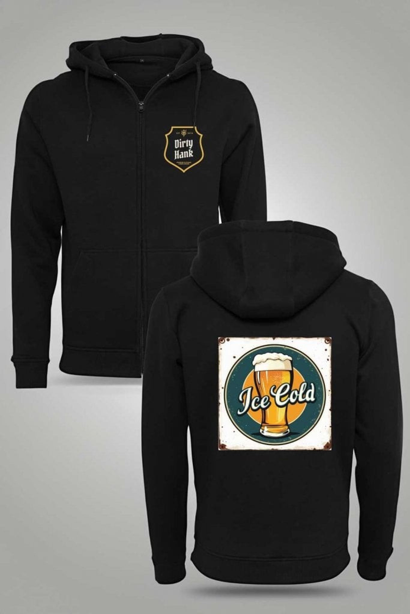 Denne hættetrøje med lynlås er en perfekt blanding af stil og humor til ølelskeren. På forsiden er det klassiske "Dirty Hank"-emblem, der tilføjer et tidløst og sofistikeret touch.