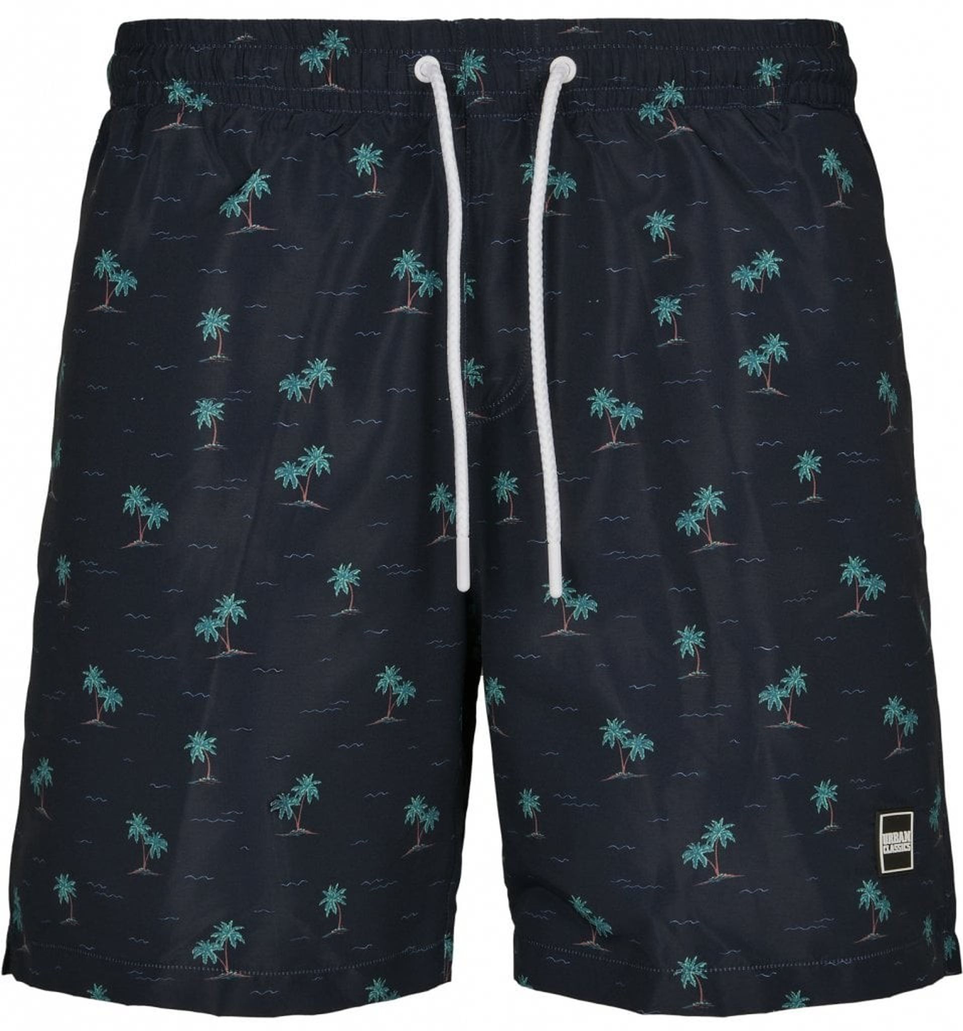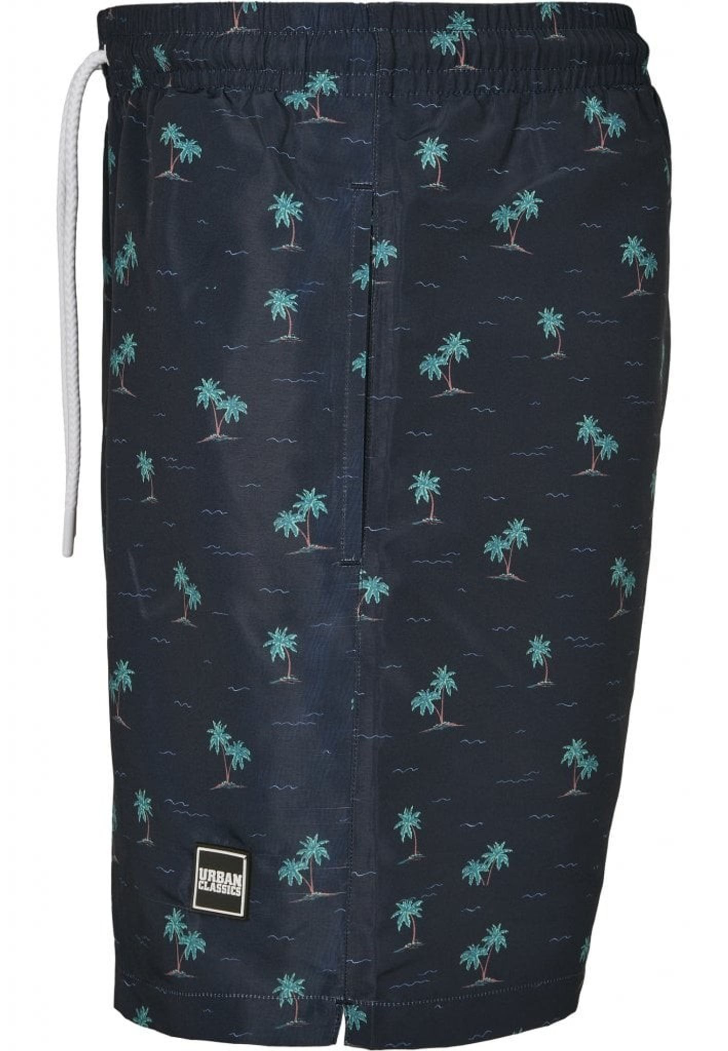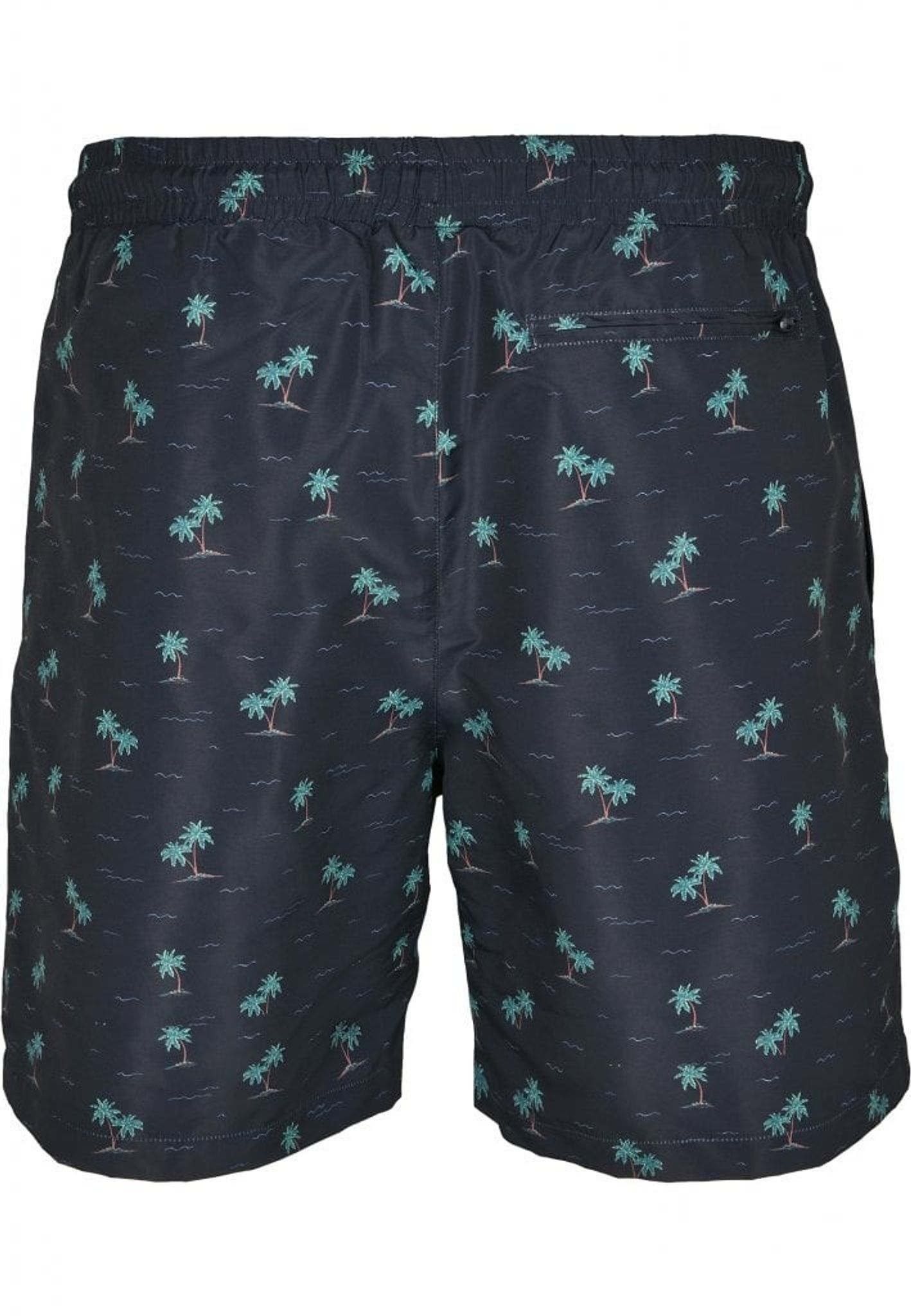 Hårdt svømme shorts med små øer trykt omkring stoffet.