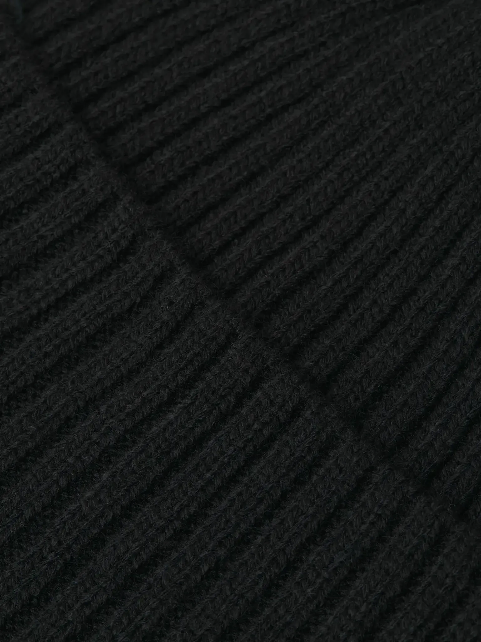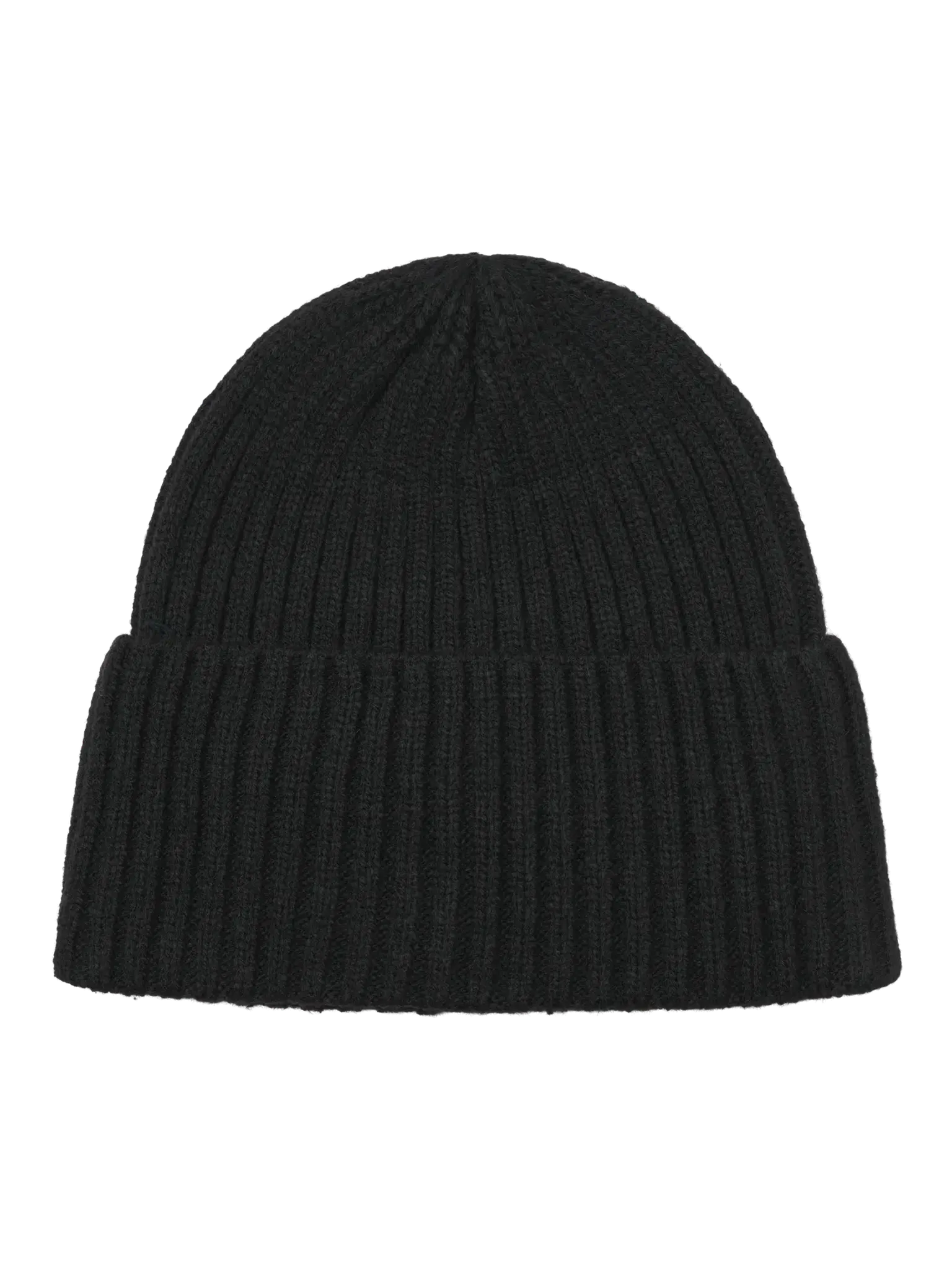 Svart ribbstickad mössa med hög kant