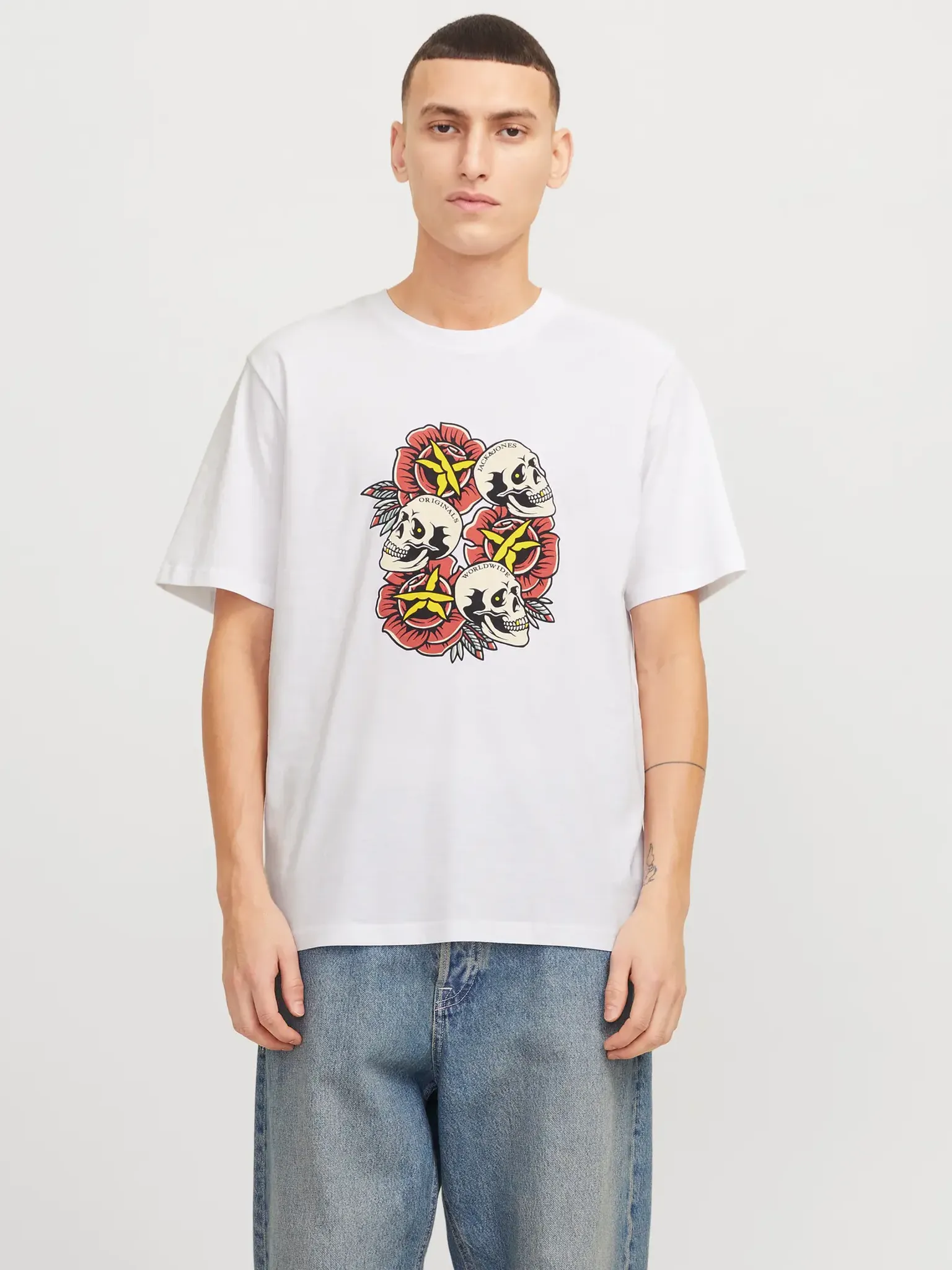 Trycket på T-shirten är en pigmenttrycksteknik, vilket ger en mjuk yta på ljusare tyger. Den är tillverkad av cirkulär stickning och i en enkel jersey, vilket säkerställer hög kvalitet och hållbarhet.