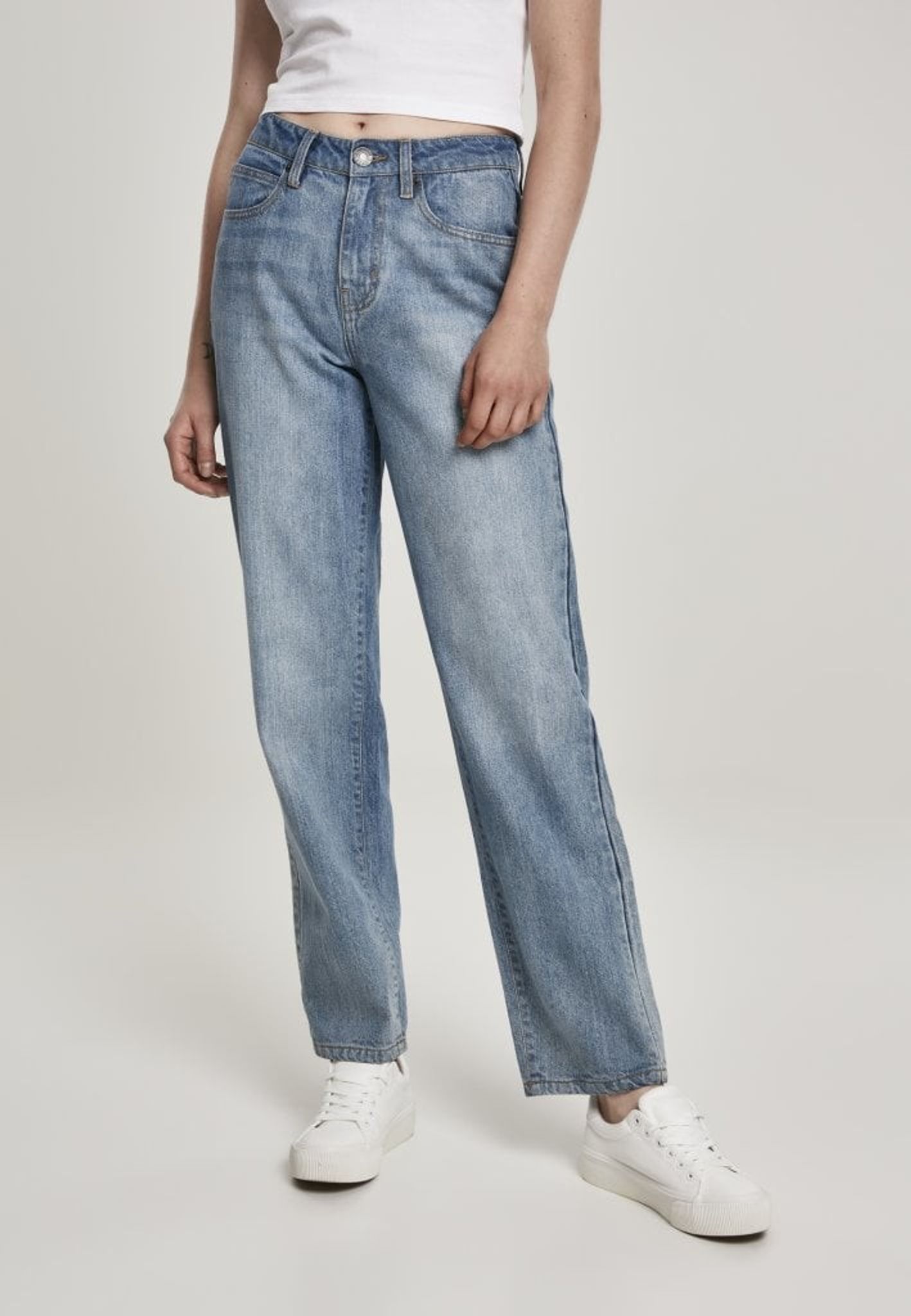 Jeansens længde er til anklen, og bukserne har fem lommer.