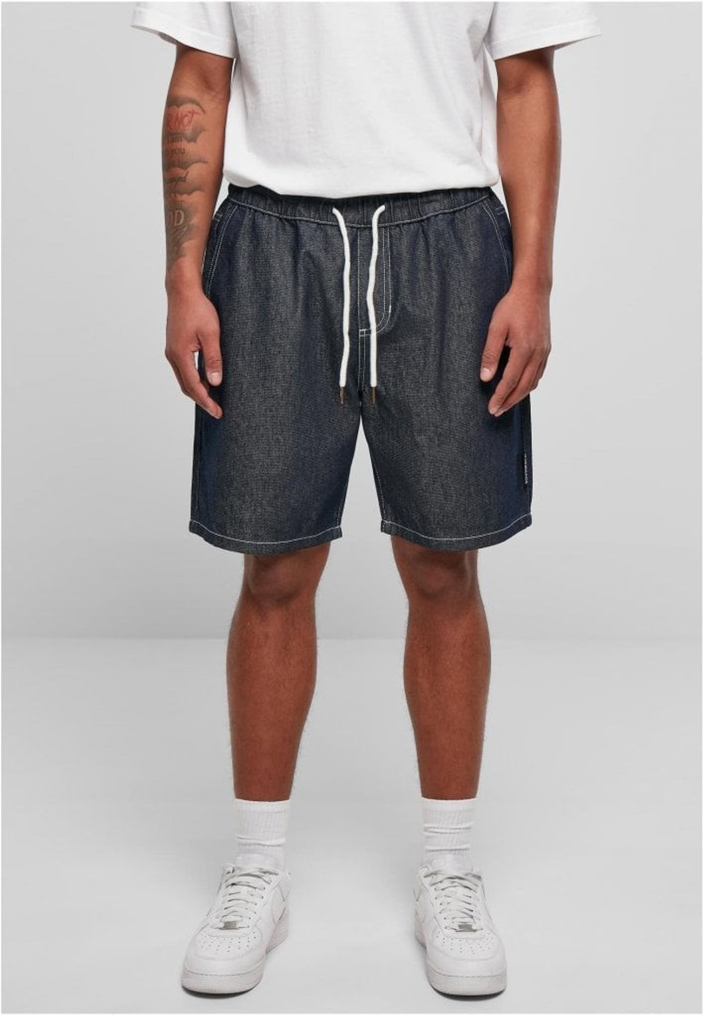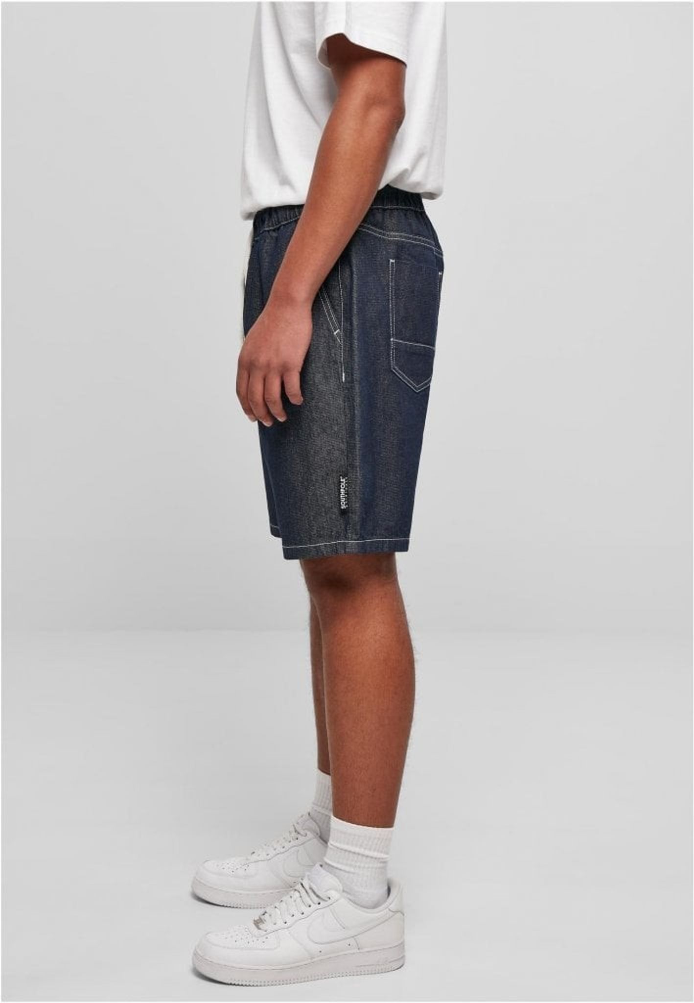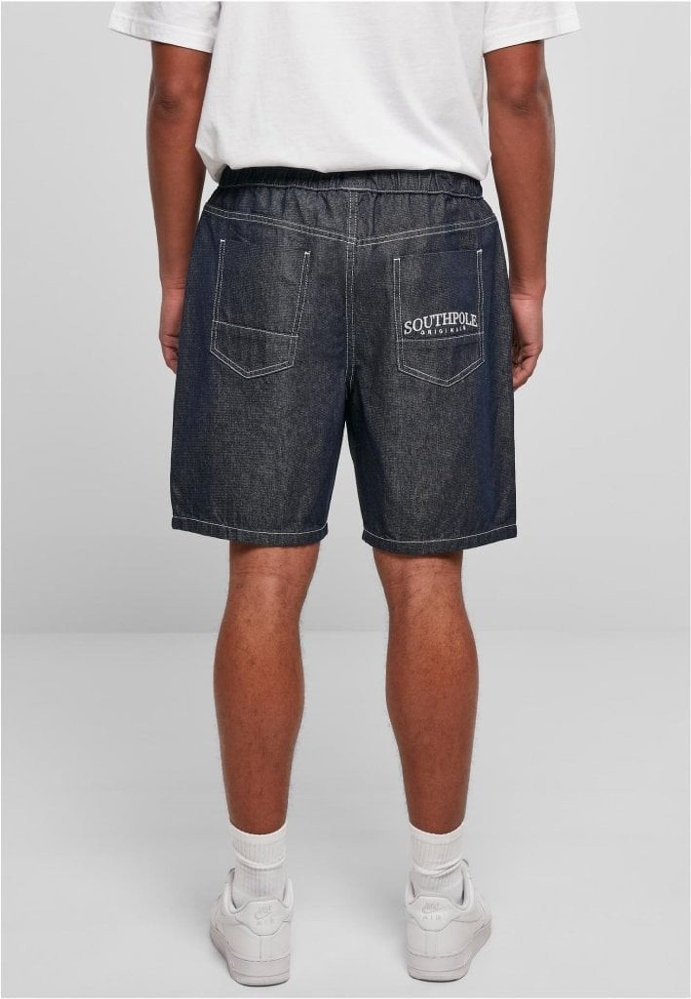 Mørkeblå denimshorts fra Southpole med snøre og manchetter i taljen.