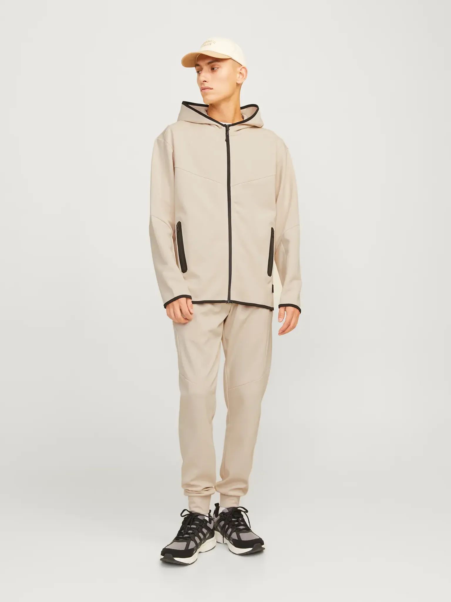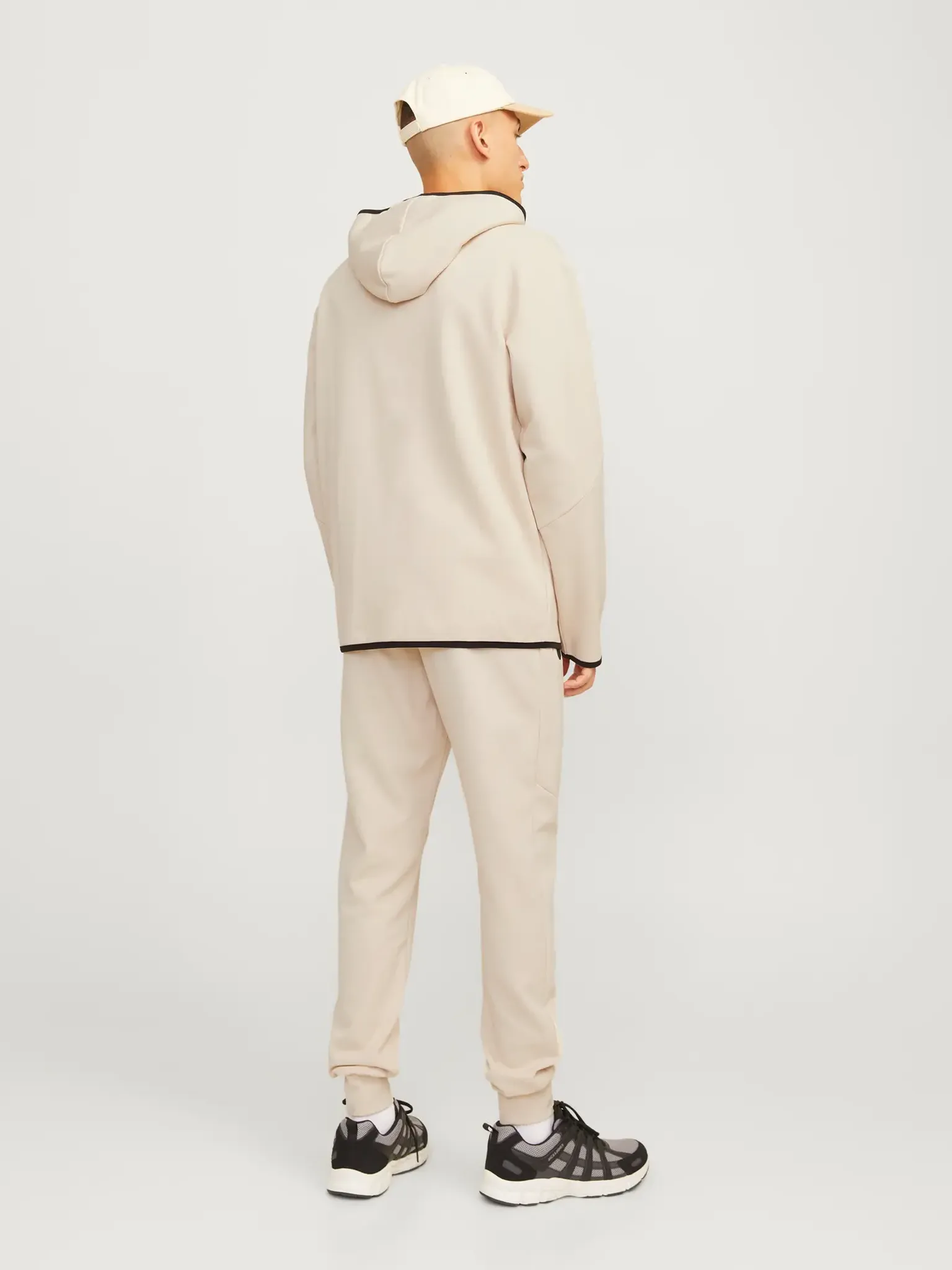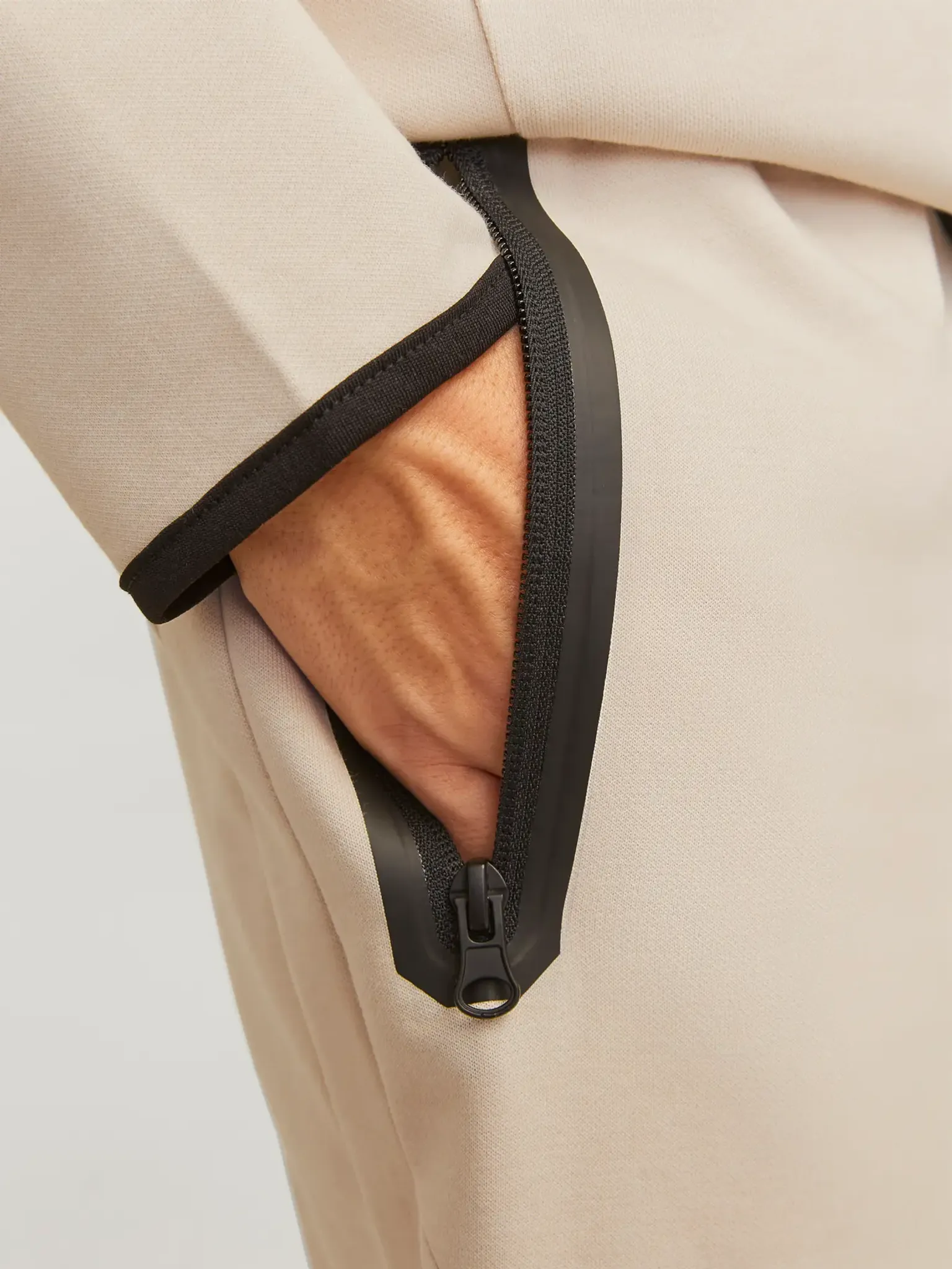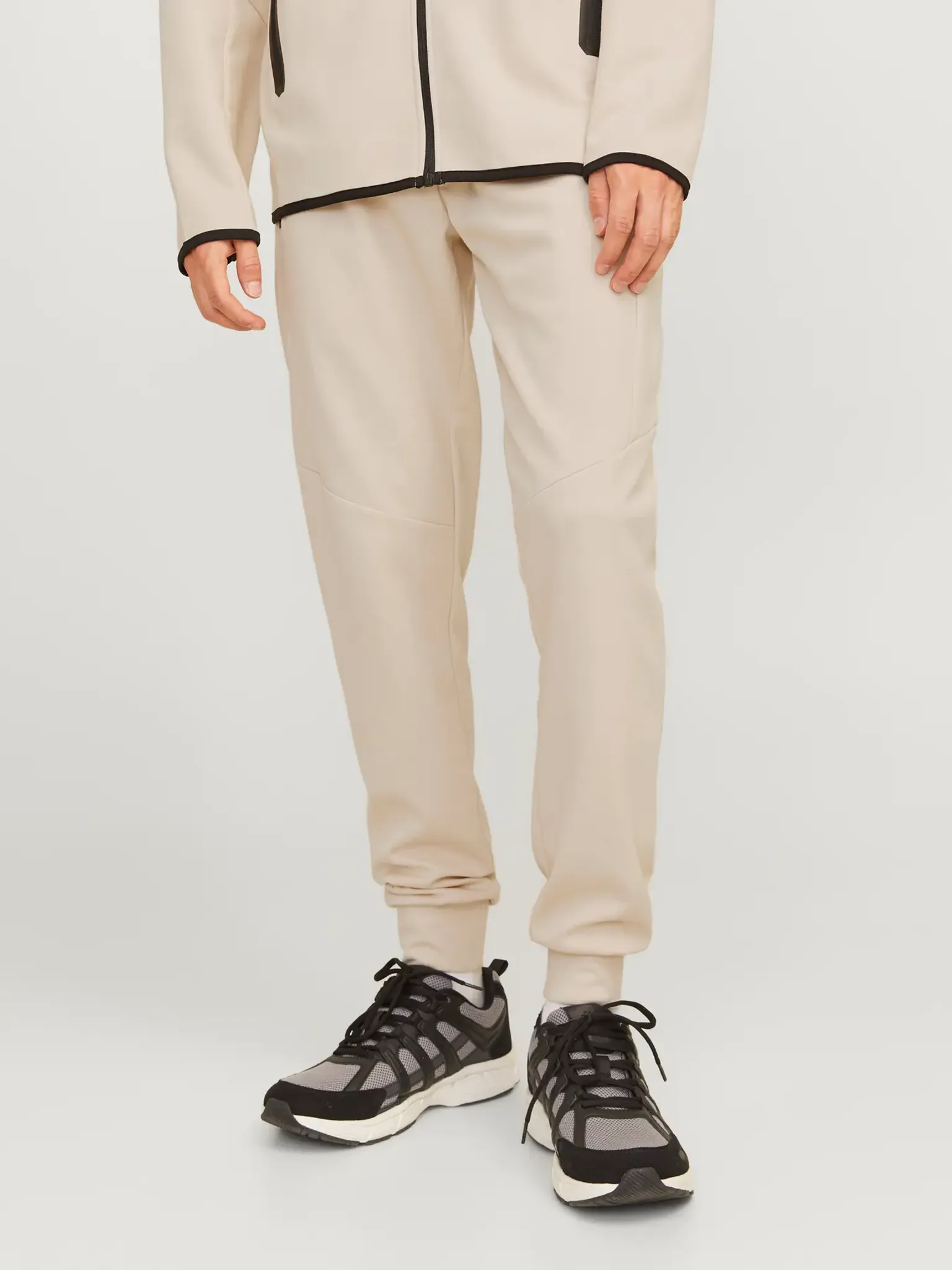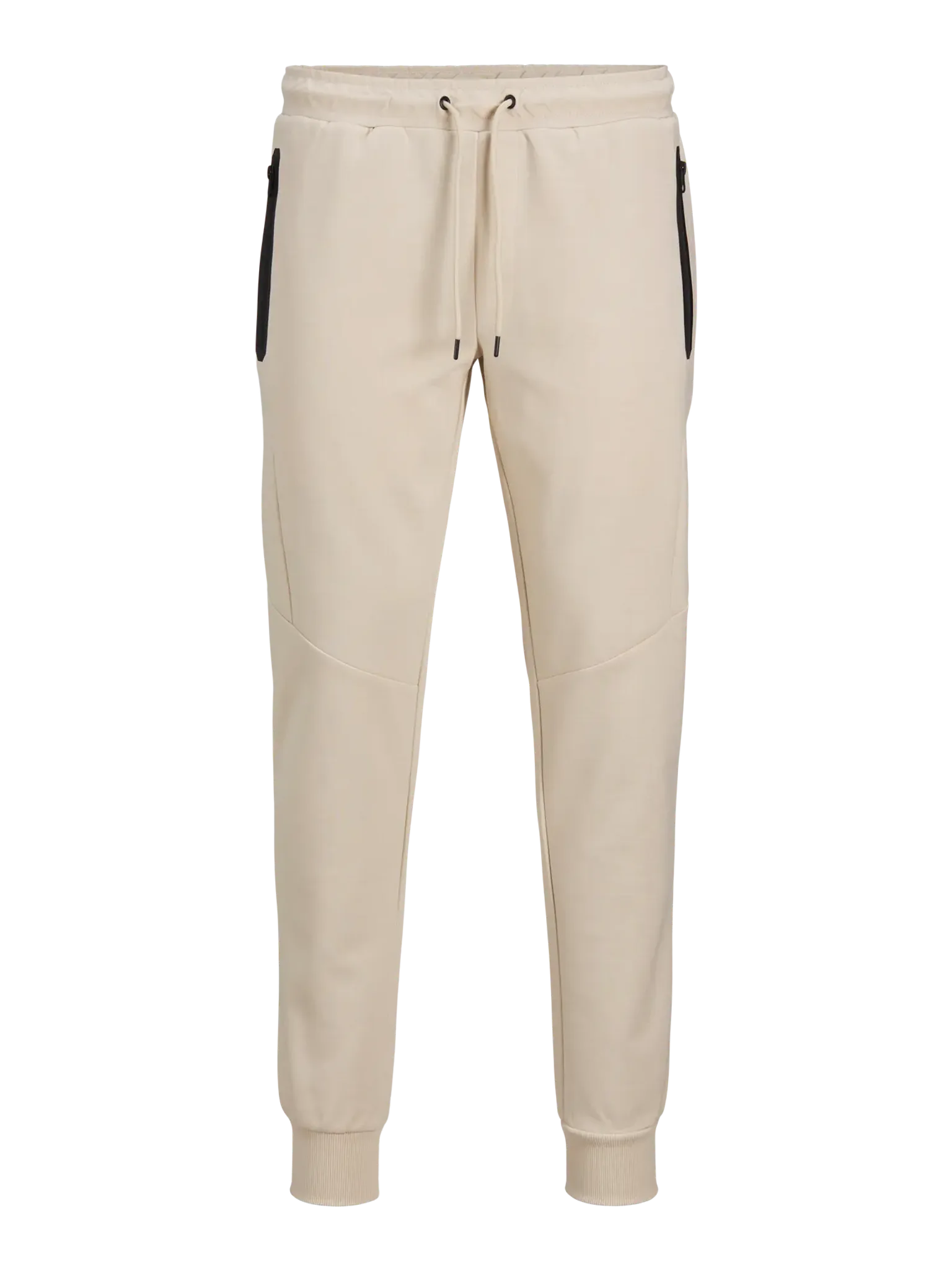 Dessa slim fit-byxor är designade för att ge en perfekt balans mellan komfort och stil. Den elastiska midjan med dragsko gör dem enkla att justera, medan interlocktyget med sin dubbla konstruktion ger en fastare, tjockare och mjuk känsla. Med sin oborstade insida, ribbade benslut och moderna passform är de både praktiska och snygga – idealiska för både vardagsbruk och en mer aktiv livsstil.