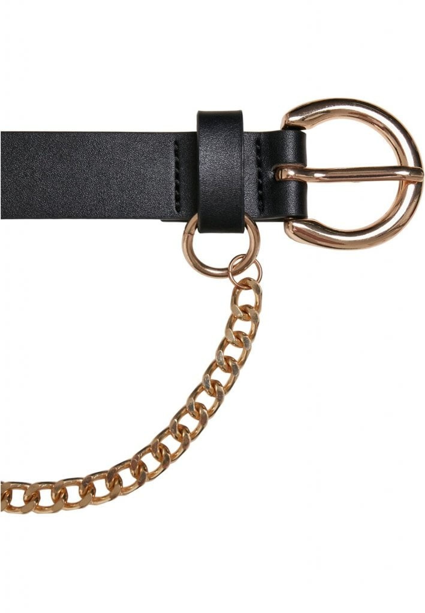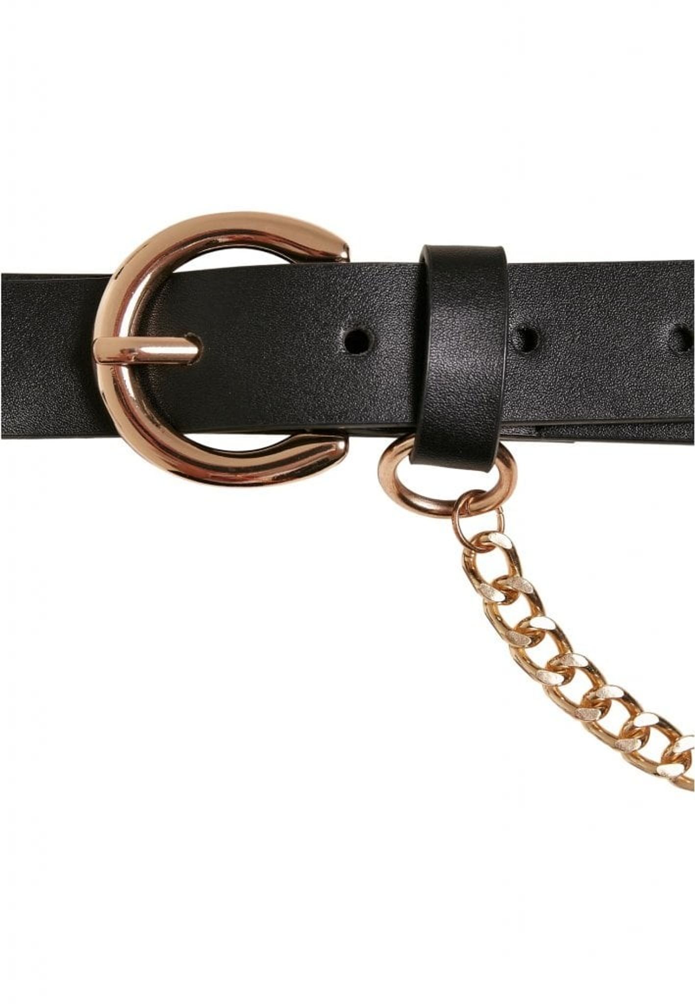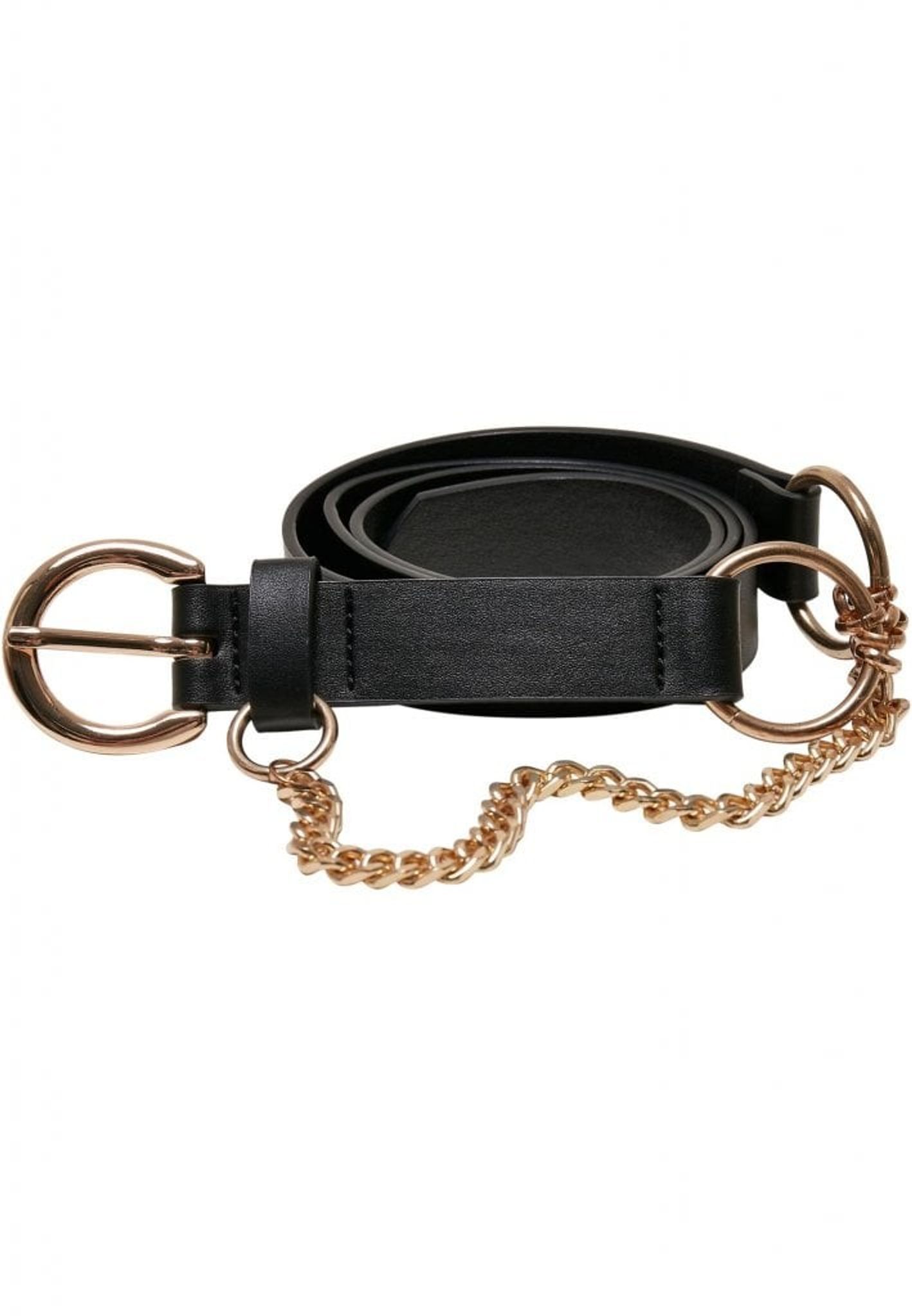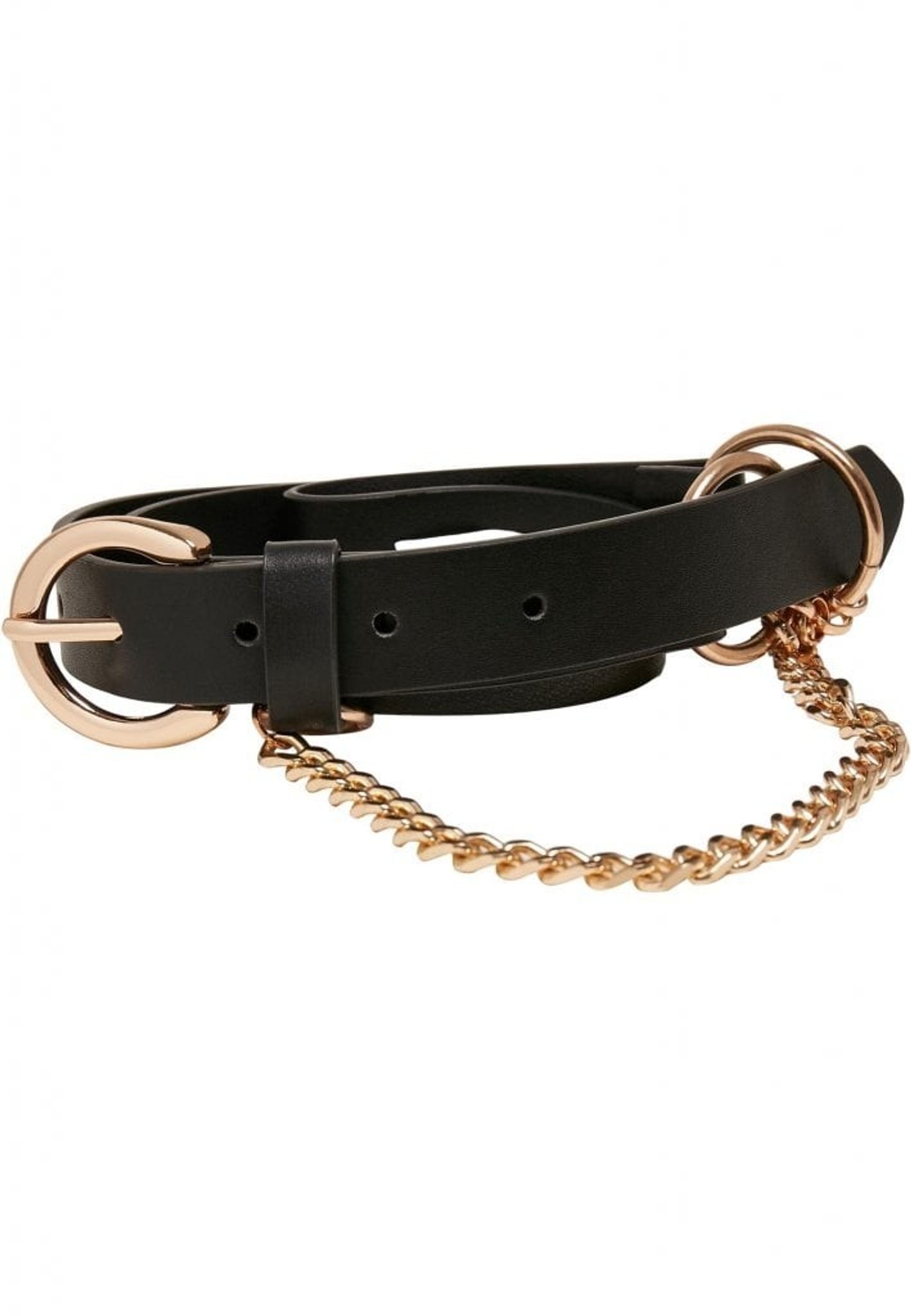 Kæde & ringe i imiteret læderbælte - 105/125 cm.