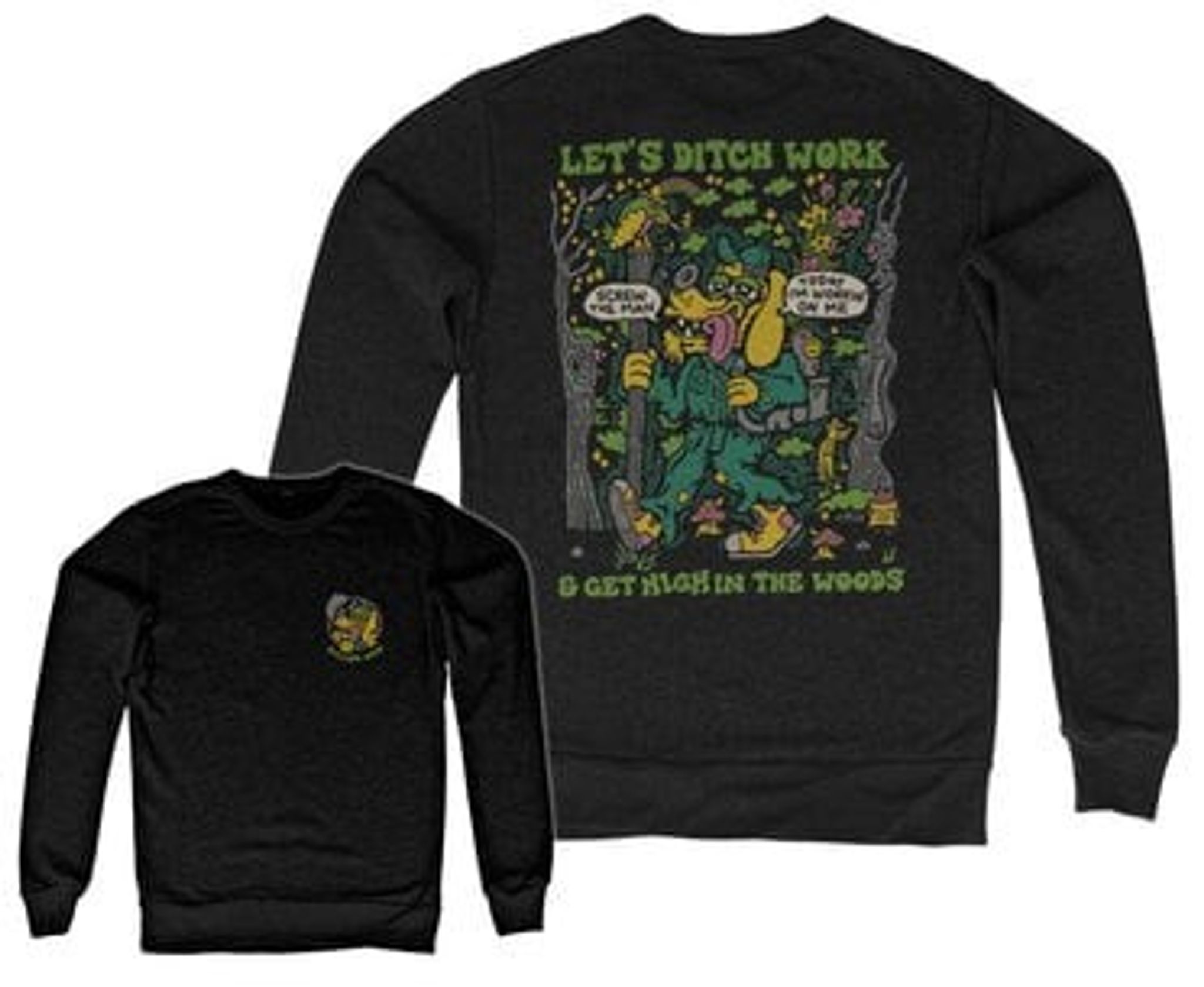 Men det er ikke kun fronten, der imponerer. På bagsiden finder du en tegneseriefigur i grønne overalls, omgivet af en myldrende skov. Med sætninger som "Let's ditch work & get high in the woods" og "Screw the man - Today I'm workin' on me", føles det næsten som om figuren kalder dig til at give slip på stressen og nyde livet.