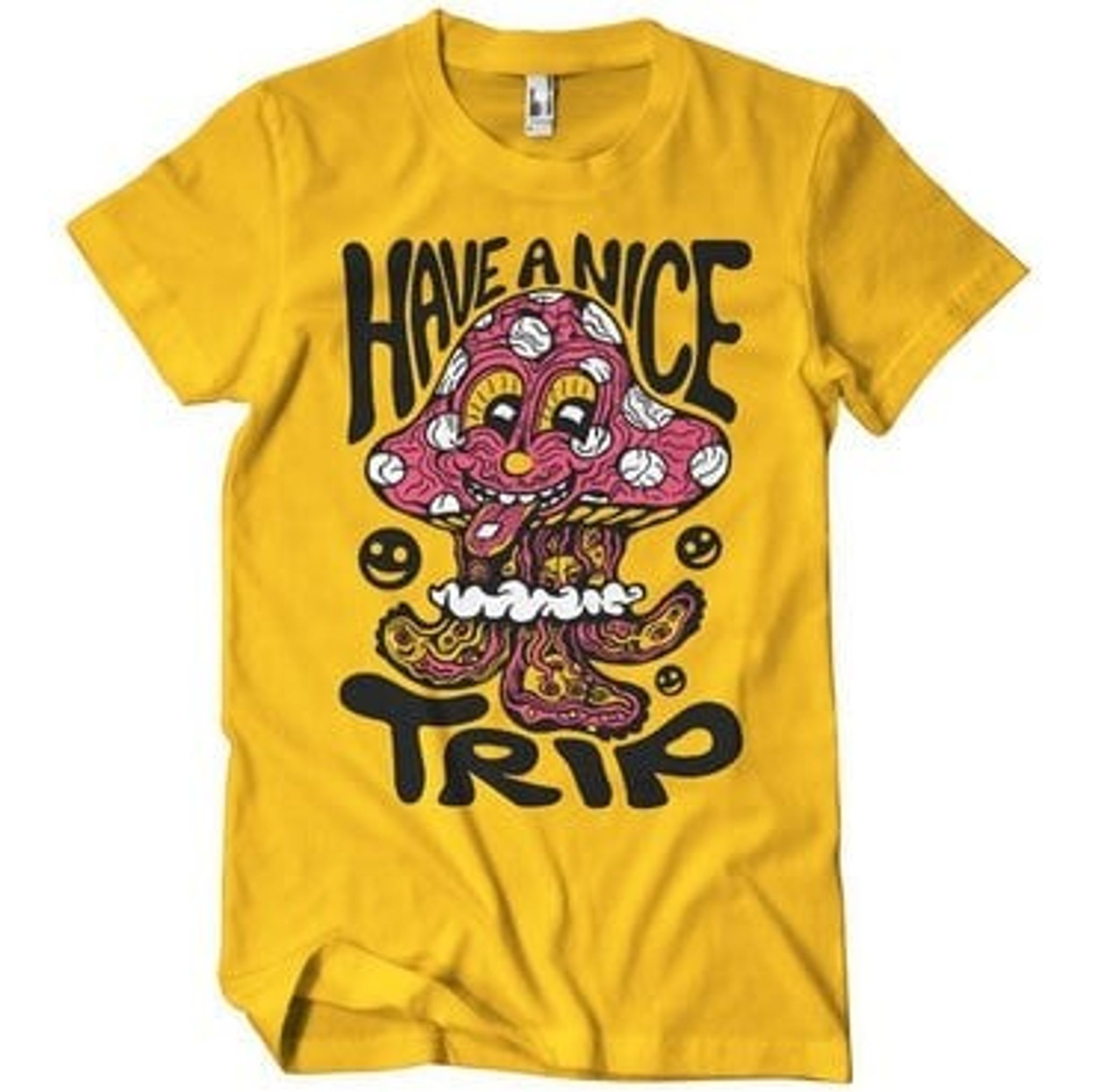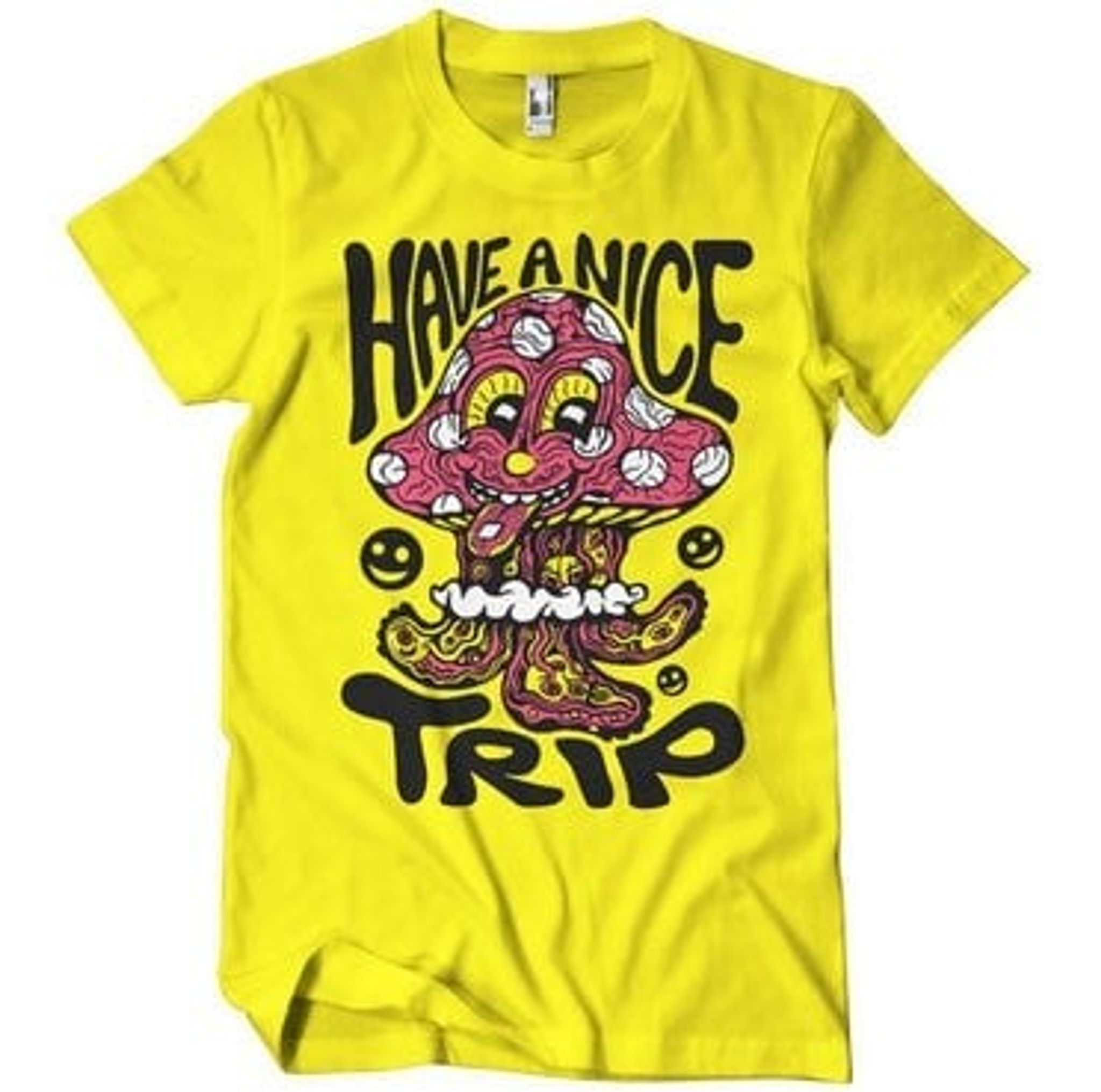 Denne T-shirt er ikke bare et stykke tøj, men en portal til en farverig og trippy verden, inspireret af Killer Acids unikke kunststil . Med et svampeansigt, der ser ud som om det har haft en rigtig sjov fest, er motivet en visuel fest af psykedeliske elementer. Forestil dig en svamp, der har fundet sit livs lykkepille og nu smiler stort og drypper af farver og glæde. Teksten "Hav en god tur" er som en venlig besked fra en gammel ven - måske en svamp, der lige er vendt hjem fra en vanvittig tur.