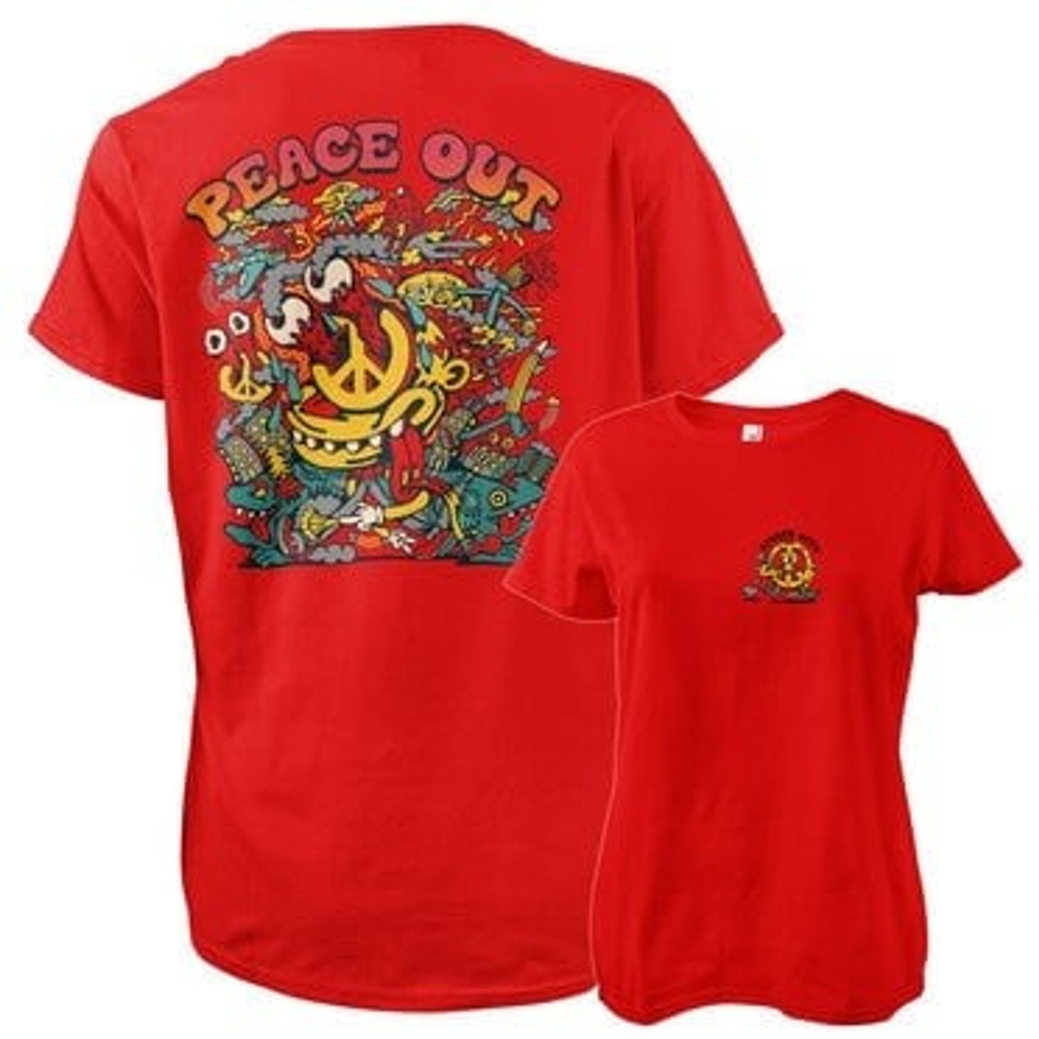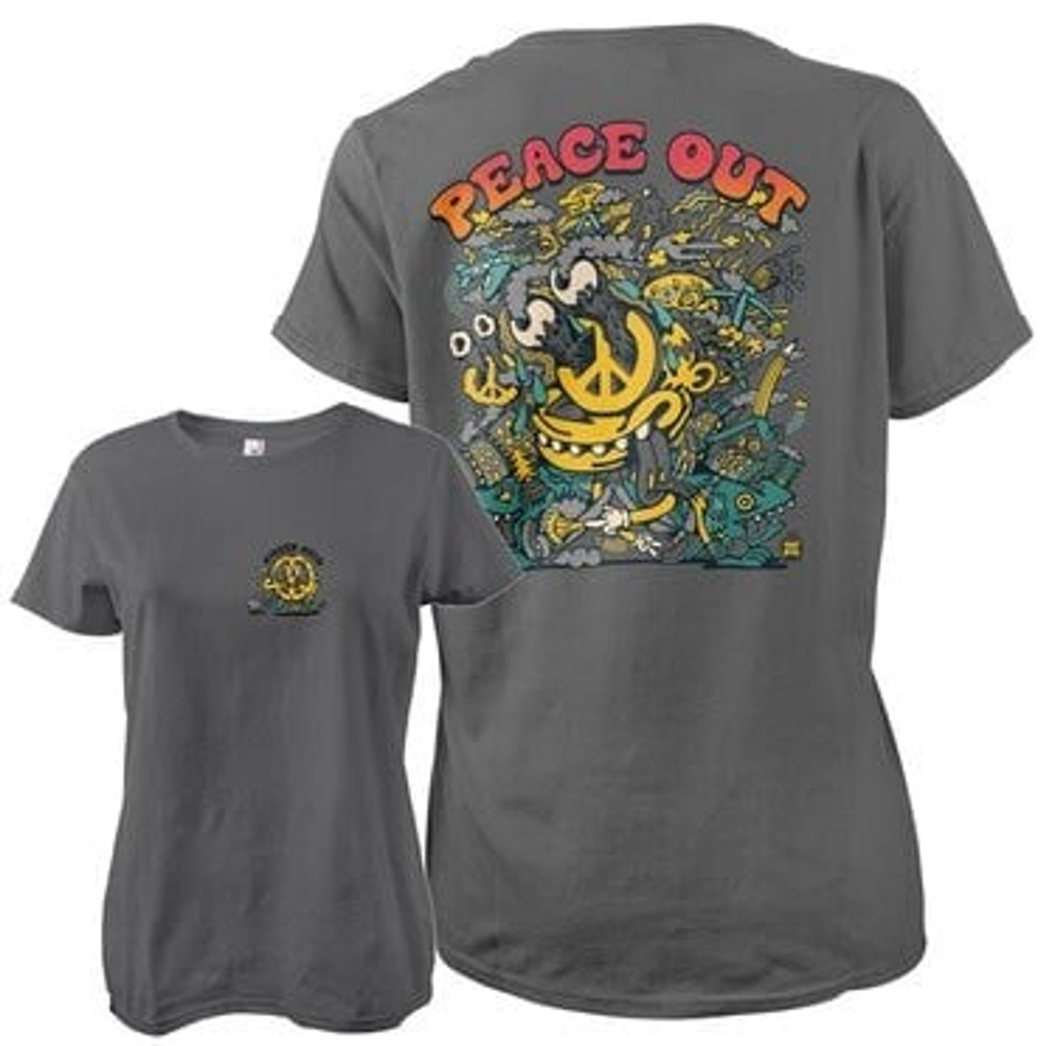 Vores Girly T-shirt er en fryd for øjet med sit farverige og legende motiv inspireret af Killer Acid. Det første billede viser et drilsk gult fredsskilt, der blæser røg, hvilket tilføjer en dejlig sans for psykedelisk humor. Forestil dig, at du står på en festival, omgivet af glæde og latter, mens dette skilt sprudler af liv på en lyserød baggrund. Det er, som om selve t-shirten har taget en tur til en anden dimension, hvor alt er muligt, og hver dag er en ny chance for at sprede kærlighed.