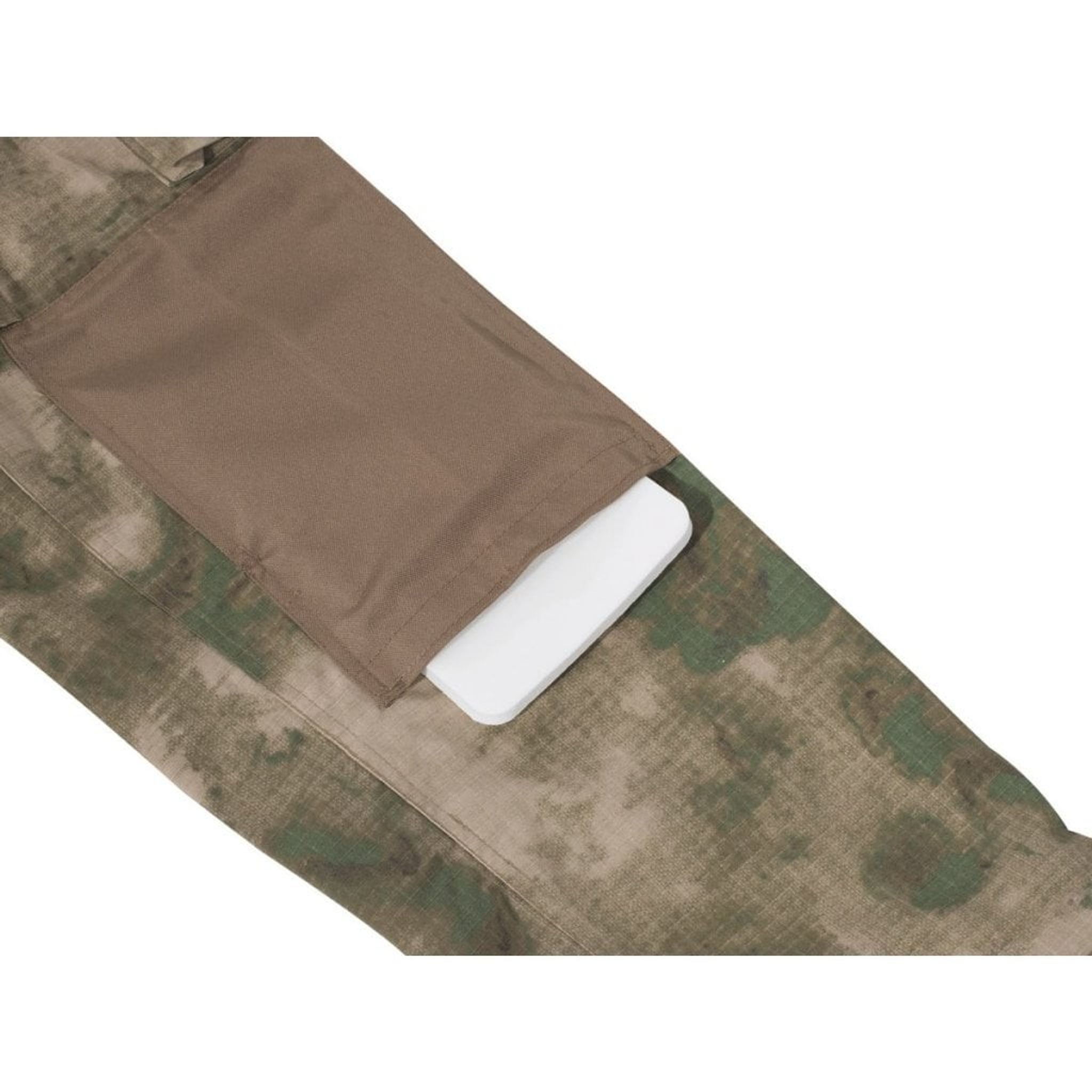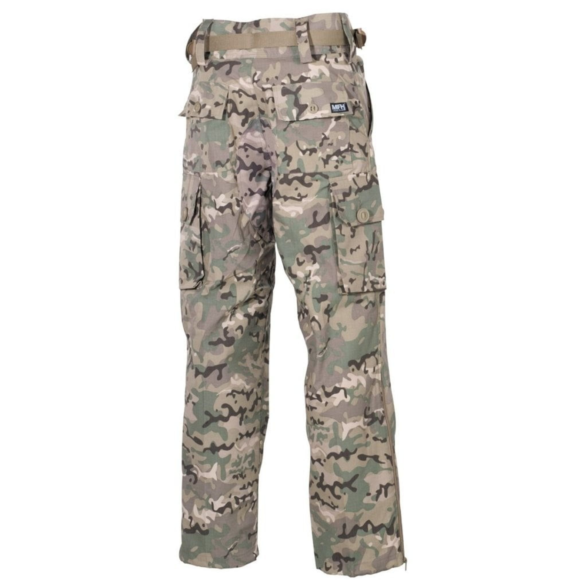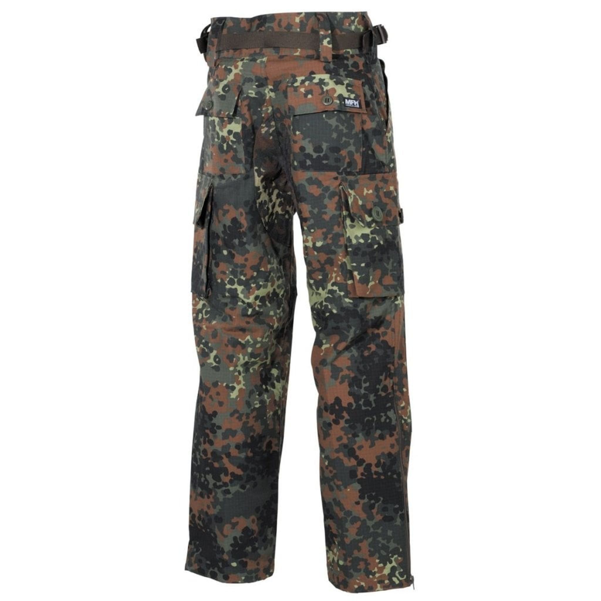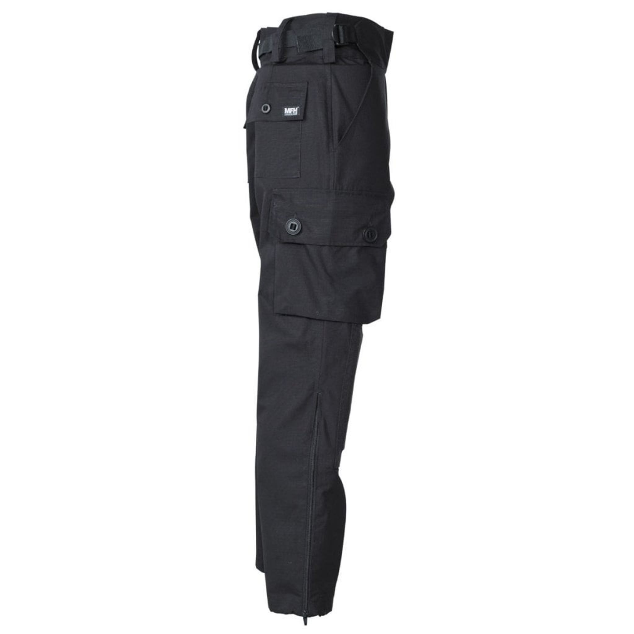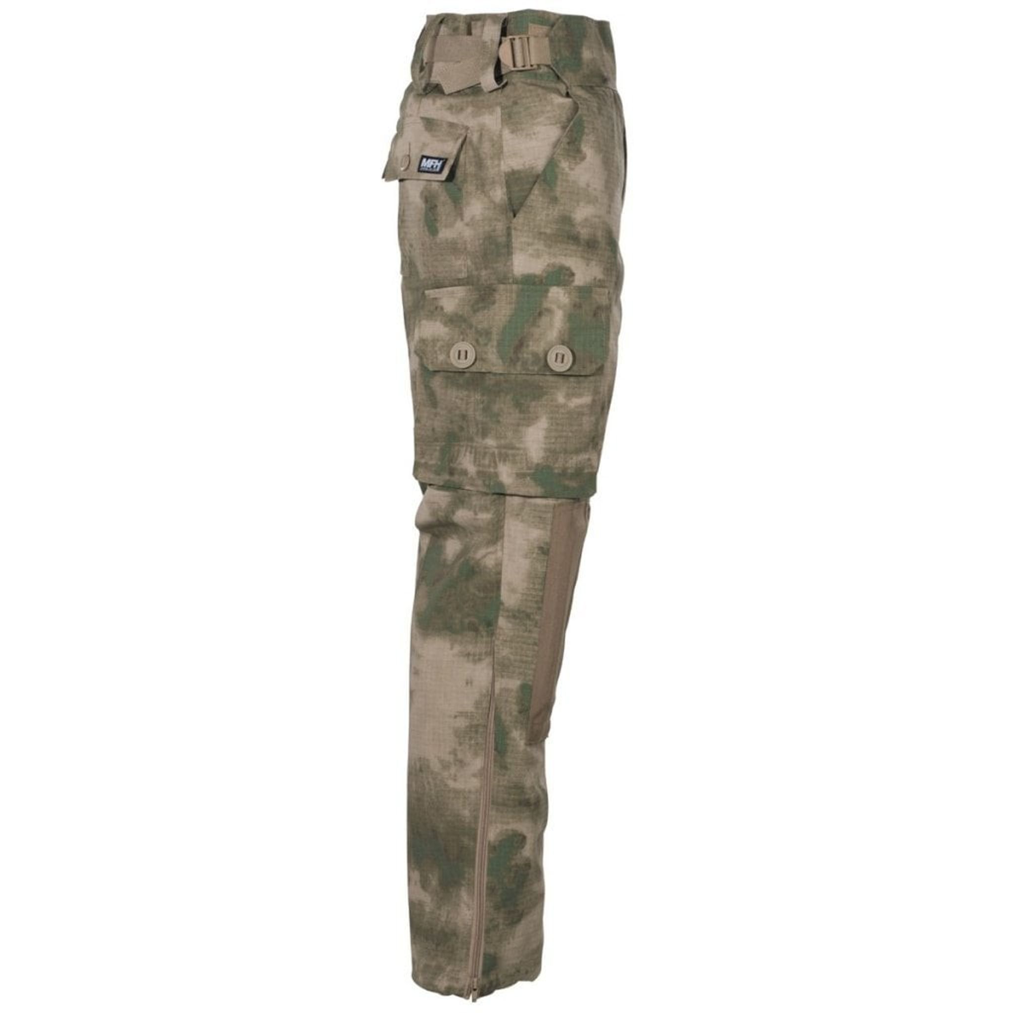 Benene er ekstra lange med lynlås på siden med integrerede folder. Benet ender med et løbebånd til breddejustering.